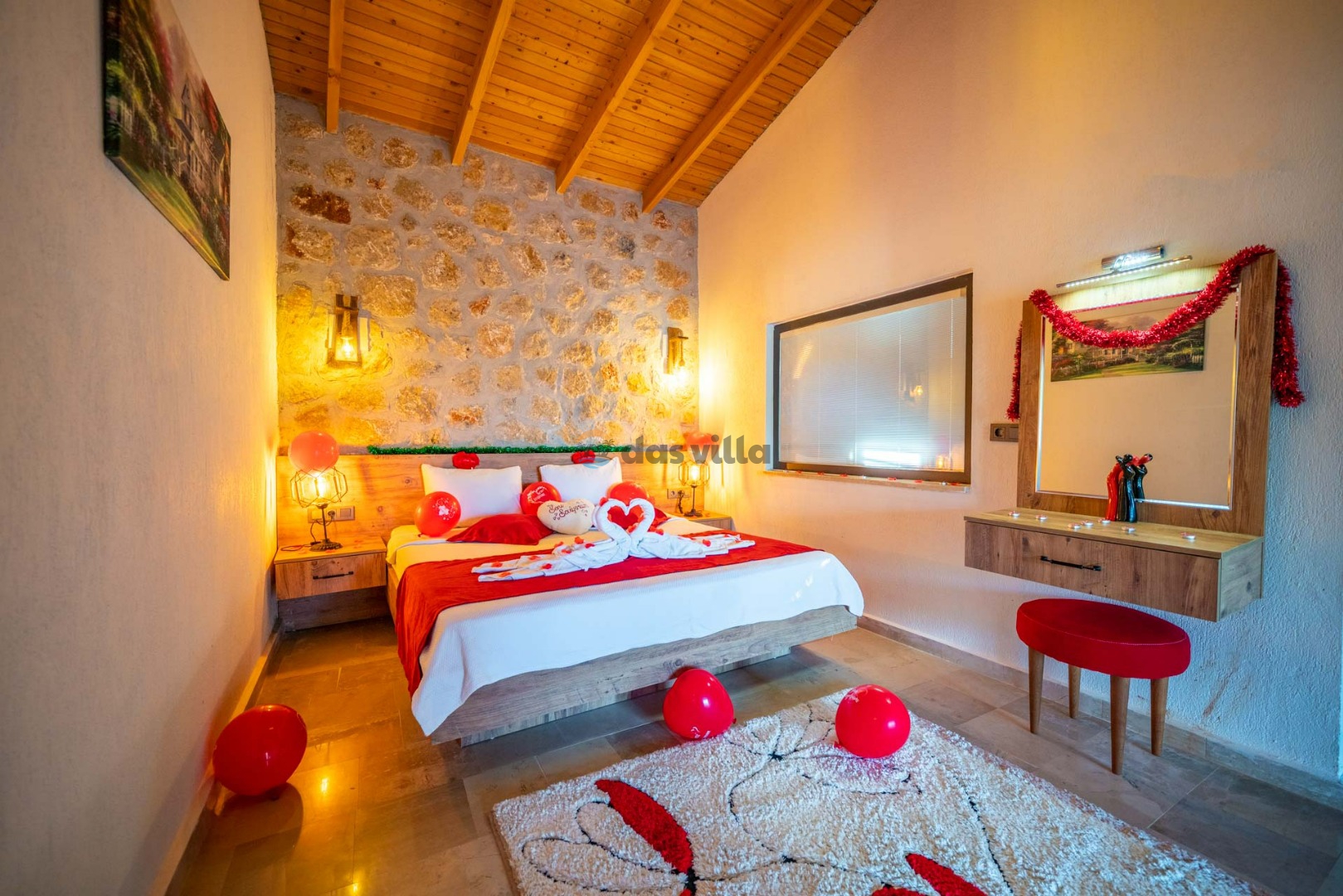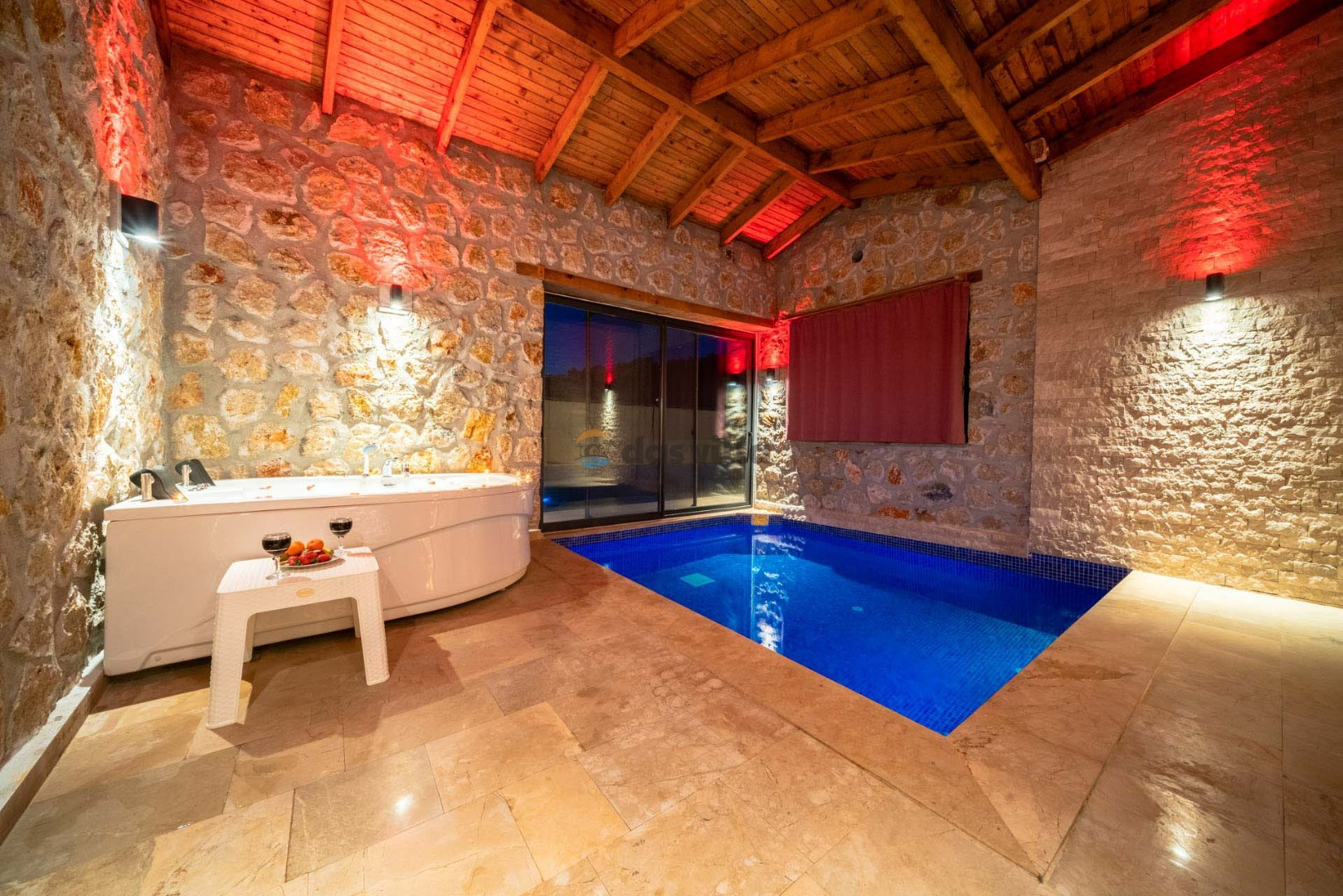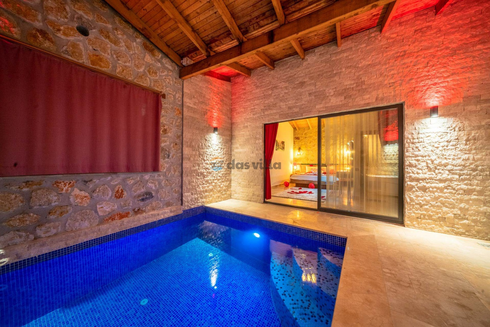 Die Villa Anemon 3 befindet sich im Stadtteil İslamlar in Kalkan. Es handelt sich um eine private Villa mit 2 Schlafzimmern und einer Kapazität für 4 Personen. Obwohl unsere Villa einen herrlichen Blick auf die Natur bietet, werden Sie dank der sorgfältigen, luxuriösen Einrichtung und des modernen Designs angenehme Tage verbringen und Sie, unsere geschätzten Kunden, möchten, dass Ihr Urlaub nie zu Ende geht. Dank der modernen Küche, der kompletten Ausstattung und der komfortablen Einrichtung unserer Villa werden Sie sich wie zu Hause fühlen und die Möglichkeit haben, einen komfortablen Urlaub zu verbringen. Darüber hinaus haben Sie dank des Whirlpools und des beheizten Innenpools in unserer Villa die Möglichkeit, Ihre Seele und Ihren Körper zu entspannen und gleichzeitig einen angenehmen Urlaub zu verbringen. Die geschützte Gestaltung des privaten Swimmingpools unserer Villa kommt der Zufriedenheit unserer Flitterwochenpaare und konservativen Familien besonders zugute.