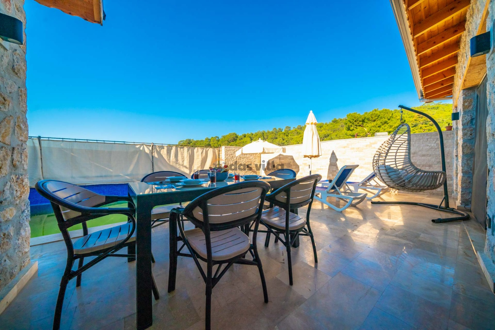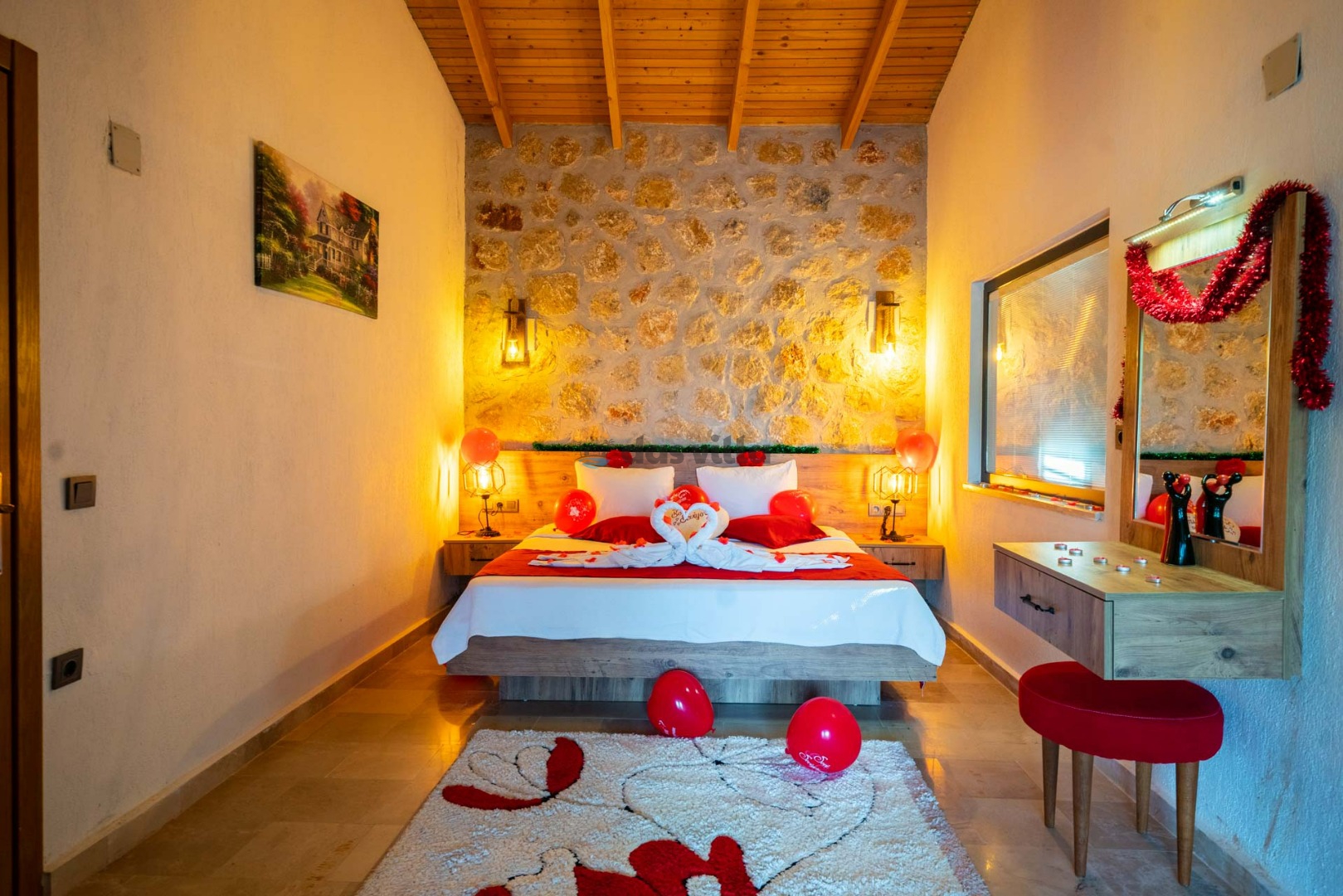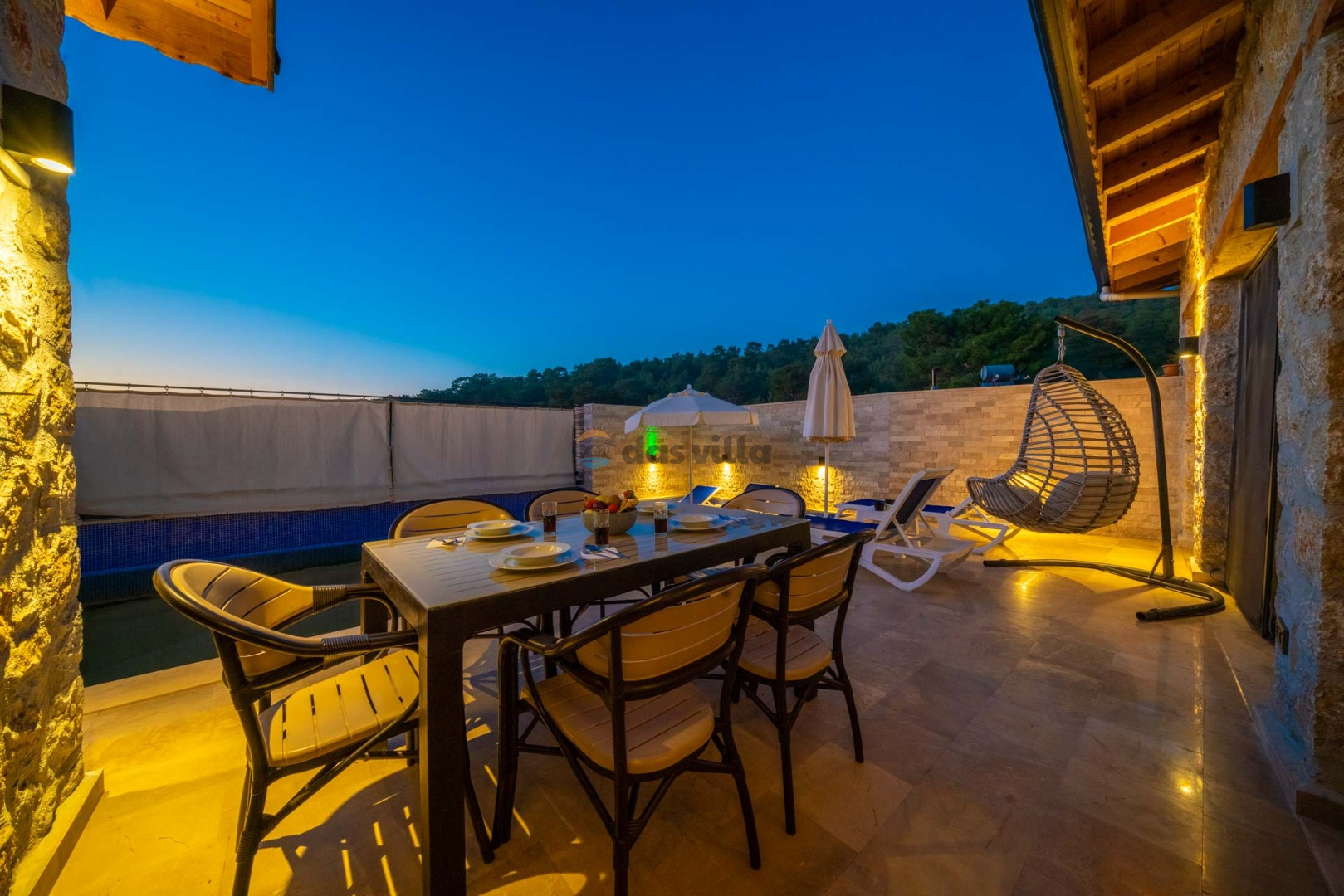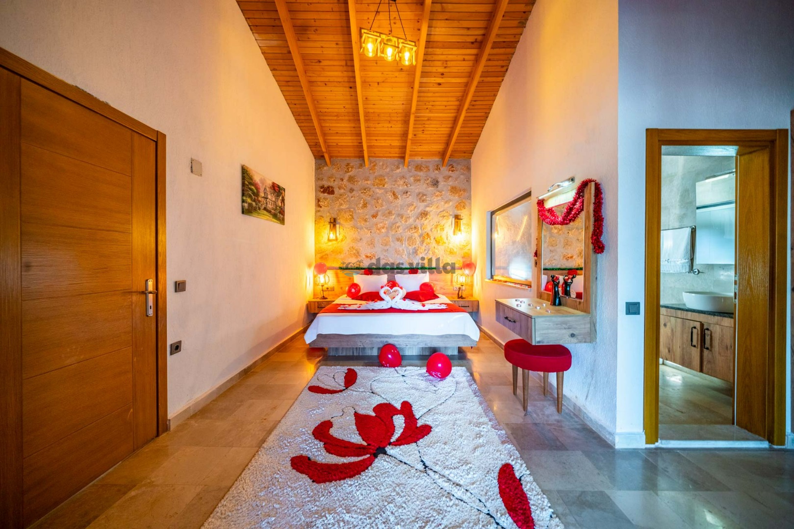 Die Villa Anemon 3 befindet sich im Stadtteil İslamlar in Kalkan. Es handelt sich um eine private Villa mit 2 Schlafzimmern und einer Kapazität für 4 Personen. Obwohl unsere Villa einen herrlichen Blick auf die Natur bietet, werden Sie dank der sorgfältigen, luxuriösen Einrichtung und des modernen Designs angenehme Tage verbringen und Sie, unsere geschätzten Kunden, möchten, dass Ihr Urlaub nie zu Ende geht. Dank der modernen Küche, der kompletten Ausstattung und der komfortablen Einrichtung unserer Villa werden Sie sich wie zu Hause fühlen und die Möglichkeit haben, einen komfortablen Urlaub zu verbringen. Darüber hinaus haben Sie dank des Whirlpools und des beheizten Innenpools in unserer Villa die Möglichkeit, Ihre Seele und Ihren Körper zu entspannen und gleichzeitig einen angenehmen Urlaub zu verbringen. Die geschützte Gestaltung des privaten Swimmingpools unserer Villa kommt der Zufriedenheit unserer Flitterwochenpaare und konservativen Familien besonders zugute.