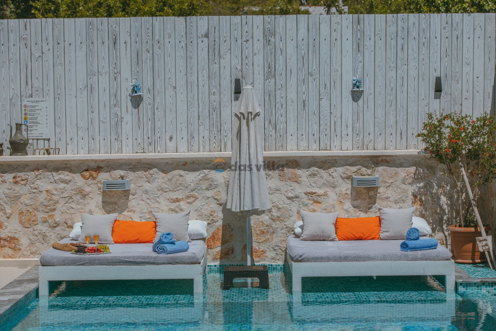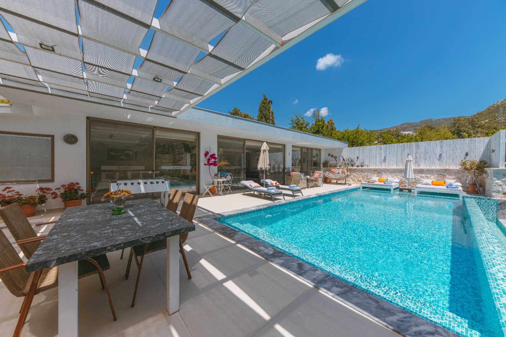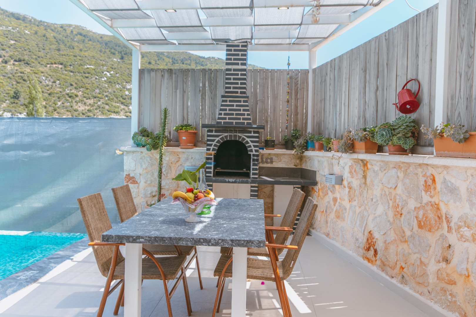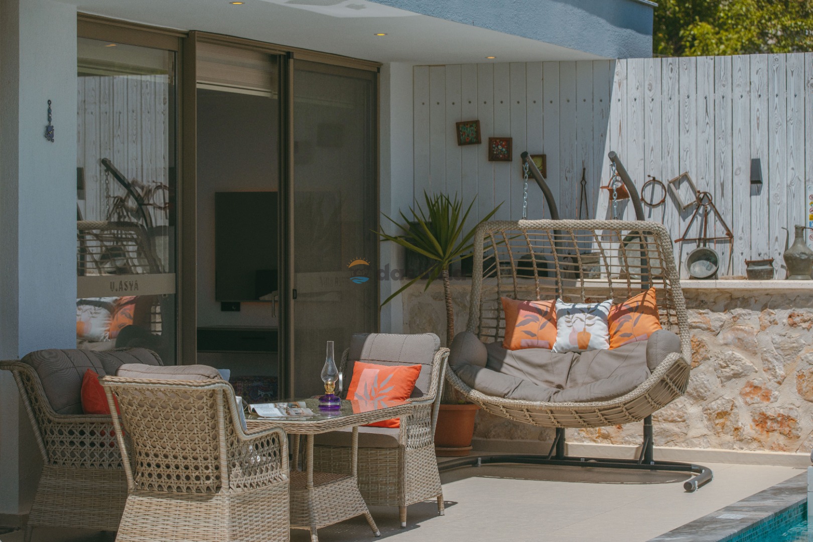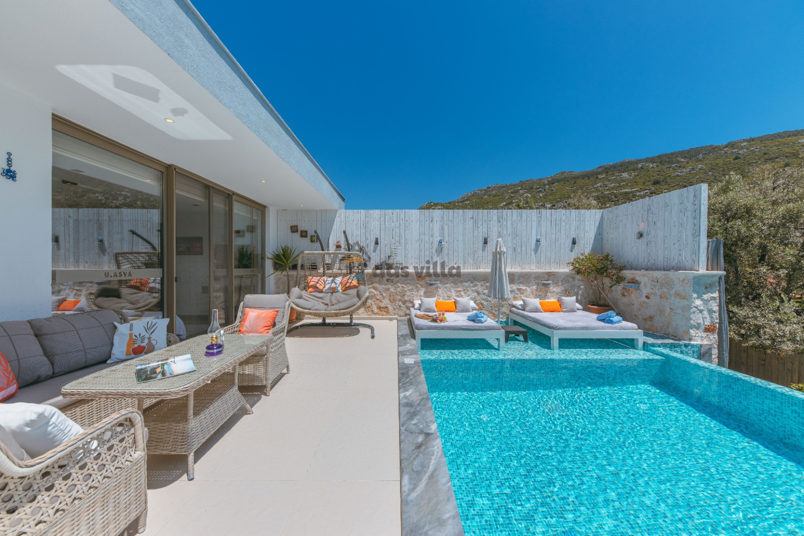 Die Villa Asya Islamlar befindet sich im Dorf Kalkan Islamlar. Unsere Villa mit 2 Schlafzimmern bietet Platz für 4 Personen und verfügt über einen Doppel-Whirlpool in der Honeymoon-Suite. Es ist eine ideale Villa sowohl für Familien mit Kindern als auch für Paare auf Hochzeitsreise. Es ist völlig konservativ gestaltet und der private Swimmingpool sowie die Poolterrasse sind von außen nicht sichtbar. In unserer Villa gibt es Aktivitäten wie Tischtennis, Darts, Trampolin, Tischfußball und Hängematten, wo Sie eine schöne Zeit mit Ihren Kindern verbringen können.