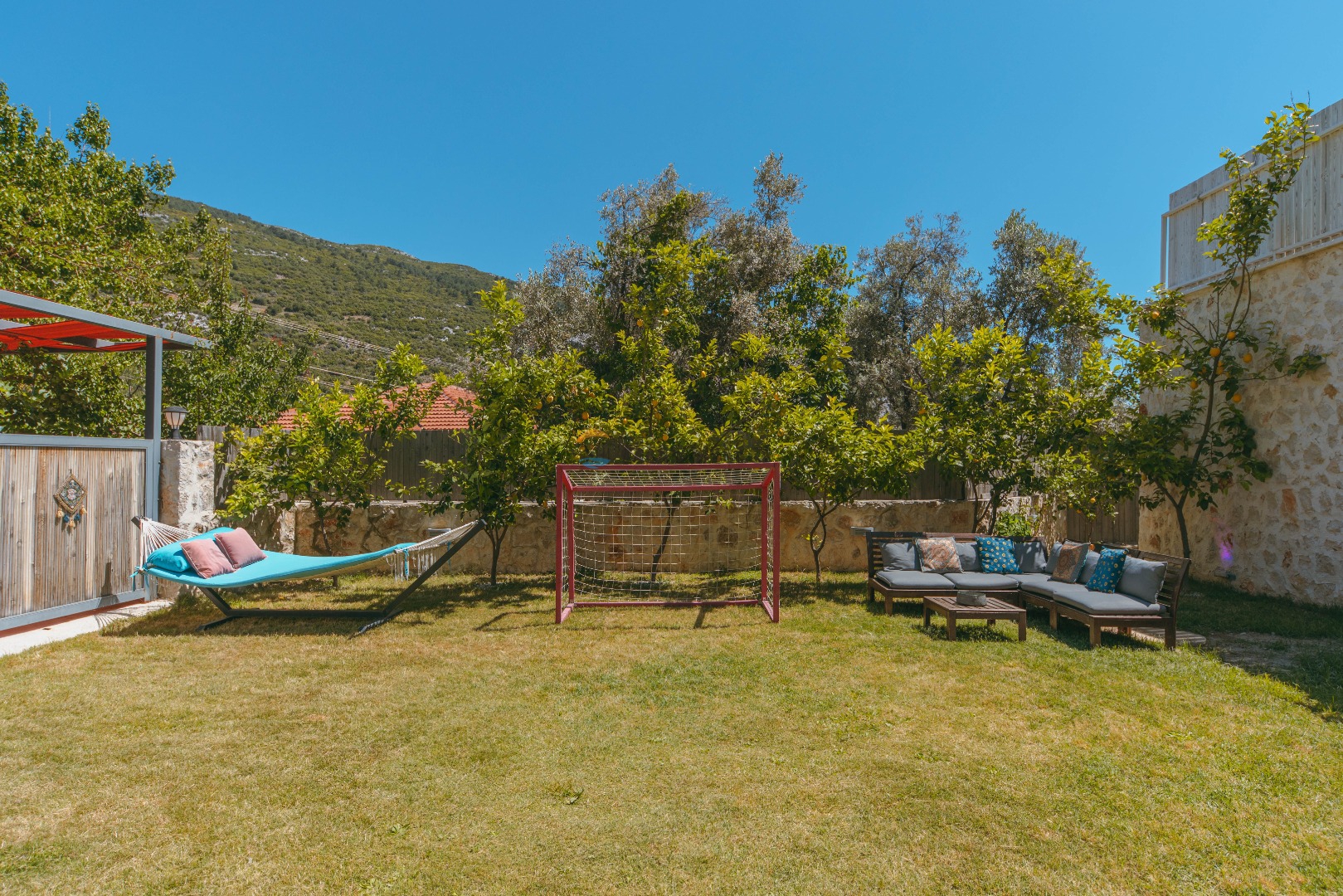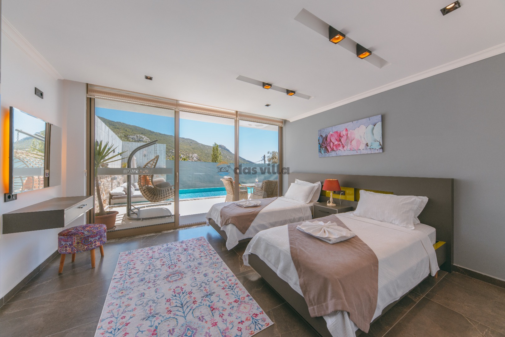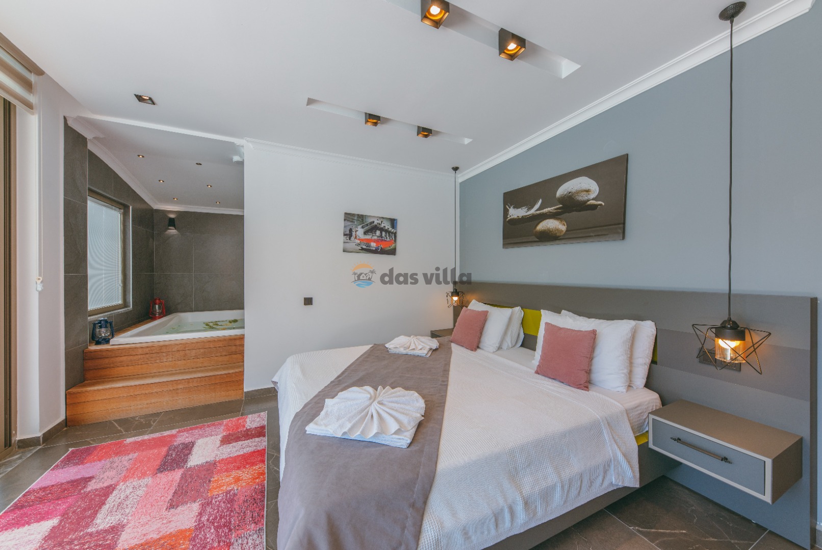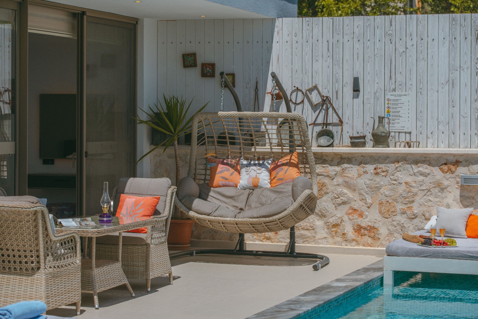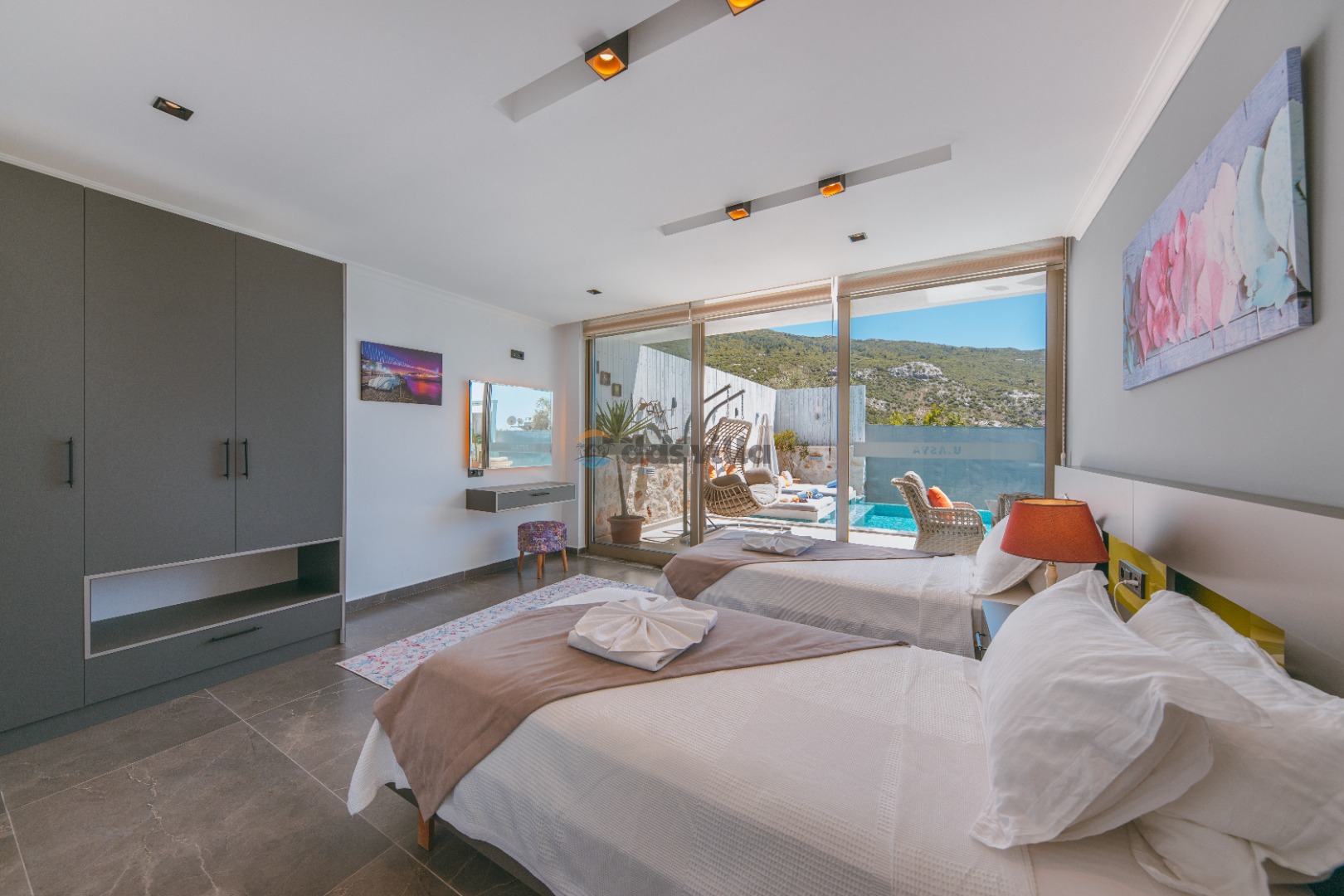 Die Villa Asya Islamlar befindet sich im Dorf Kalkan Islamlar. Unsere Villa mit 2 Schlafzimmern bietet Platz für 4 Personen und verfügt über einen Doppel-Whirlpool in der Honeymoon-Suite. Es ist eine ideale Villa sowohl für Familien mit Kindern als auch für Paare auf Hochzeitsreise. Es ist völlig konservativ gestaltet und der private Swimmingpool sowie die Poolterrasse sind von außen nicht sichtbar. In unserer Villa gibt es Aktivitäten wie Tischtennis, Darts, Trampolin, Tischfußball und Hängematten, wo Sie eine schöne Zeit mit Ihren Kindern verbringen können.