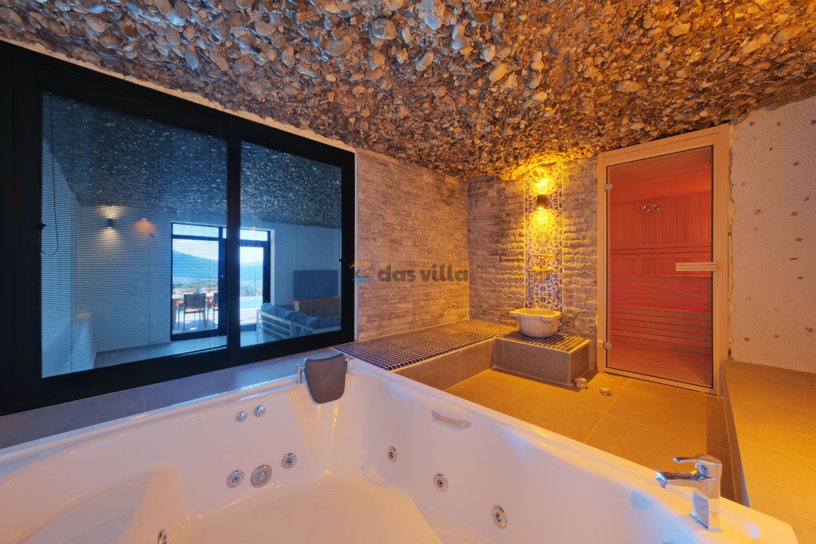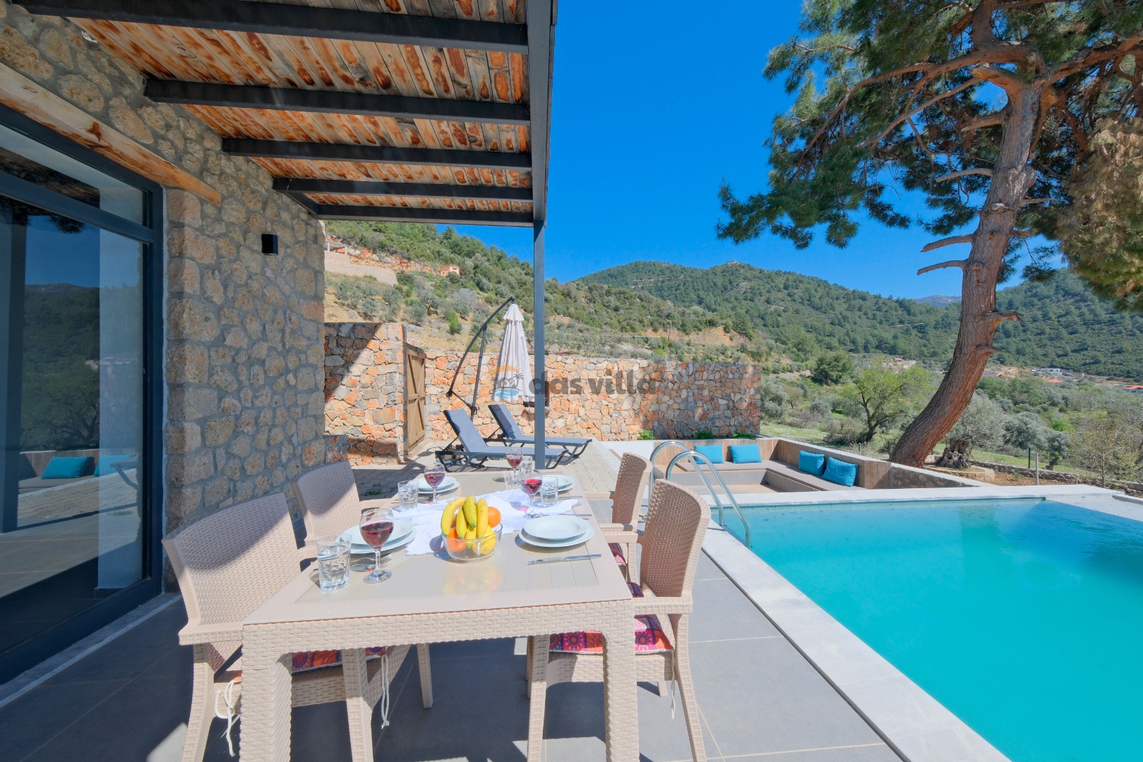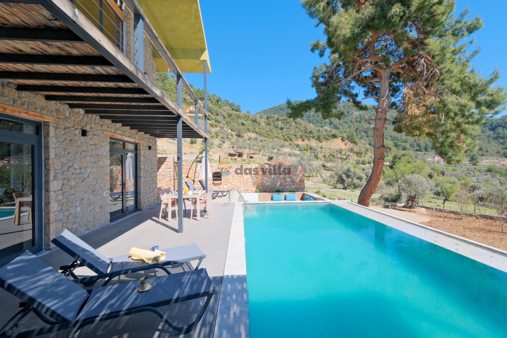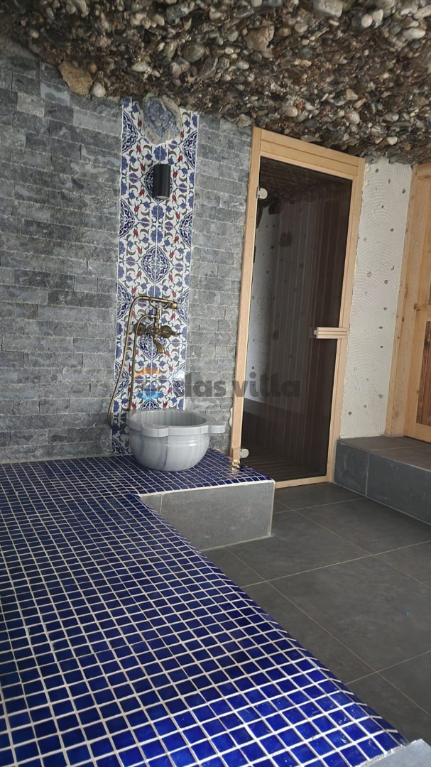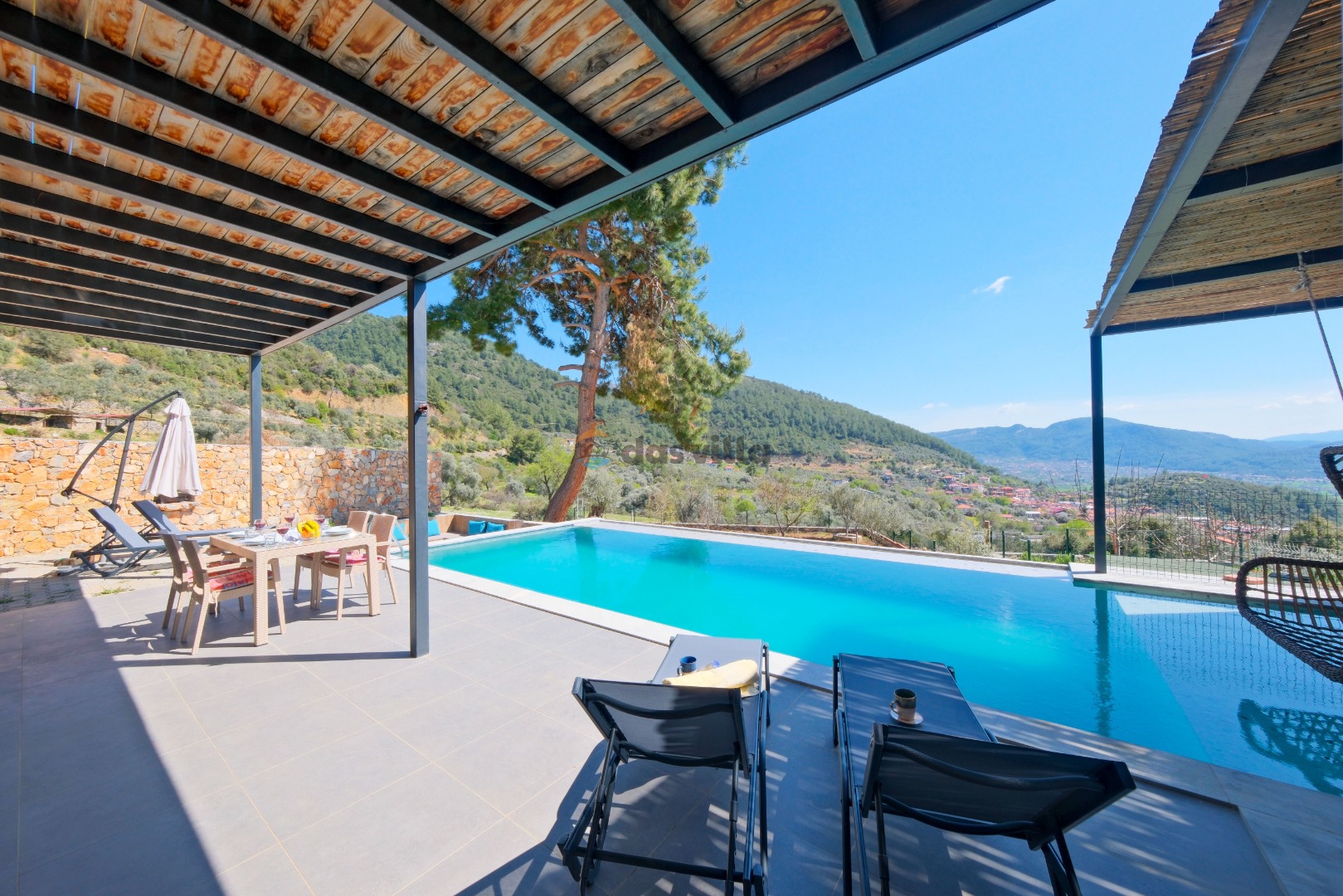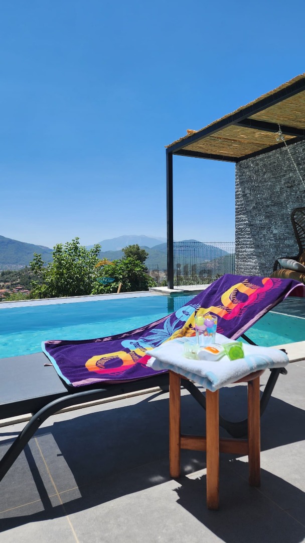 Villa Ayza ist eine Ferienvilla zur Miete im Viertel Yeşil Üzümlü in Fethiye. Unsere Villa mit 3 Schlafzimmern bietet Unterkunft für bis zu 6 Personen. Jedes Schlafzimmer hat ein Doppelbett, ein Schlafzimmer hat einen Whirlpool und ein eigenes Badezimmer mit Toilette. Der Bezirk Yeşil Üzümlü, 15 bis 20 Kilometer vom Zentrum von Fethiye entfernt, zeichnet sich durch seine alten historischen Strukturen und Naturschönheiten aus und ist mit seiner sauberen und sauerstoffreichen, nicht erstickenden Luft ein Ort, der zum Zentrum für Villenferien geworden ist. und eine ruhige und friedliche Umgebung. Unsere Villa liegt mitten in der Natur und der Pool- und Gartenbereich ist von außen nicht einsehbar. Unter unseren Optionen für abgeschiedene Villen, Jacuzzi-Villen, Flitterwochen-Villen und konservative Villen bietet die Villa Ayza eine ideale Ferienvilla-Option für Flitterwochenpaare, Kleinfamilien und Großfamilien.