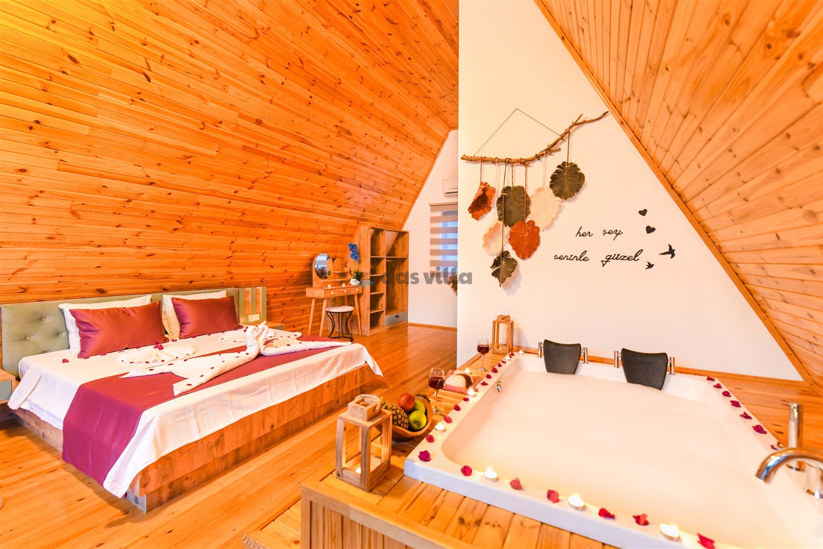 Villa Bungalow Nil ist eine Villa mit einem Schlafzimmer und Platz für 2 Personen im Gebiet Kalkan Islamlar. Unsere Ferienvilla, Villa Bungalow Nil, umgeben von Natur, ist eine sehr geeignete Option für unsere Flitterwochenpaare. Unsere Mietvilla, die auch über einen Whirlpool im Schlafzimmer verfügt, in dem Sie den Stress des Tages abbauen können, öffnet ihre Türen für ihre Gäste, um eine angenehme Urlaubsmöglichkeit zu bieten.