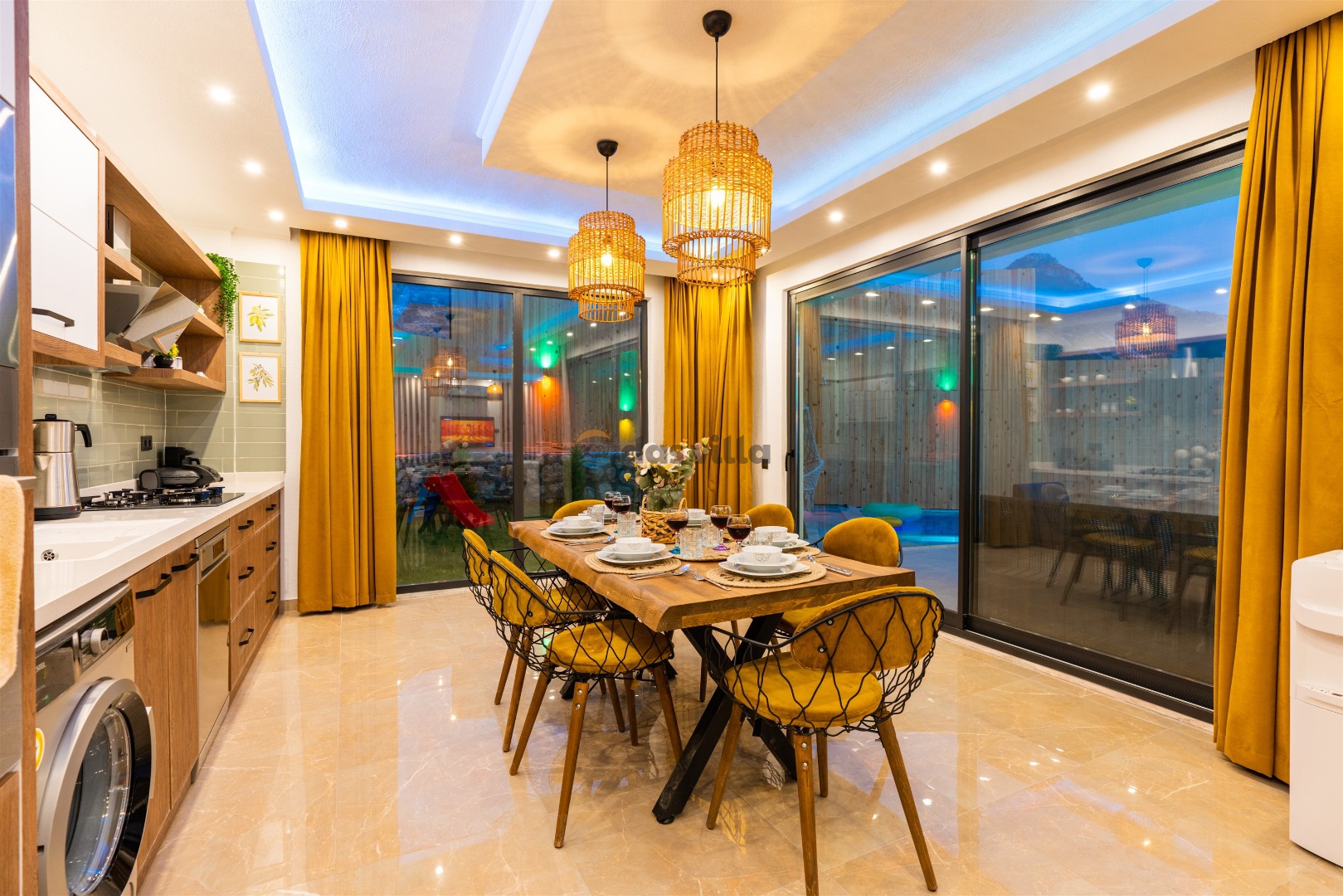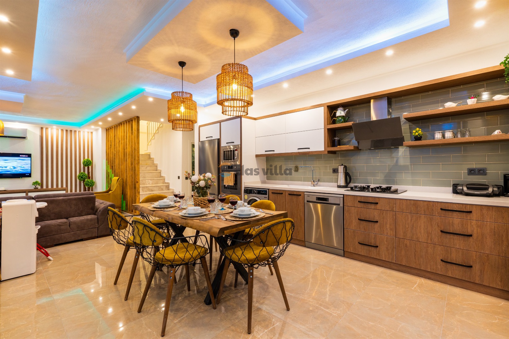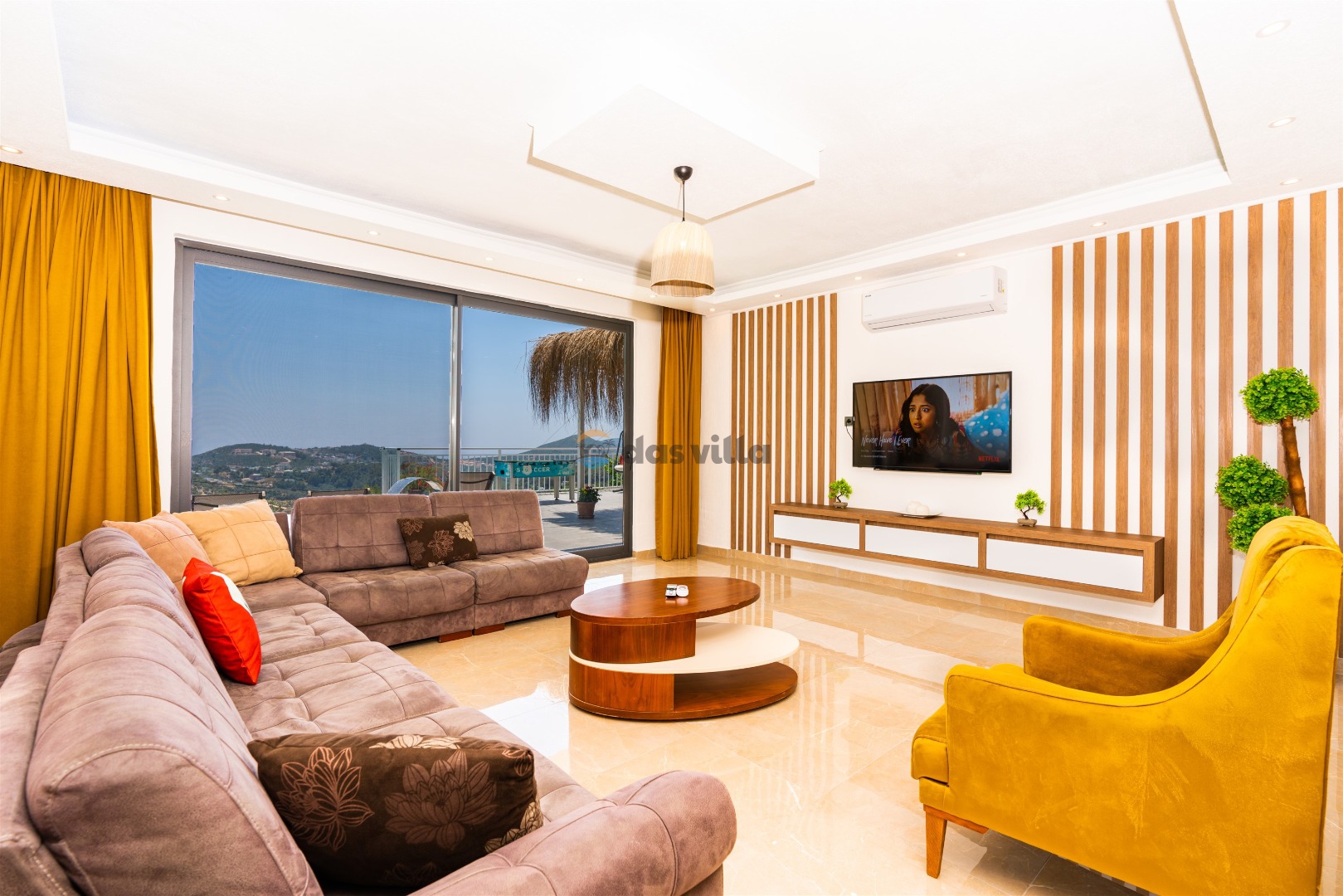 Villa Buyaz ist eine Villa mit 2 Schlafzimmern und einer Kapazität von 5 Personen in der islamischen Region Kalkan. Dank des stilvollen Designs und der großen Fläche unserer Villa können Sie und Ihre Lieben einen komfortablen Urlaub verbringen. Unsere Villa liegt etwa 5-7 Minuten Fahrzeit vom Zentrum von Kalkan entfernt. Sie können unsere Villa für einen angenehmen und ruhigen Urlaub nutzen.