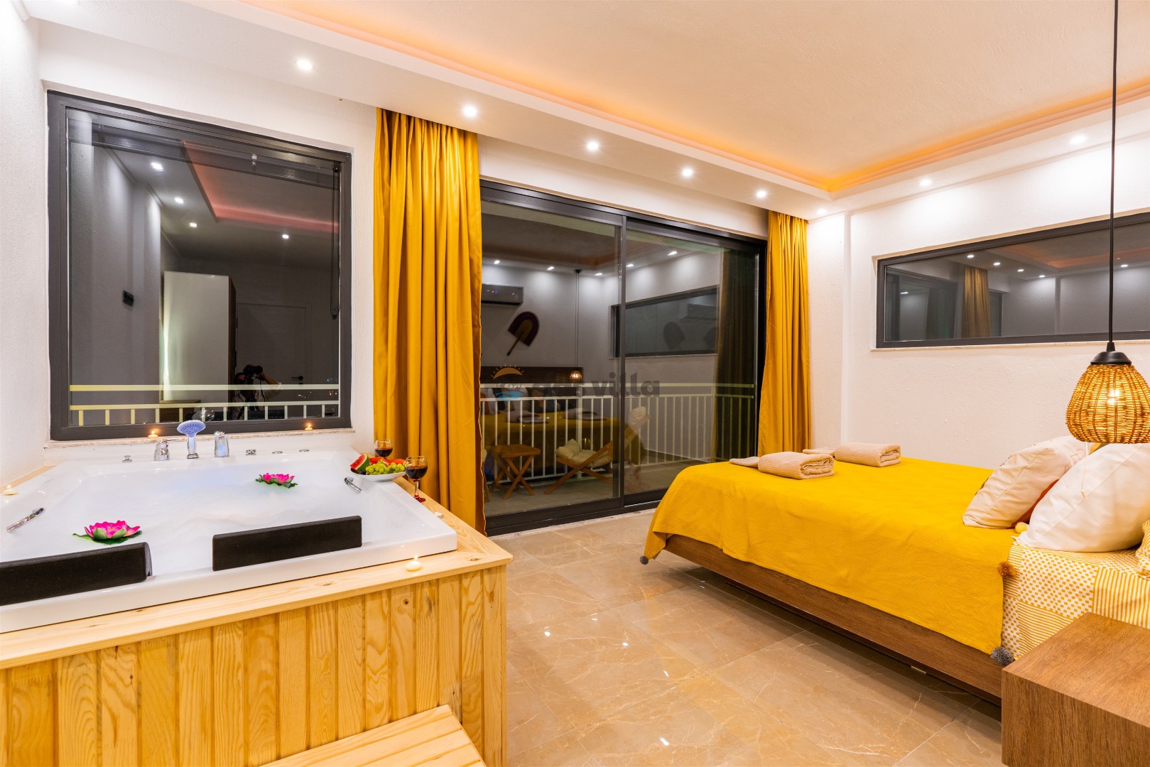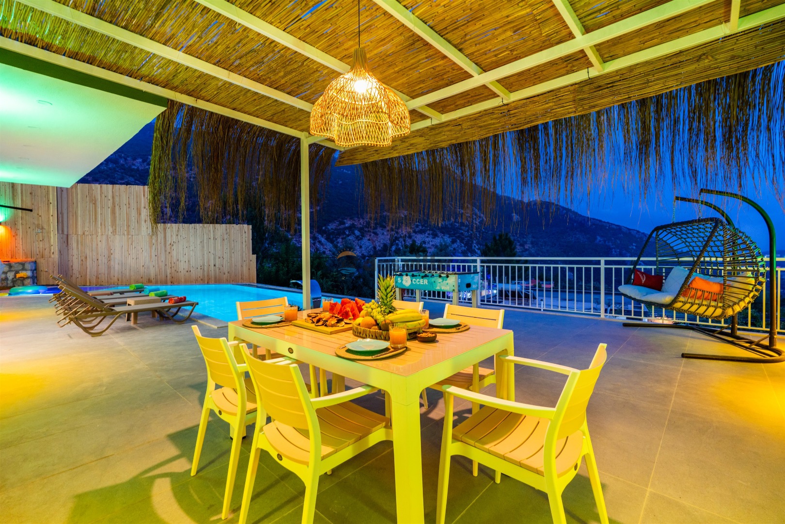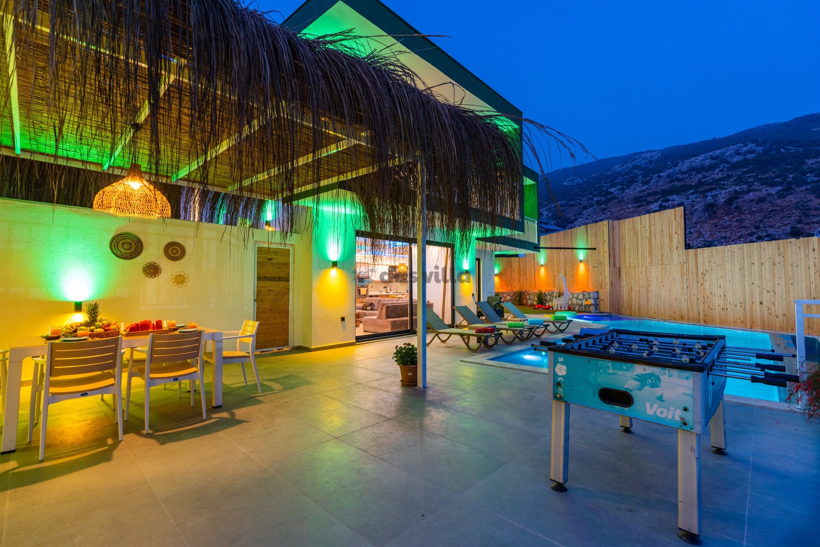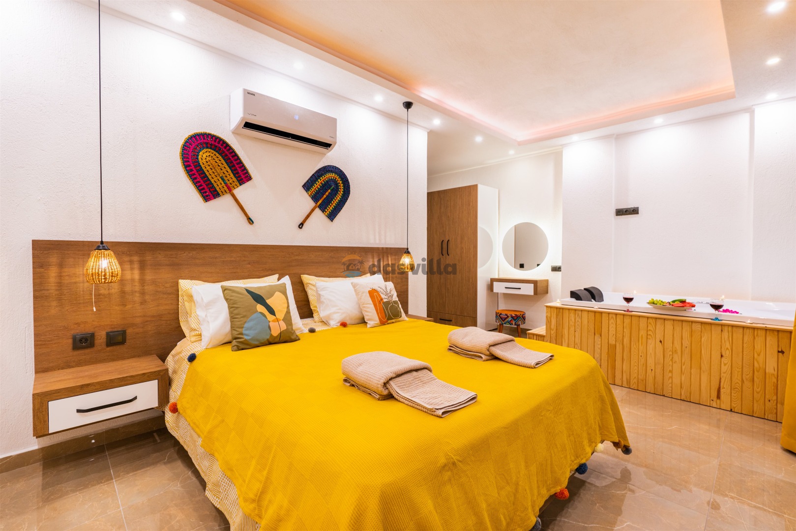Villa Buyaz ist eine Villa mit 2 Schlafzimmern und einer Kapazität von 5 Personen in der islamischen Region Kalkan. Dank des stilvollen Designs und der großen Fläche unserer Villa können Sie und Ihre Lieben einen komfortablen Urlaub verbringen. Unsere Villa liegt etwa 5-7 Minuten Fahrzeit vom Zentrum von Kalkan entfernt. Sie können unsere Villa für einen angenehmen und ruhigen Urlaub nutzen.