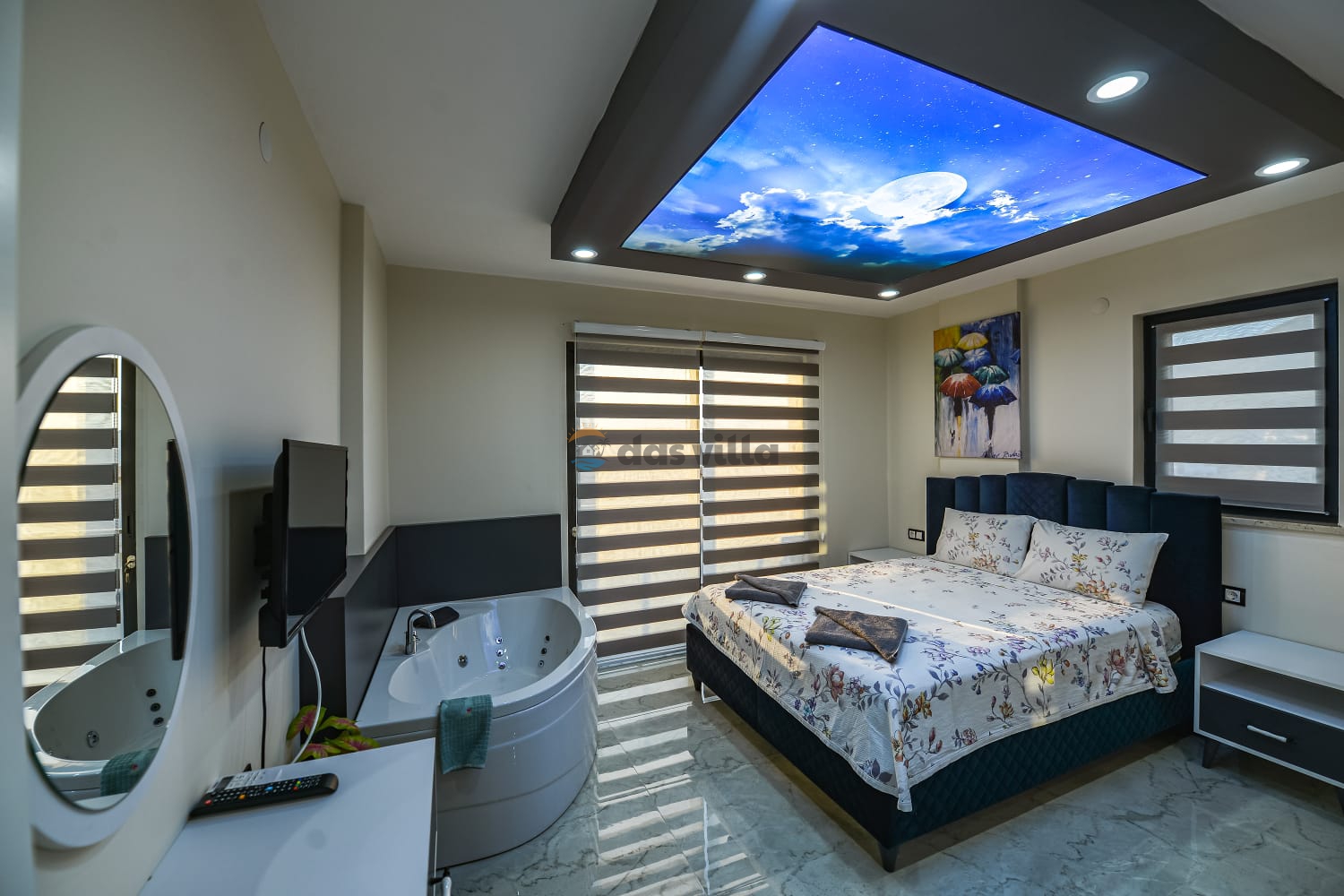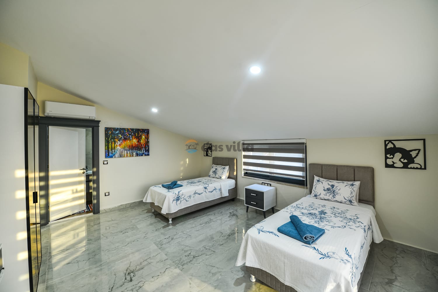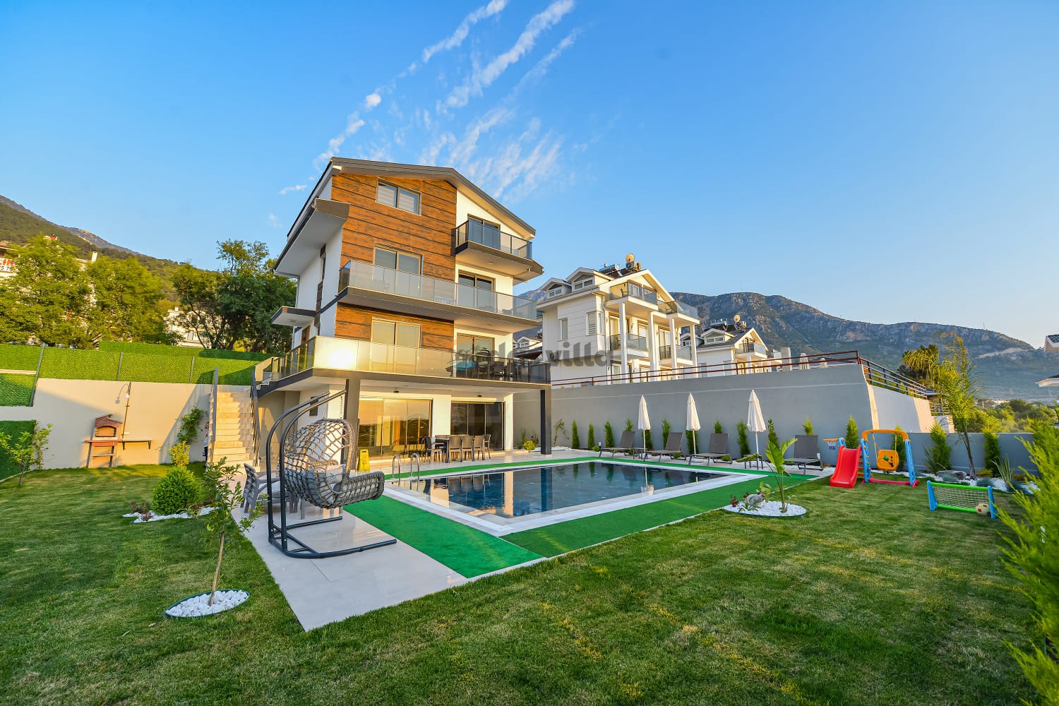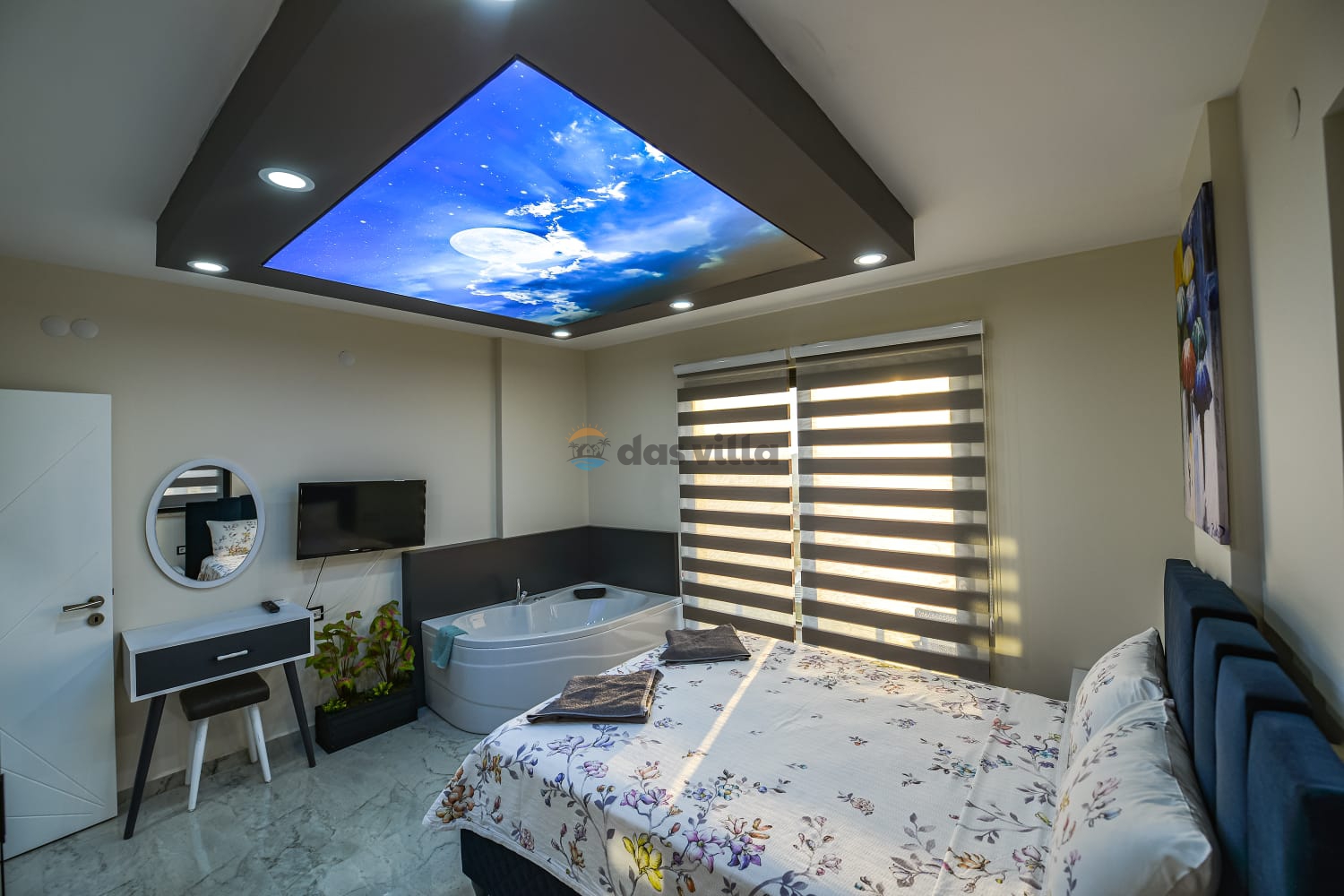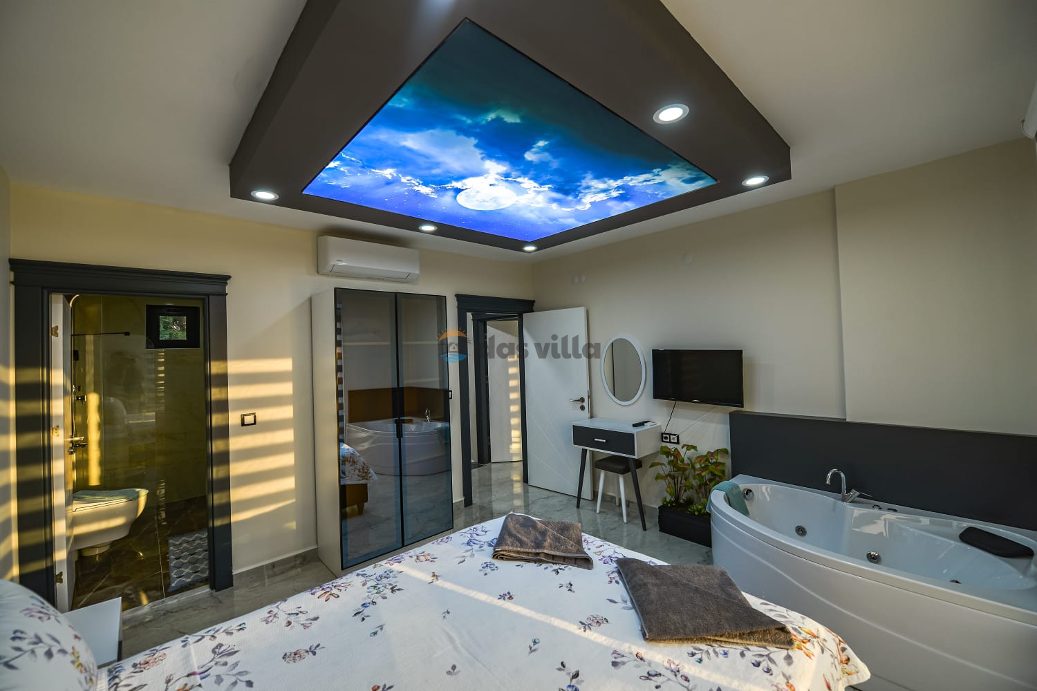 Villa Dedem E ist unsere luxuriöse und moderne private Mietvilla mit 4 Schlafzimmern und einer Kapazität von 8 Personen in der Region Fethiye Ovacık-Ölüdeniz. Unsere sehr luxuriöse Villa ist eine ideale Wahl für große Familien und Gruppen von Freunden. Unsere Villa wurde komplett ausgestattet, damit unsere Gäste einen komfortablen Urlaub verbringen können. Sie können sowohl im Winter als auch im Sommer Unterkünfte zur Verfügung stellen. Unsere Villa verfügt über Optionen wie eine Sauna, einen beheizten Innenpool und ein Türkisches Bad. Unsere moderne und luxuriöse Villa liegt in der Nähe von Unterhaltungszentren, Märkten, wo Sie Ihre Bedürfnisse erfüllen können usw. In unserer Luxusvilla können Sie dank privatem Pool, Sauna und Türkischem Bad die Müdigkeit des ganzen Jahres lindern und möchten, dass Ihr Urlaub nie endet. Wir erwarten Sie, unsere geschätzten Gäste, in unserer luxuriösen und modernen Villa.
