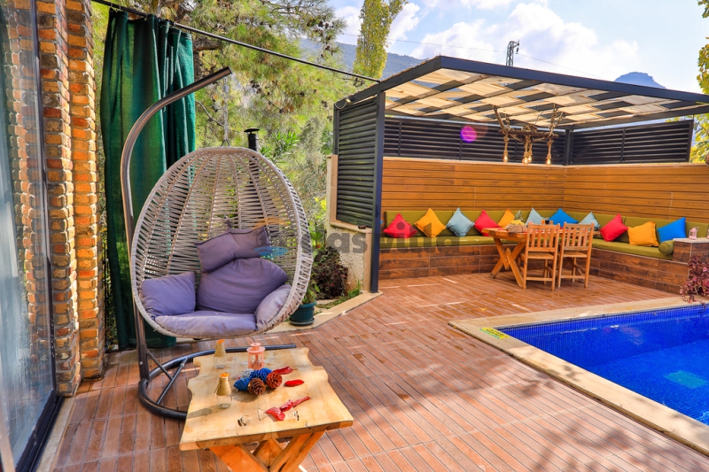 Die Villa Delal Duo befindet sich in İslamlar, einem der friedlichen, angenehmen und ruhigen Orte von Kalkan. Unsere von Natur umgebene Villa liegt fußläufig zum Markt und Restaurant und ganz in der Nähe des Zentrums. Es handelt sich um eine besondere Flitterwochen-Villa mit 1 Schlafzimmer und einer Kapazität für 2 Personen. In unserer speziell für Flitterwochen konzipierten Villa befindet sich gegenüber dem Bett eine Projektion (Kinoanlage). Die sorgfältige Luxusausstattung unserer Villa, die durchdachten feinen Details und das Design, die Kombination ausgewählter Farben und die Harmonie des Holzes werden Ihren Villa-Urlaub angenehm machen und Ihnen, unseren geschätzten Gästen, den Wunsch wecken, dass Ihr Urlaub nie endet. Die Poolterrasse unserer Villa ist windgeschützt und ermöglicht Ihnen einen bequemen Poolgenuss. Ihre verbleibende Zeit können Sie auf der Poolschaukel und beim Tischfußballspiel auf der Terrasse verbringen. Unsere farbenfroh gestaltete Flitterwochenvilla erwartet Sie, unsere geschätzten Gäste. Alle Arten von Obst und Gemüse aus dem Garten am Eingang unseres Hauses stehen nur Ihnen zur Verfügung :)