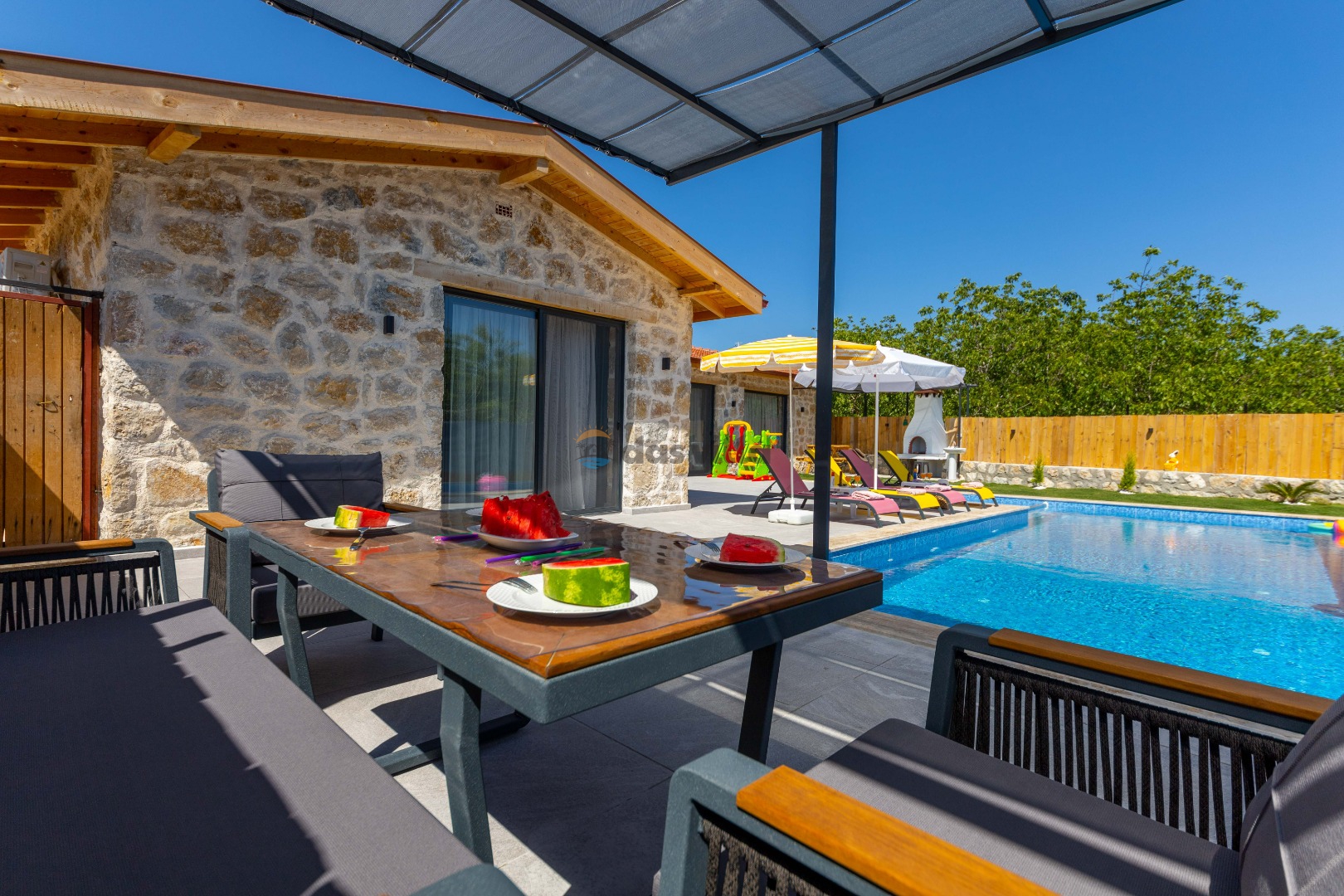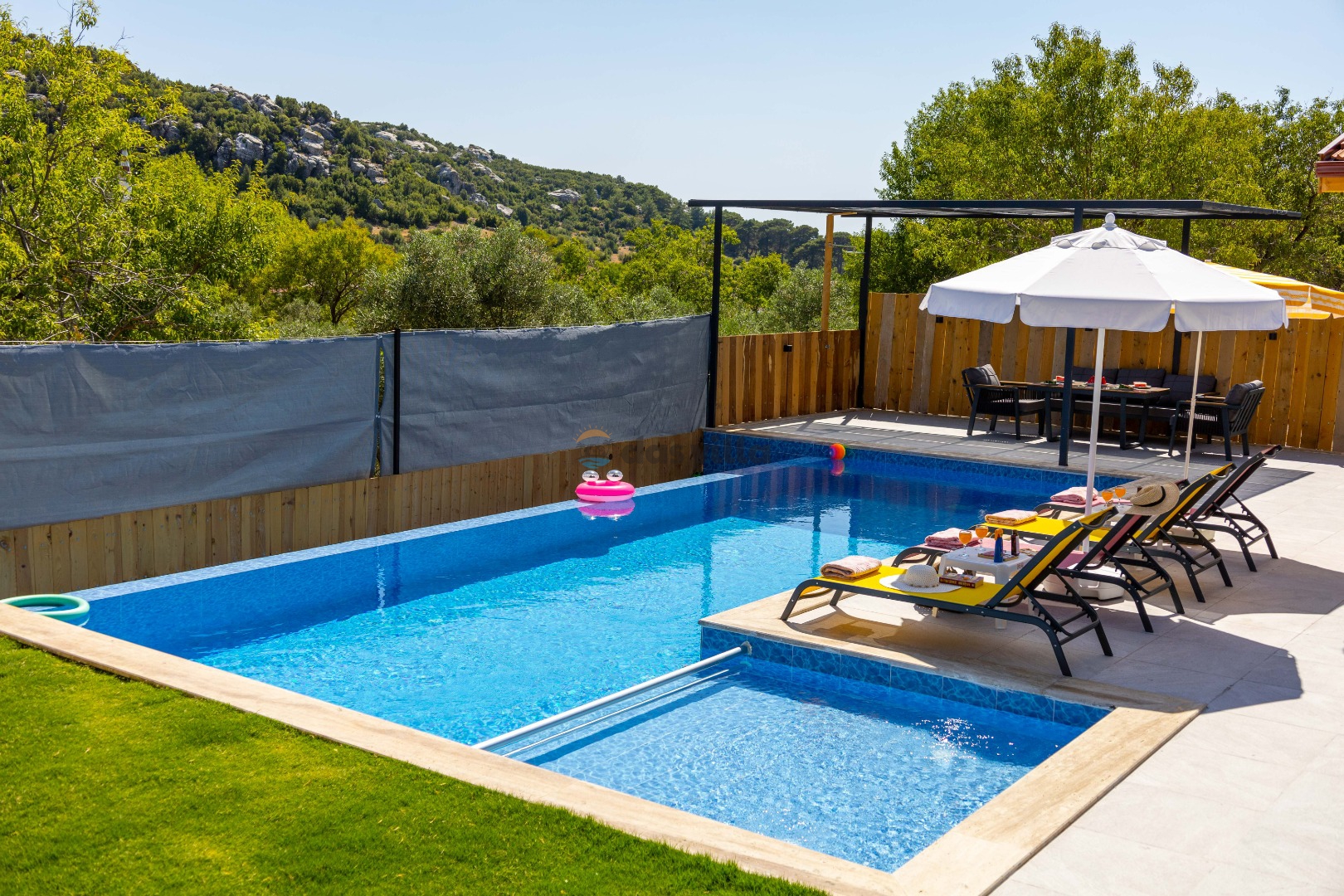 Unsere Villa liegt in der Natur und die Pool- und Gartenteile sind geschützt. Außerdem gibt es in unserer Villa ein Kinderbecken. Dank des Pools und des Whirlpools in unserer Villa haben Sie die Möglichkeit, Ihre Seele und Ihren Körper zu entspannen. Unsere modern gestaltete Villa bietet aufgrund ihrer Lage einen herrlichen Blick auf die Natur.