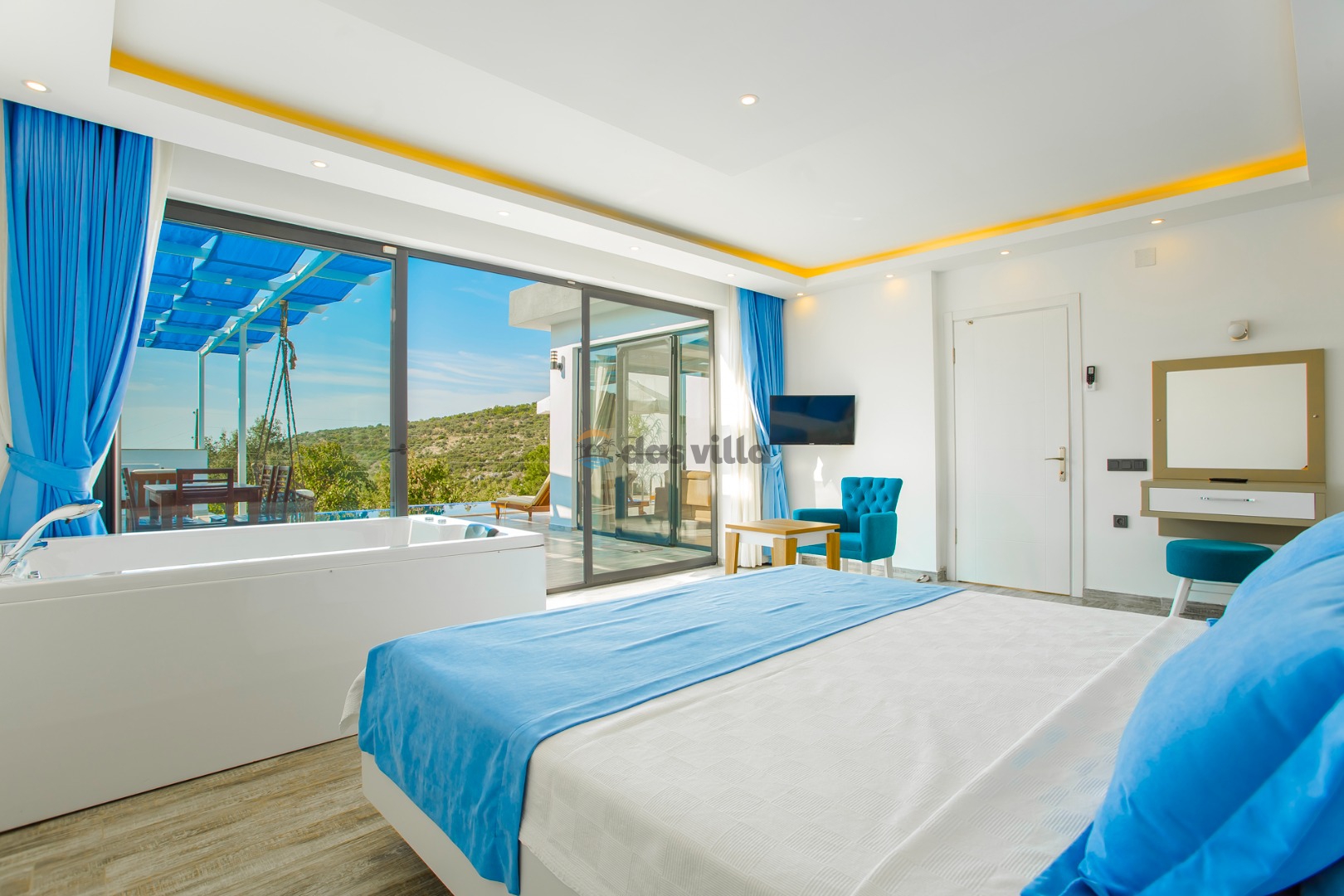 Wir erwarten Sie, unsere geschätzten Gäste, in unserer Villa, die bis ins kleinste Detail gestaltet wurde und sich sehr gut für Ihre Familie, Freundesgruppen oder Flitterwochenpaare eignet.