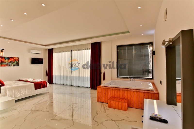 Villa Olivet ist unsere private Mietvilla in Kalkan Üzümlü, mit 2 Schlafzimmern, einer Kapazität von 6 Personen, Sauna, Whirlpool und Türkischem Bad. Es handelt sich um unsere moderne Ferienvilla aus dem Jahr 2021, in der alle Details berücksichtigt wurden, um Ihren Urlaub komfortabel zu gestalten, mit einem Doppel-Whirlpool, einer Sauna, einem türkischen Bad, einem großen grünen Gartenbereich, einem Kinderbecken und einem Kinderspielplatz, von dem es zwei gibt Suite-Schlafzimmer mit eigenem Whirlpool und zwei klappbaren Einzelbetten. Das dritte Zimmer bietet Platz für bis zu 6 Personen. Die Villa Olivet, deren Poolbereich zu 100 % geschützt ist und mit ihrem großen Swimmingpool, der großen Poolterrasse und dem großen Gartenbereich eine großzügige Umgebung bietet, liegt nur wenige Gehminuten von den Restaurants und Märkten an ihrem Standort entfernt. Im dritten Schlafzimmer unserer Villa gibt es ein Türkisches Bad und eine Sauna. In unserer komplett ausgestatteten Villa fühlen Sie sich wie zu Hause und möchten, dass Ihr Urlaub nie endet. Unsere moderne und komfortable Villa wartet auf Sie, unsere geschätzten Gäste.