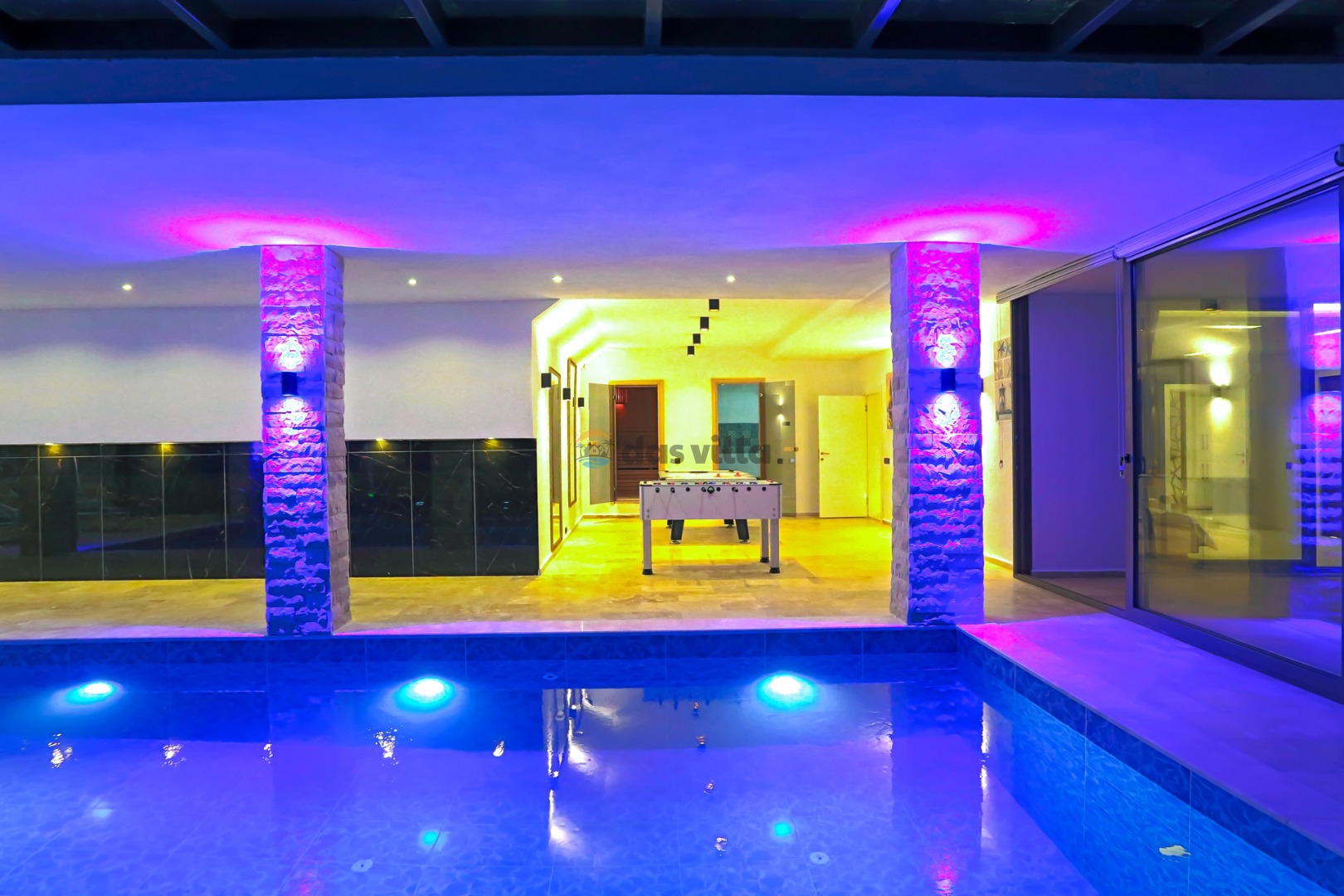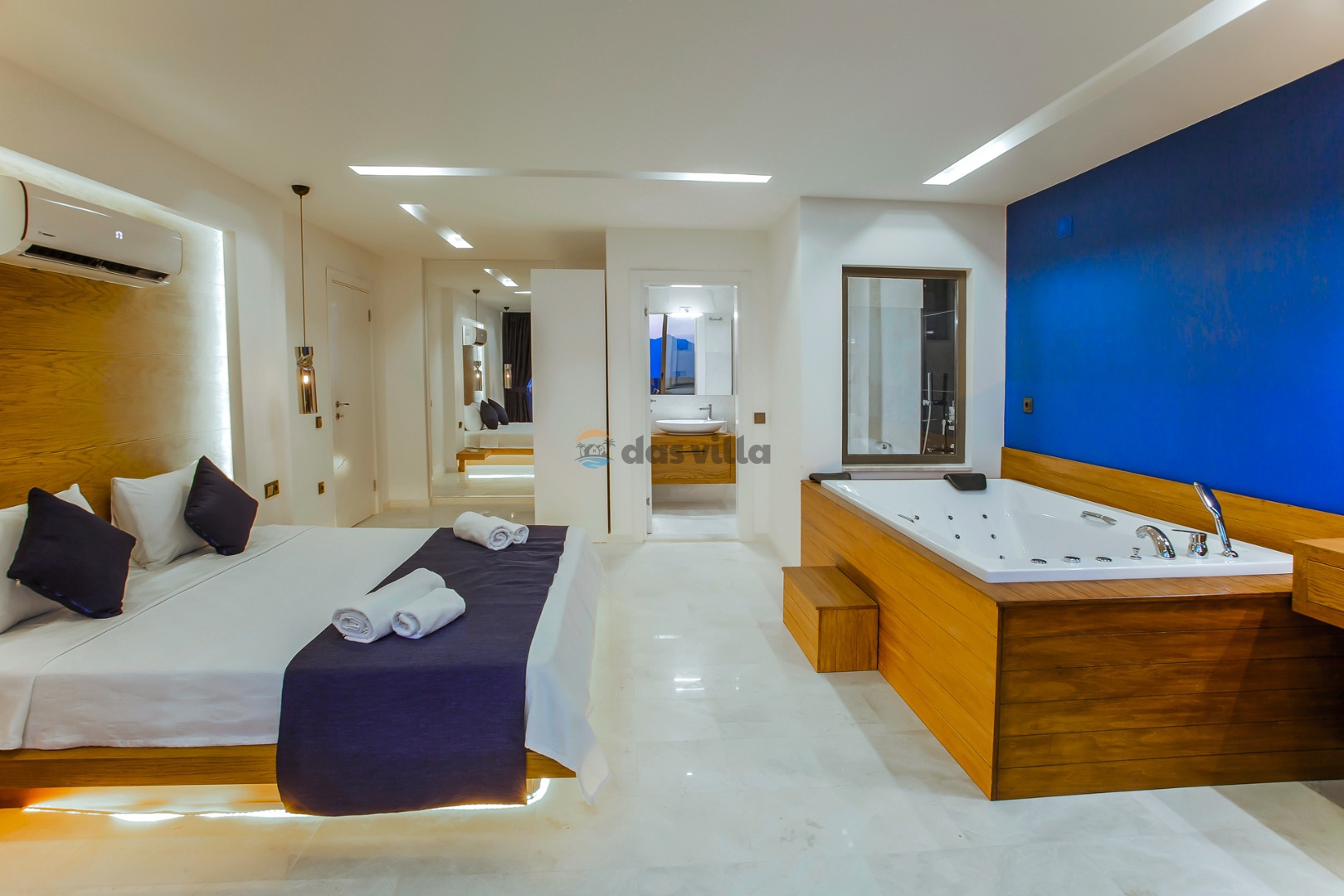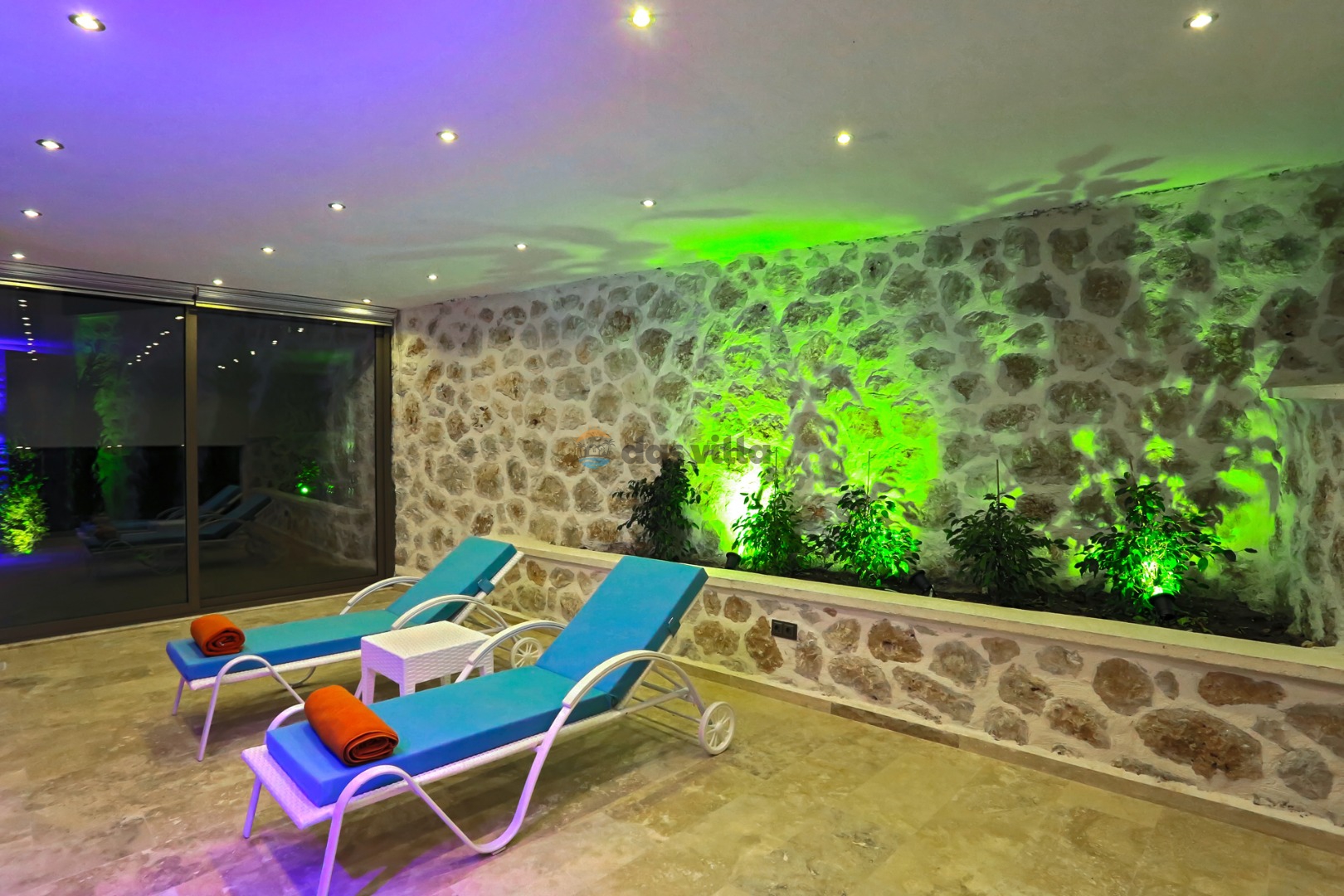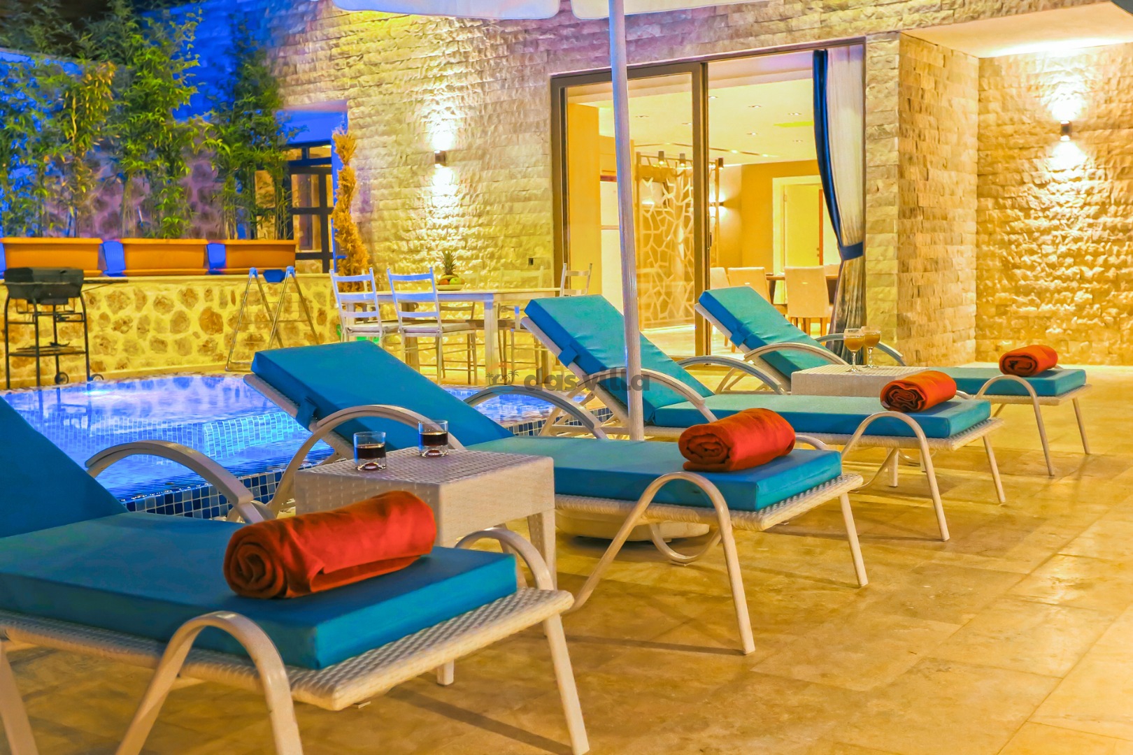 Villa White Smith, unsere Sommervilla, befindet sich in der Gegend Kalkan Kördere. Unsere Villa mit drei Schlafzimmern bietet Platz für sechs Personen, wurde sorgfältig gestaltet und verfügt über einen Whirlpool in der Doppelsuite. Darüber hinaus wird der Innenpool der Villa sowohl im Sommer als auch im Winter rege genutzt. In unserer Villa, die einen herrlichen Blick auf das Meer und die Natur bietet und wo Ruhe und Frieden nebeneinander herrschen, ist die Poolterrasse geschützt und von außen nicht einsehbar. In unserer Villa gibt es eine Sauna und ein Türkisches Bad, was normalerweise von Flitterwochenpaaren bevorzugt wird. Als Unterhaltungsbereich können Sie in unserer Villa eine angenehme Zeit beim Tischfußball, Tischtennis und Airhockey verbringen.