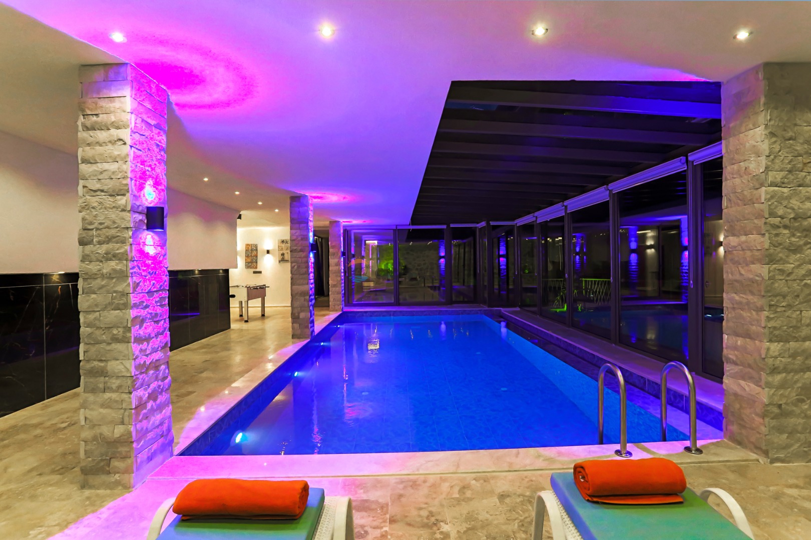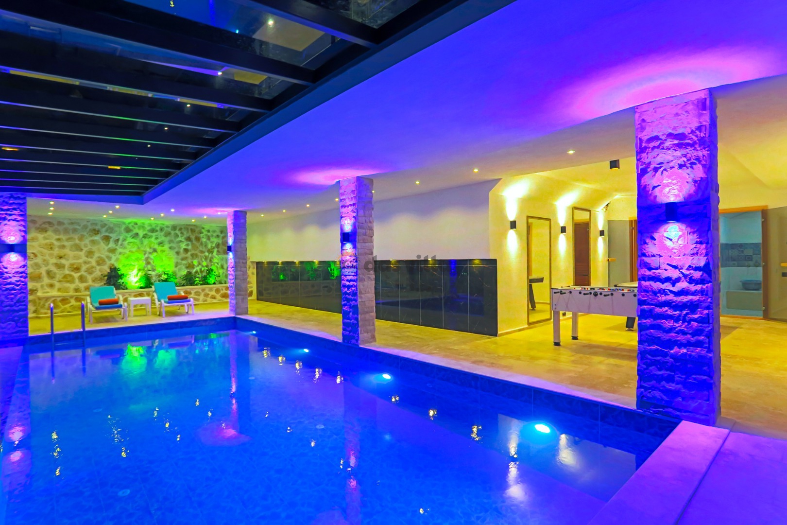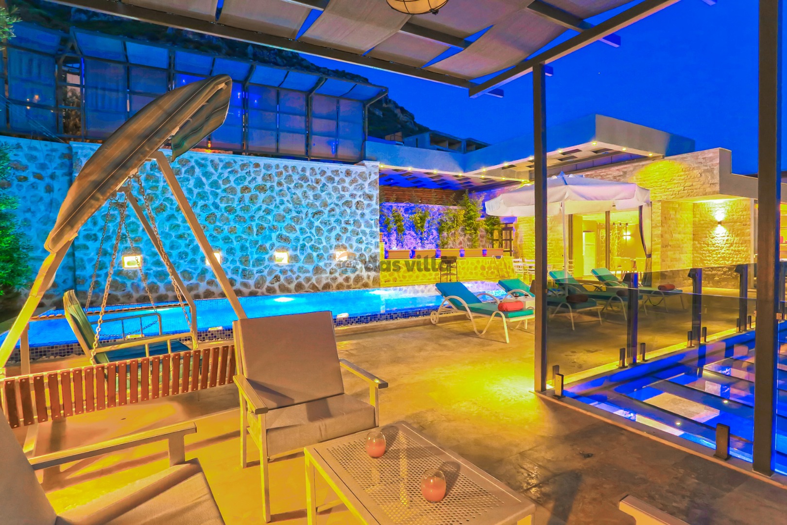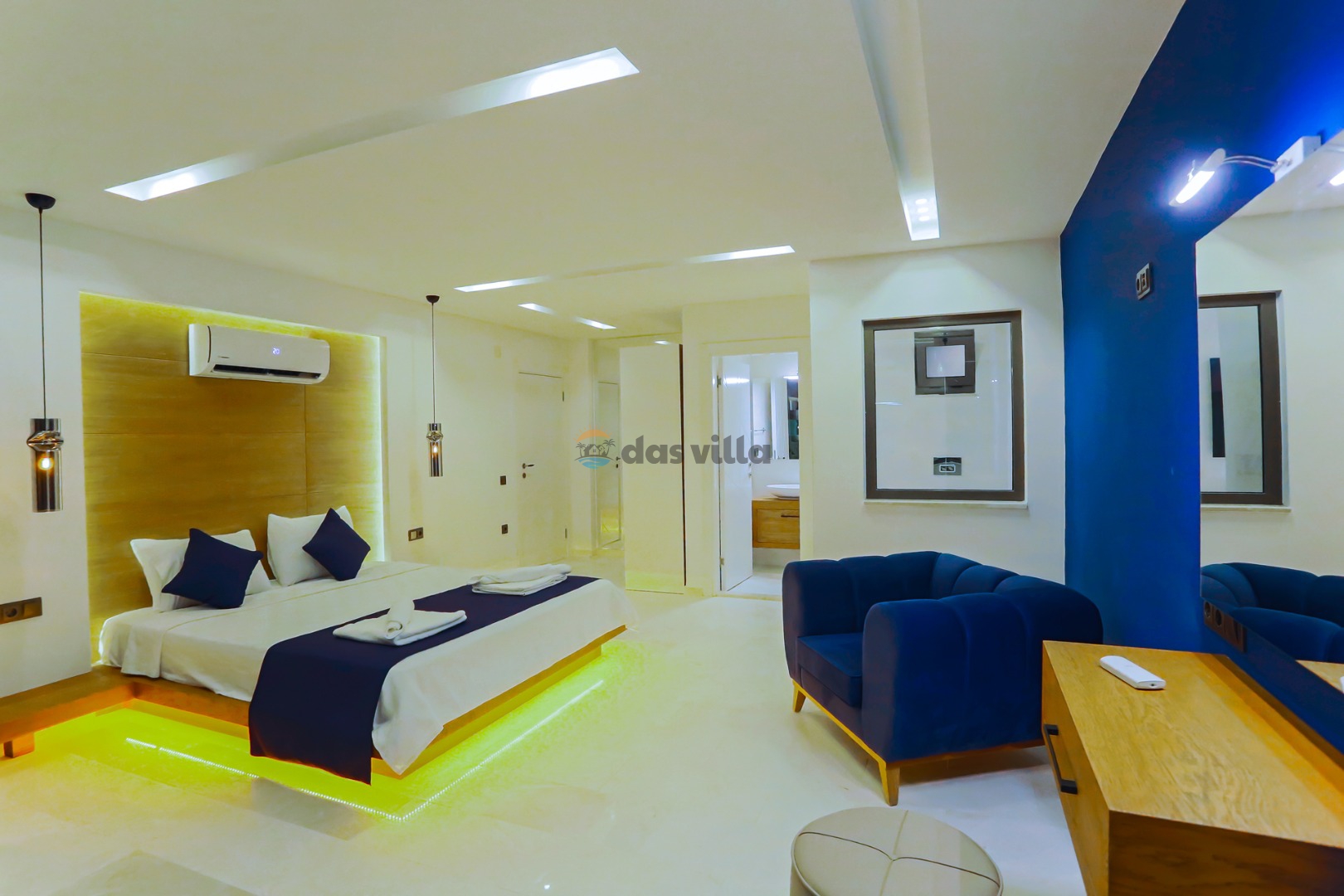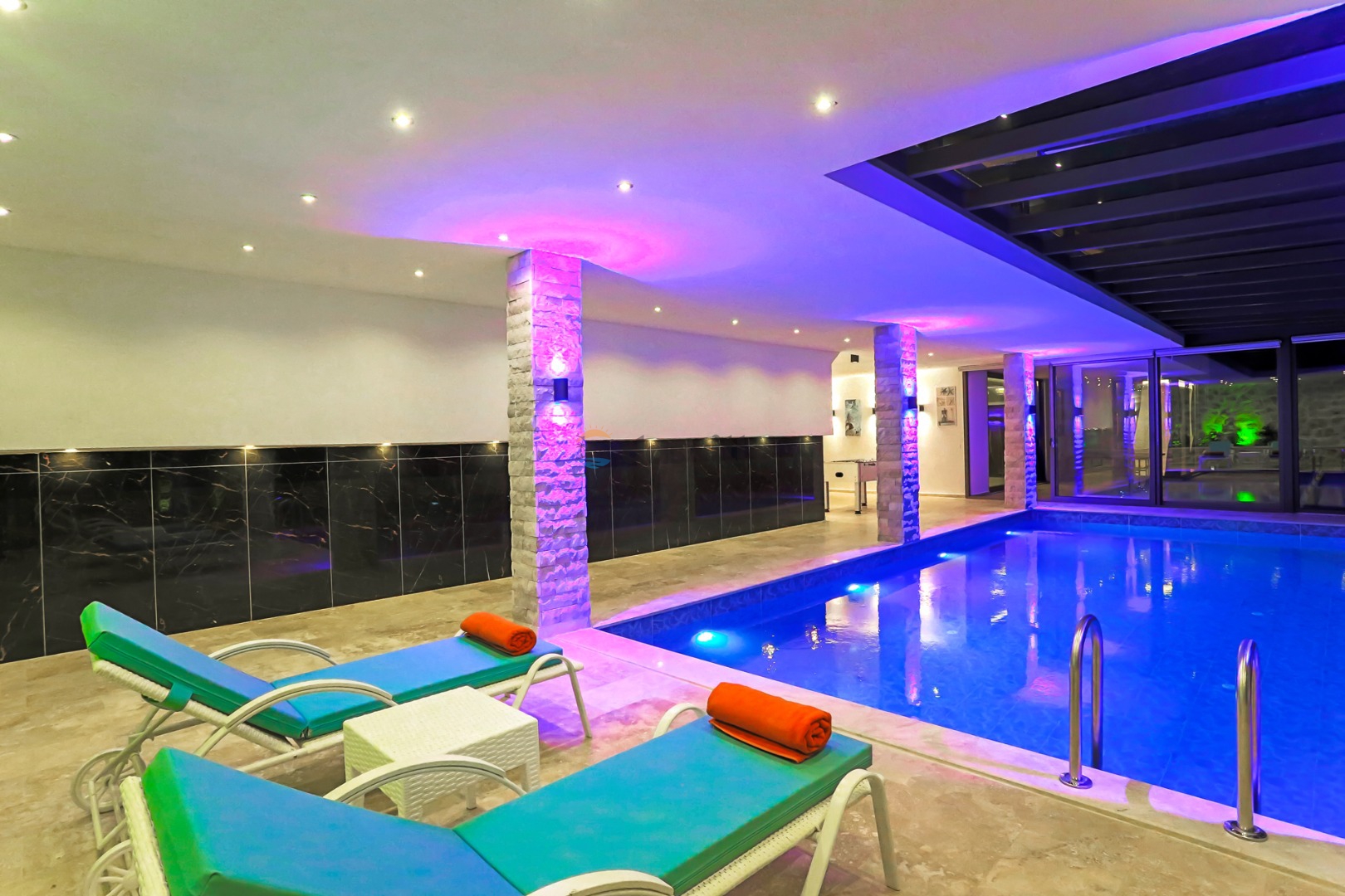 Villa White Smith, unsere Sommervilla, befindet sich in der Gegend Kalkan Kördere. Unsere Villa mit drei Schlafzimmern bietet Platz für sechs Personen, wurde sorgfältig gestaltet und verfügt über einen Whirlpool in der Doppelsuite. Darüber hinaus wird der Innenpool der Villa sowohl im Sommer als auch im Winter rege genutzt. In unserer Villa, die einen herrlichen Blick auf das Meer und die Natur bietet und wo Ruhe und Frieden nebeneinander herrschen, ist die Poolterrasse geschützt und von außen nicht einsehbar. In unserer Villa gibt es eine Sauna und ein Türkisches Bad, was normalerweise von Flitterwochenpaaren bevorzugt wird. Als Unterhaltungsbereich können Sie in unserer Villa eine angenehme Zeit beim Tischfußball, Tischtennis und Airhockey verbringen.