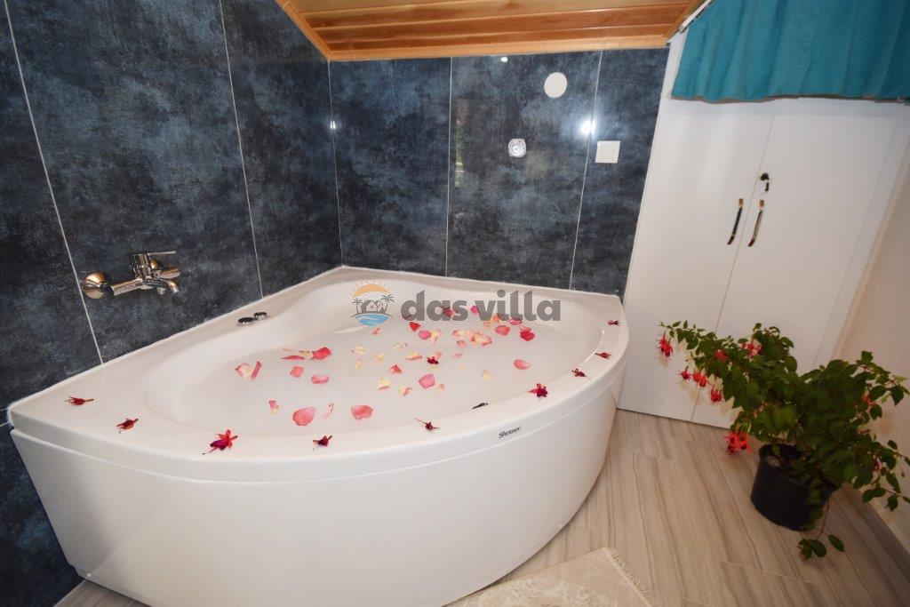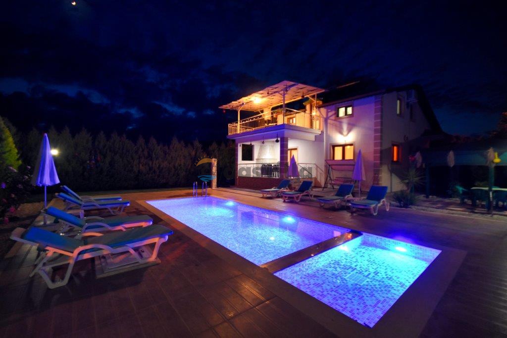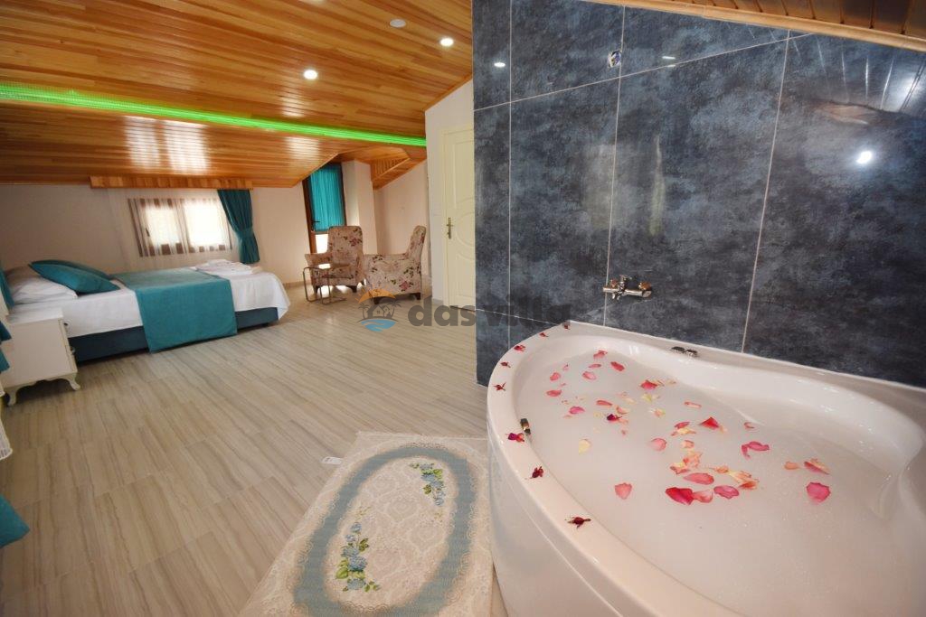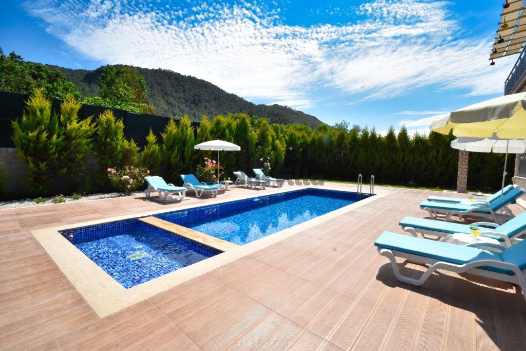 Villa Ahududu is a private rental villa with 4 bedrooms and a capacity of 7 people with a large garden area in Fethiye Kayaköy. Our conservative villa located in nature can be an ideal choice for large families and groups of friends. There is also a children's pool on the large pool terrace of our villa. We are waiting for our valued guests in our modern villa with full equipment where you can have fun with your family in the large garden area and pool terrace.