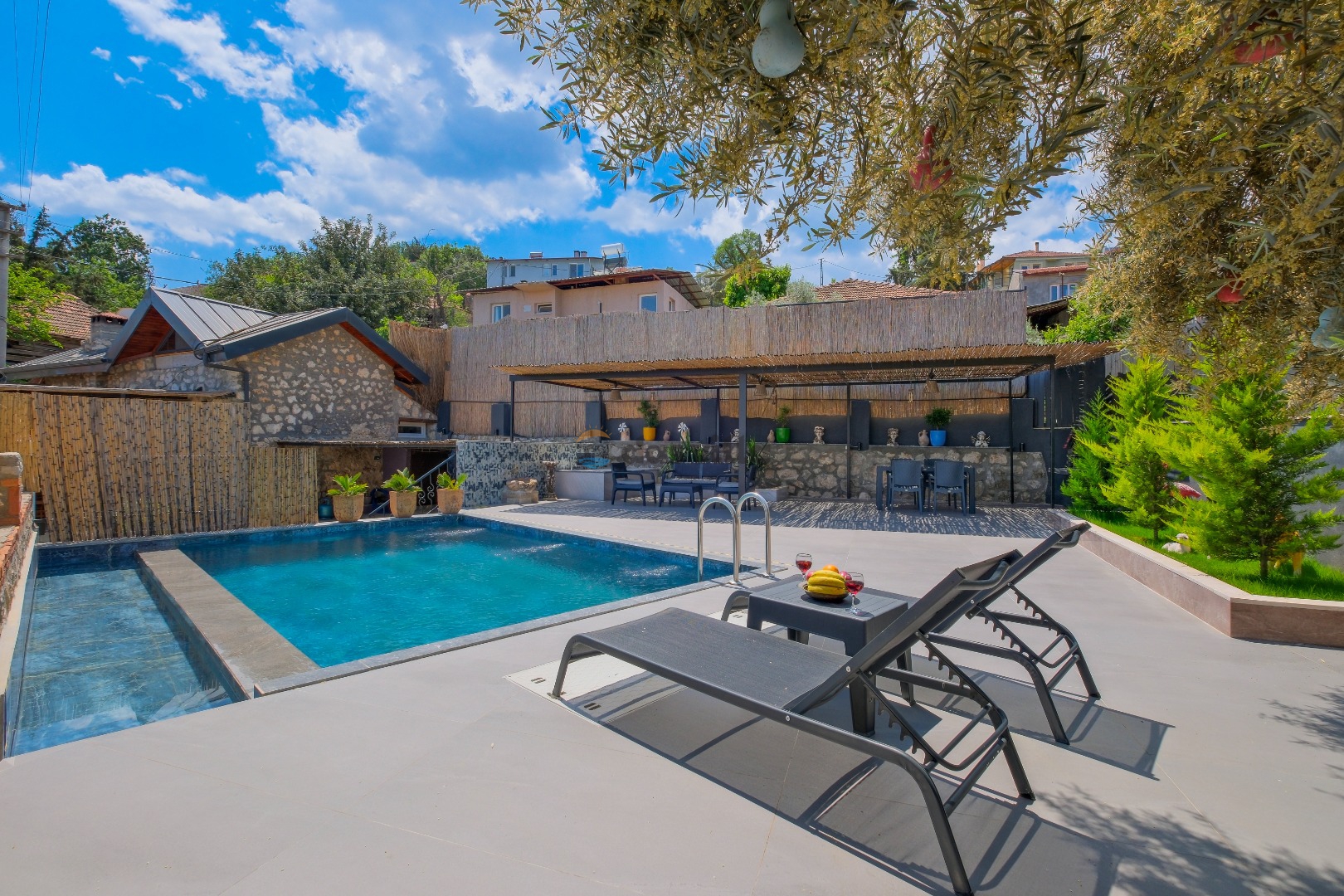 Villa Antigua is a 2-bedroom villa with a capacity of 3 people located in the Fethiye Gökben area. Our holiday rental villa Villa Antigua, located in nature, is a very suitable option for groups of friends and honeymoon couples. There is also a jacuzzi on the pool terrace where you can relieve the tiredness of the day.