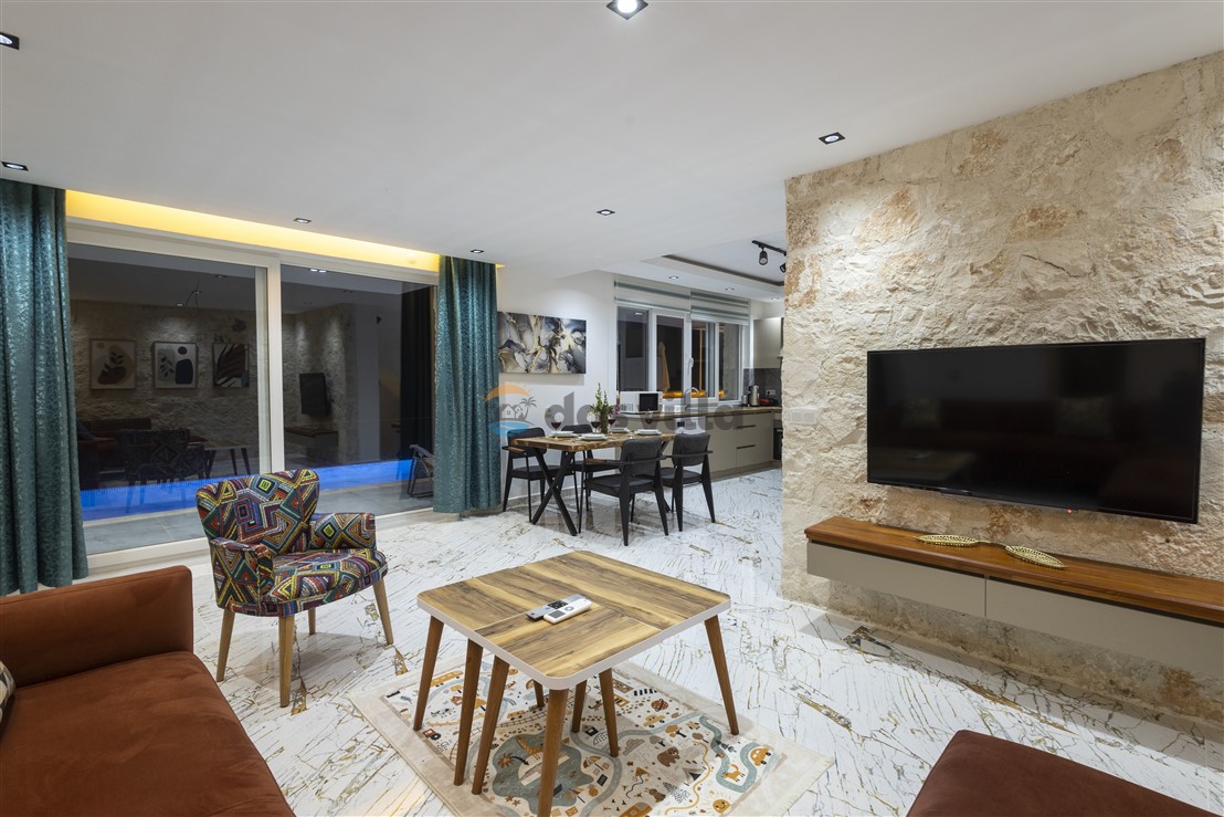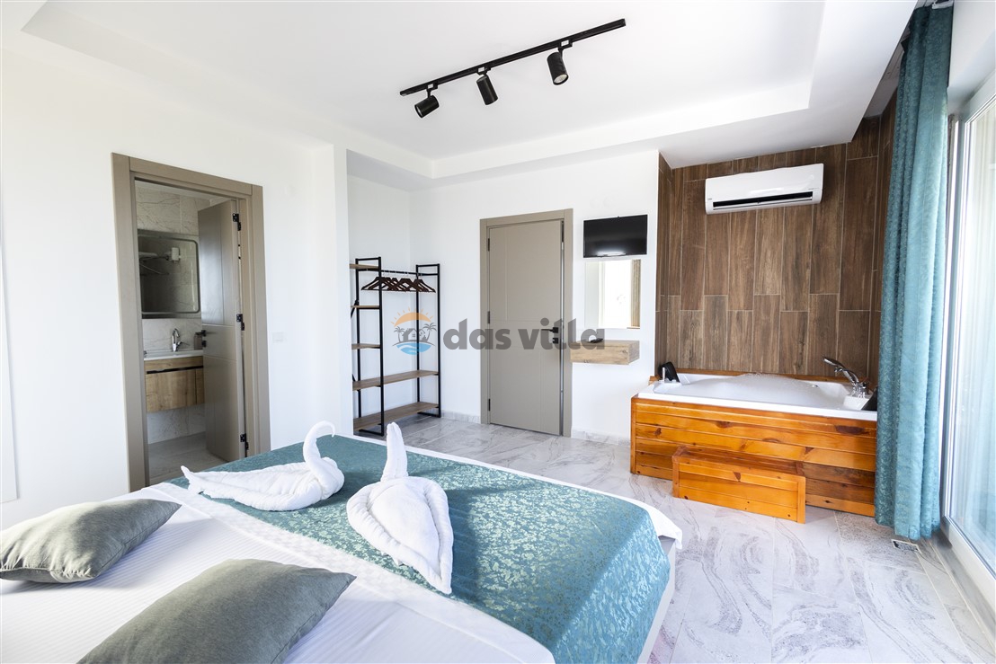 Villa Bade is a honeymoon villa for rent located in Demre, Antalya. It is a very suitable option for couples who want a holiday in a quiet location surrounded by nature. Our villa, which is in the conservative villas category, has 2 bedrooms and a capacity of 4 people. Villa Bade, with its sheltered pool and garden not visible from the outside, offers a peaceful holiday opportunity for families who care about privacy. It also offers the comfort of a jacuzzi in the bedroom.