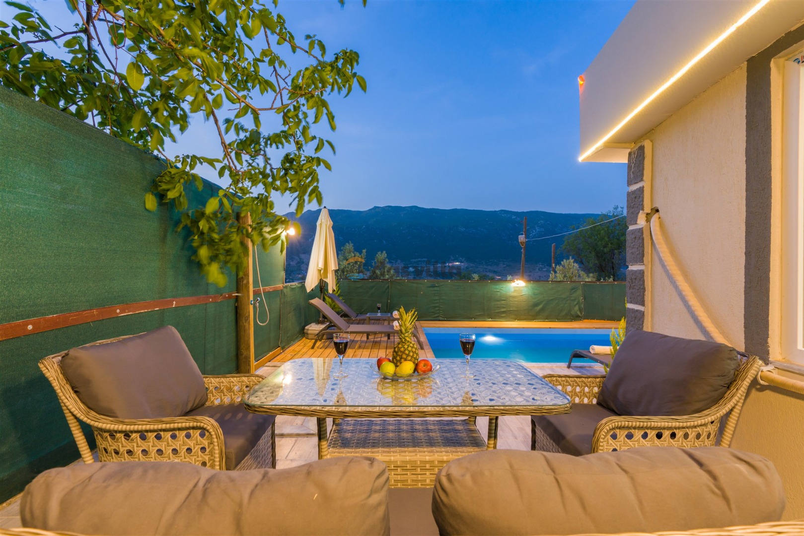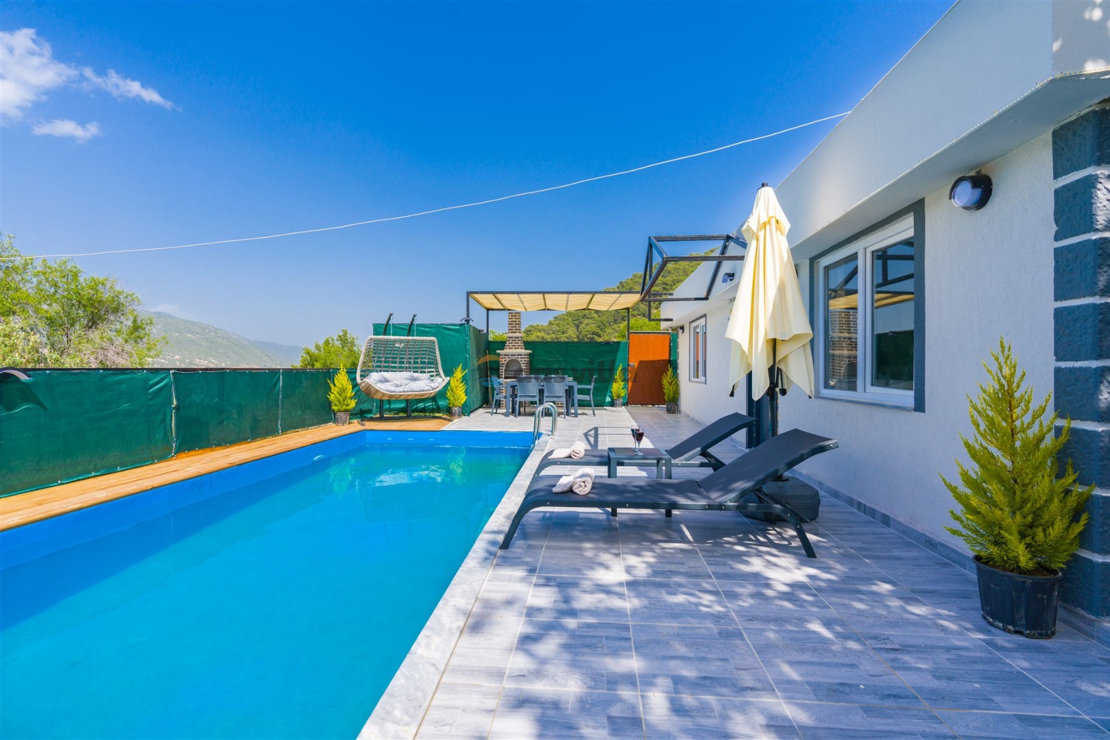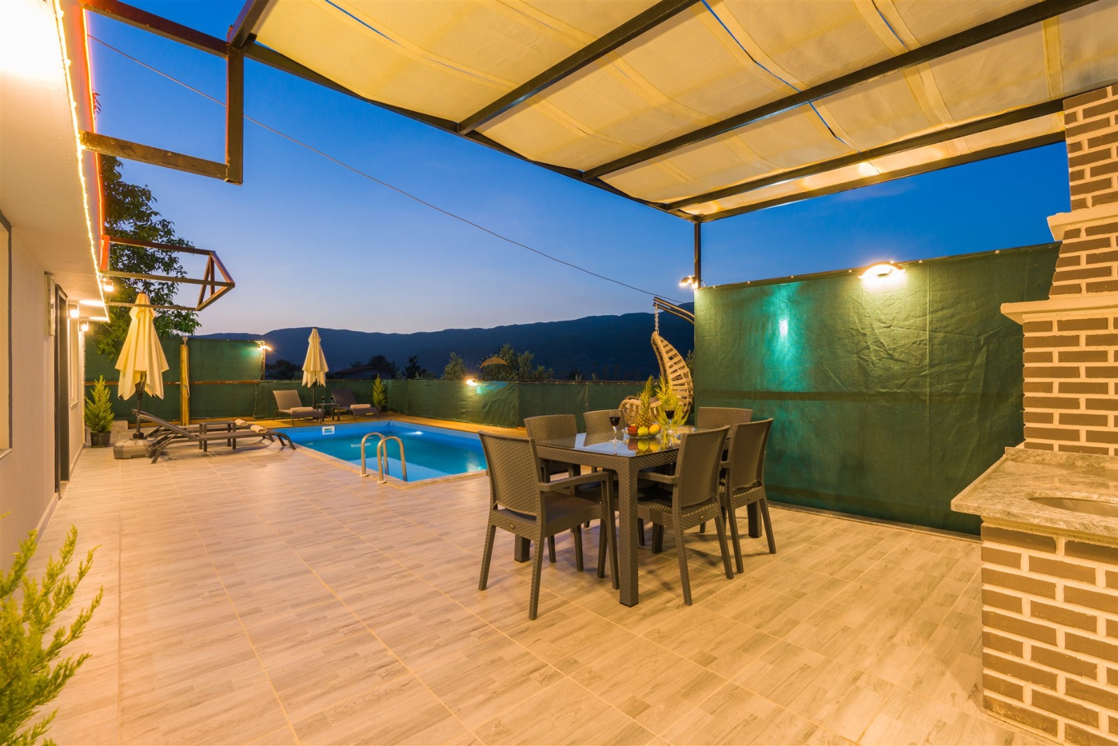 Villa Can is a 2-bedroom villa with a capacity of 4 people located in the Kalkan Sarıbelen region. Our rental holiday villa Villa Can, located in nature, is a very suitable option for families and groups of friends. Our rental villa, which also has a jacuzzi in the bedroom where you can relieve the tiredness of the day, opens its doors to its guests to offer a quiet and peaceful holiday opportunity.