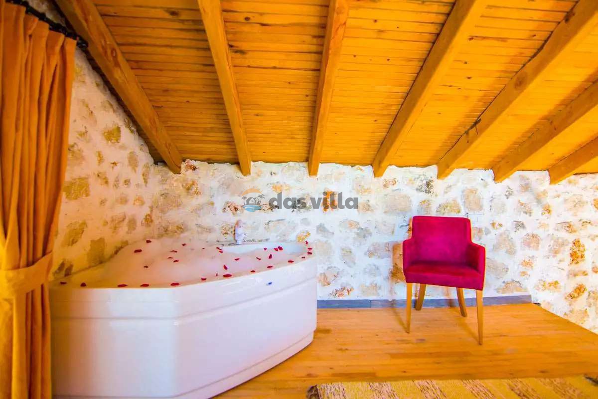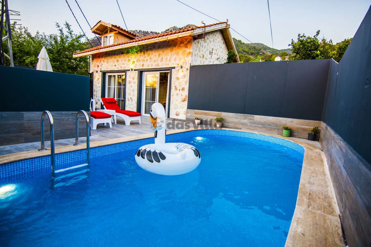 4.088 ₺Villa Çınar 1; is a 1 bedroom villa with a capacity of 2 people located in the Kalkan Üzümlü region. Our rental villa is specially designed for honeymoon couples. Our honeymoon villa, which has a completely sheltered pool terrace, offers the opportunity to use the pool comfortably. Our villa, which is quite suitable for our guests who dream of an unforgettable holiday surrounded by nature, has a functional living room and American kitchen. Our villa, which also has a jacuzzi in the bedroom where you can relieve the tiredness of the day, opens its doors to its guests for a pleasant holiday.
