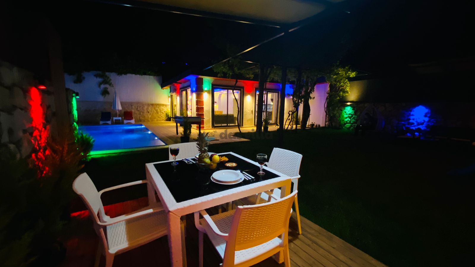 3.750 ₺Villa Çınar 2; It is a 1 bedroom villa with a capacity of 2 people located in the Kalkan Üzümlü region. Our rental villa is specially designed for honeymoon couples. Our honeymoon villa, which has a completely sheltered pool terrace, offers the opportunity to use the pool comfortably. Our villa has a sweet grass garden and a children's playground. Our villa, which is quite suitable for our guests who dream of an unforgettable holiday surrounded by nature, has a functional living room and an American kitchen. Our villa, which also has a jacuzzi in the bedroom where you can relieve the tiredness of the day, opens its doors to its guests for a pleasant holiday.