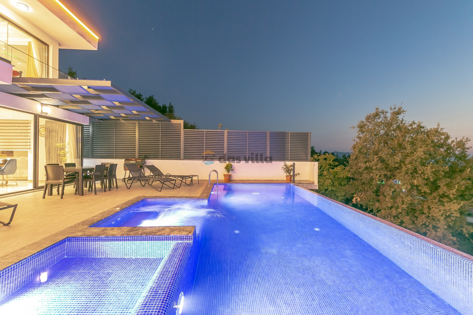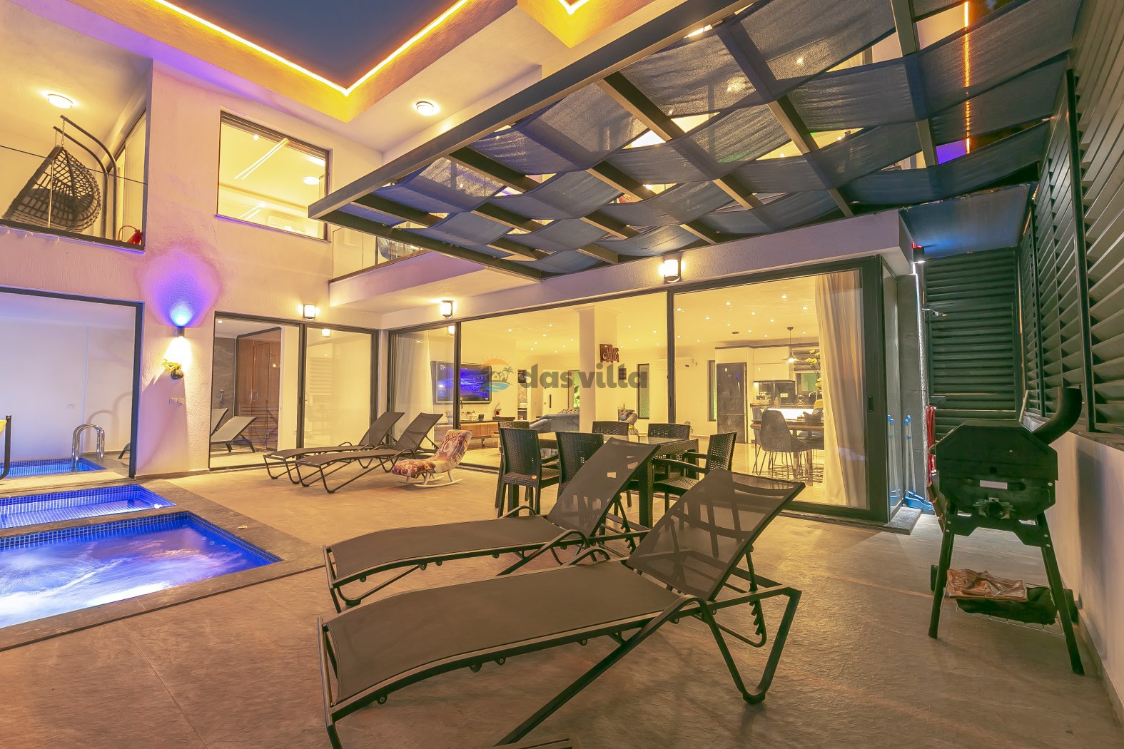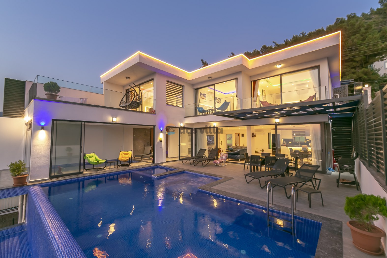 Villa Fantastic is a luxury and modern villa for rent in Kalkan Uzumlu region with 3 bedrooms and a capacity of 6 people. Our villa also has Turkish bath, sauna, indoor pool options. You will have the opportunity to have a nice holiday with your family and loved ones both in winter and summer and have enjoyable moments. Thanks to our villa's modern kitchen, complete equipment and comfortable items, you will feel at home and have a comfortable holiday. You will have the opportunity to have enjoyable moments and relieve the tiredness of the whole year in our villa with jacuzzi and private pool. We are waiting for you, our valued guests, in our villa, which has been designed with every detail in mind, ideal for nuclear families and large families.