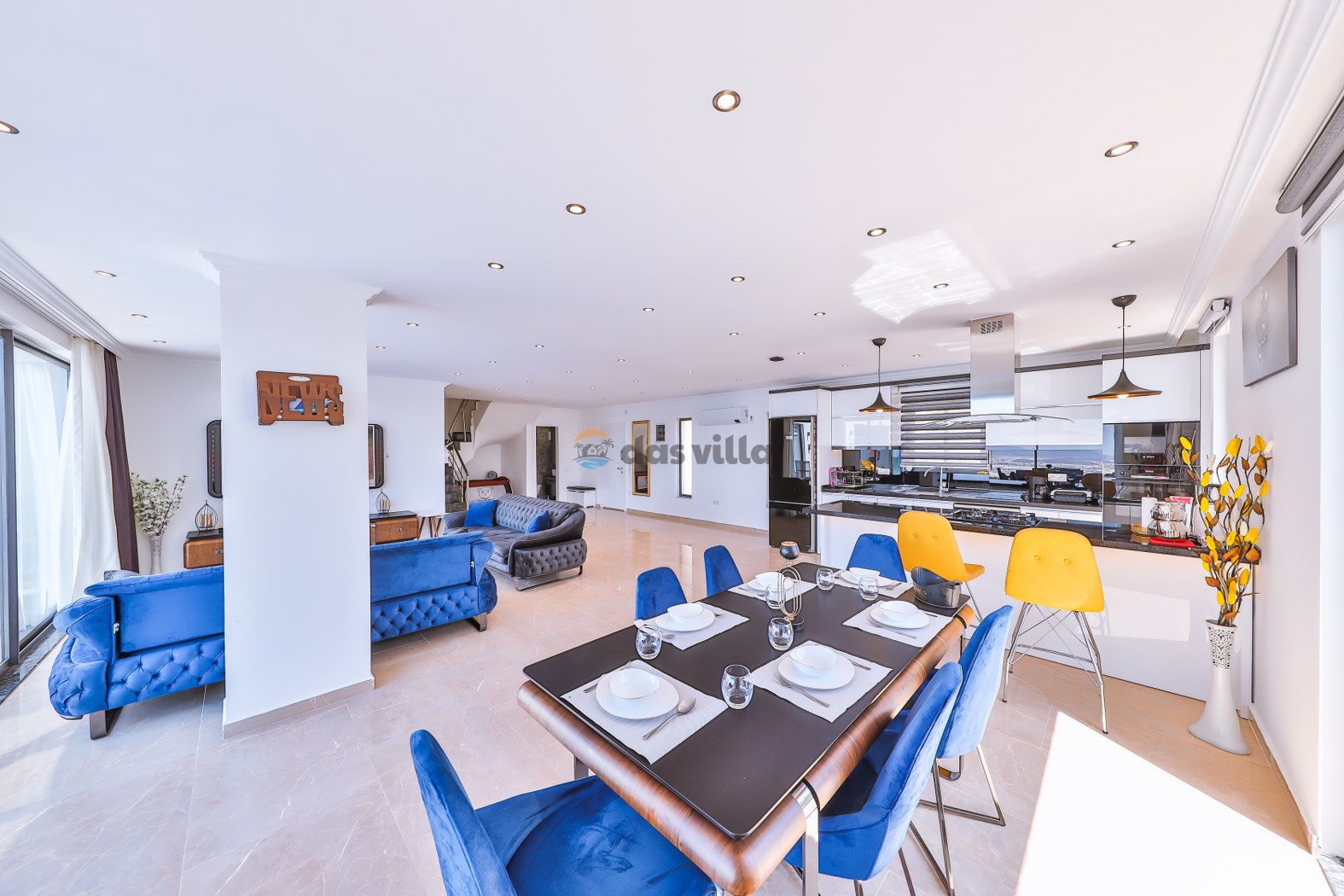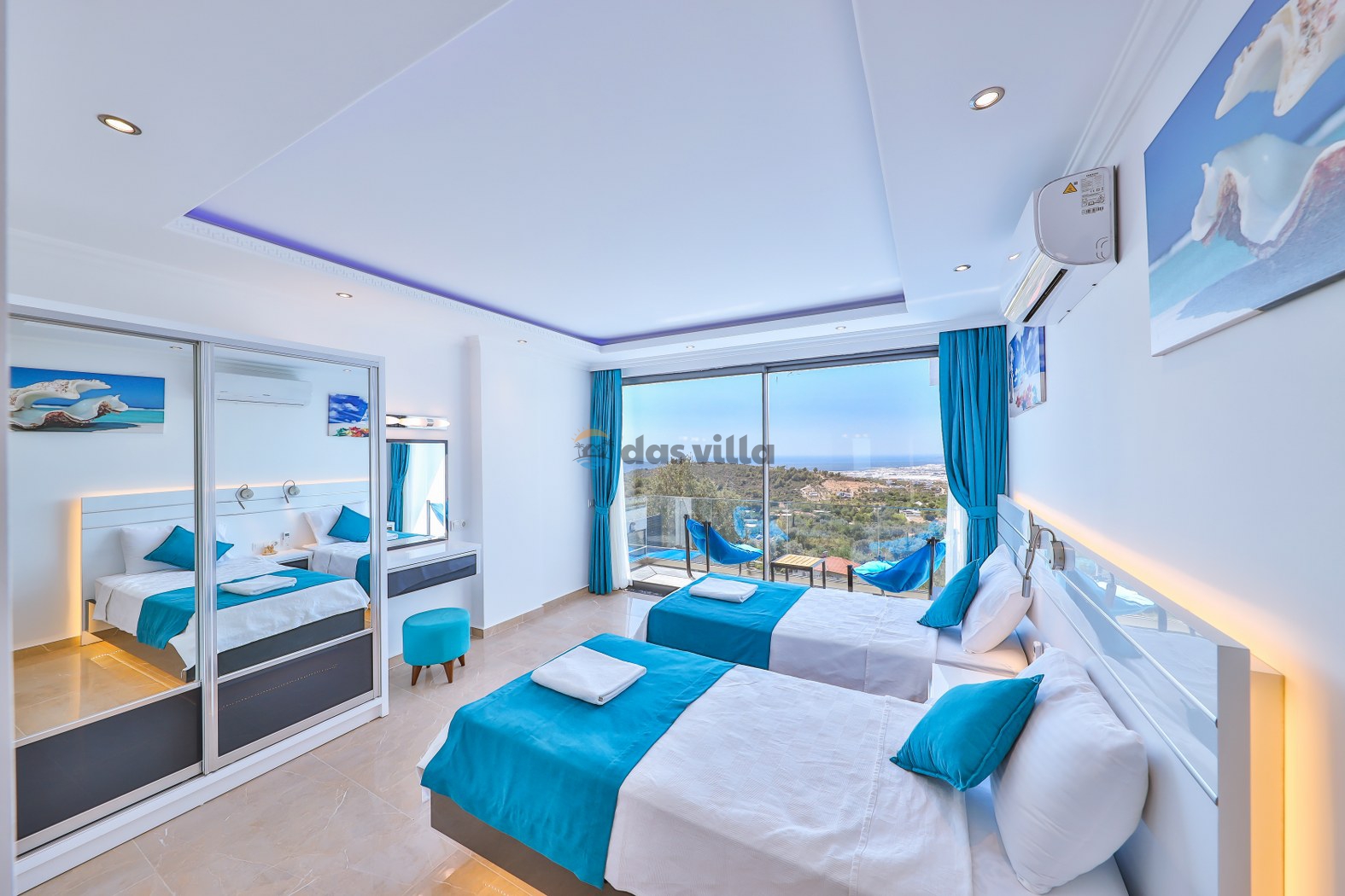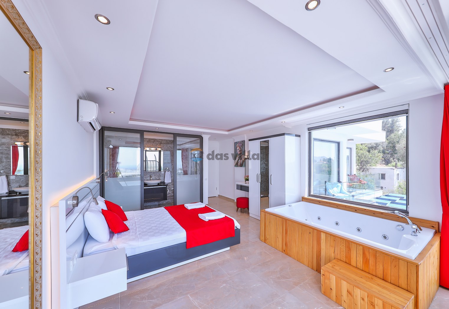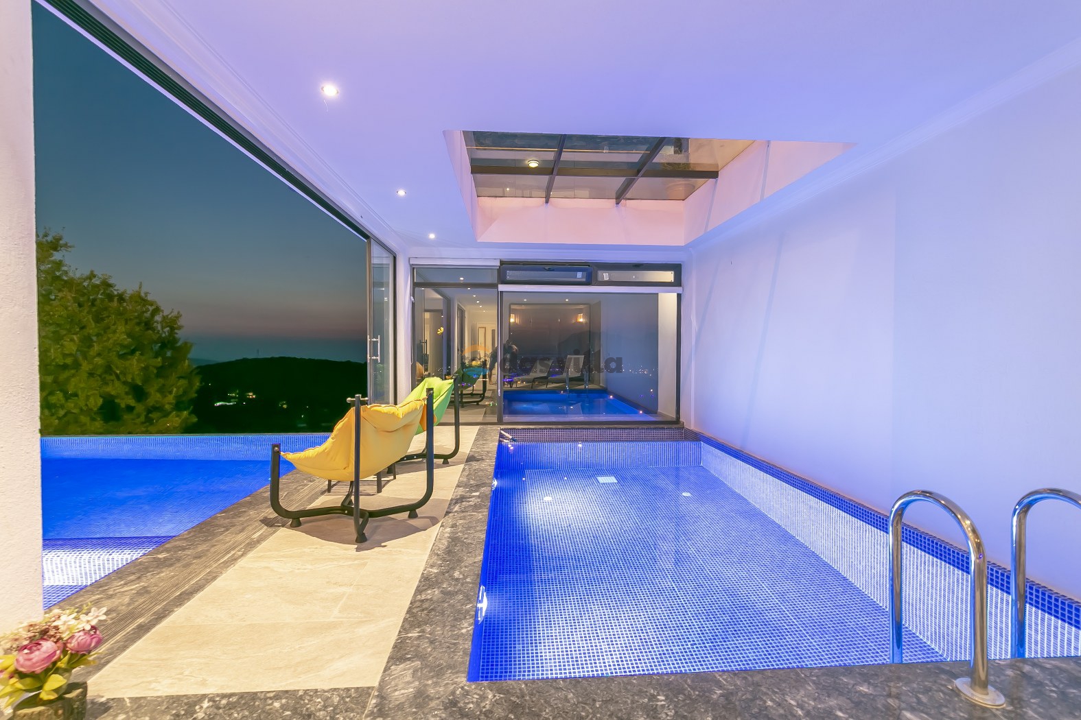Villa Fantastic is a luxury and modern villa for rent in Kalkan Uzumlu region with 3 bedrooms and a capacity of 6 people. Our villa also has Turkish bath, sauna, indoor pool options. You will have the opportunity to have a nice holiday with your family and loved ones both in winter and summer and have enjoyable moments. Thanks to our villa's modern kitchen, complete equipment and comfortable items, you will feel at home and have a comfortable holiday. You will have the opportunity to have enjoyable moments and relieve the tiredness of the whole year in our villa with jacuzzi and private pool. We are waiting for you, our valued guests, in our villa, which has been designed with every detail in mind, ideal for nuclear families and large families.