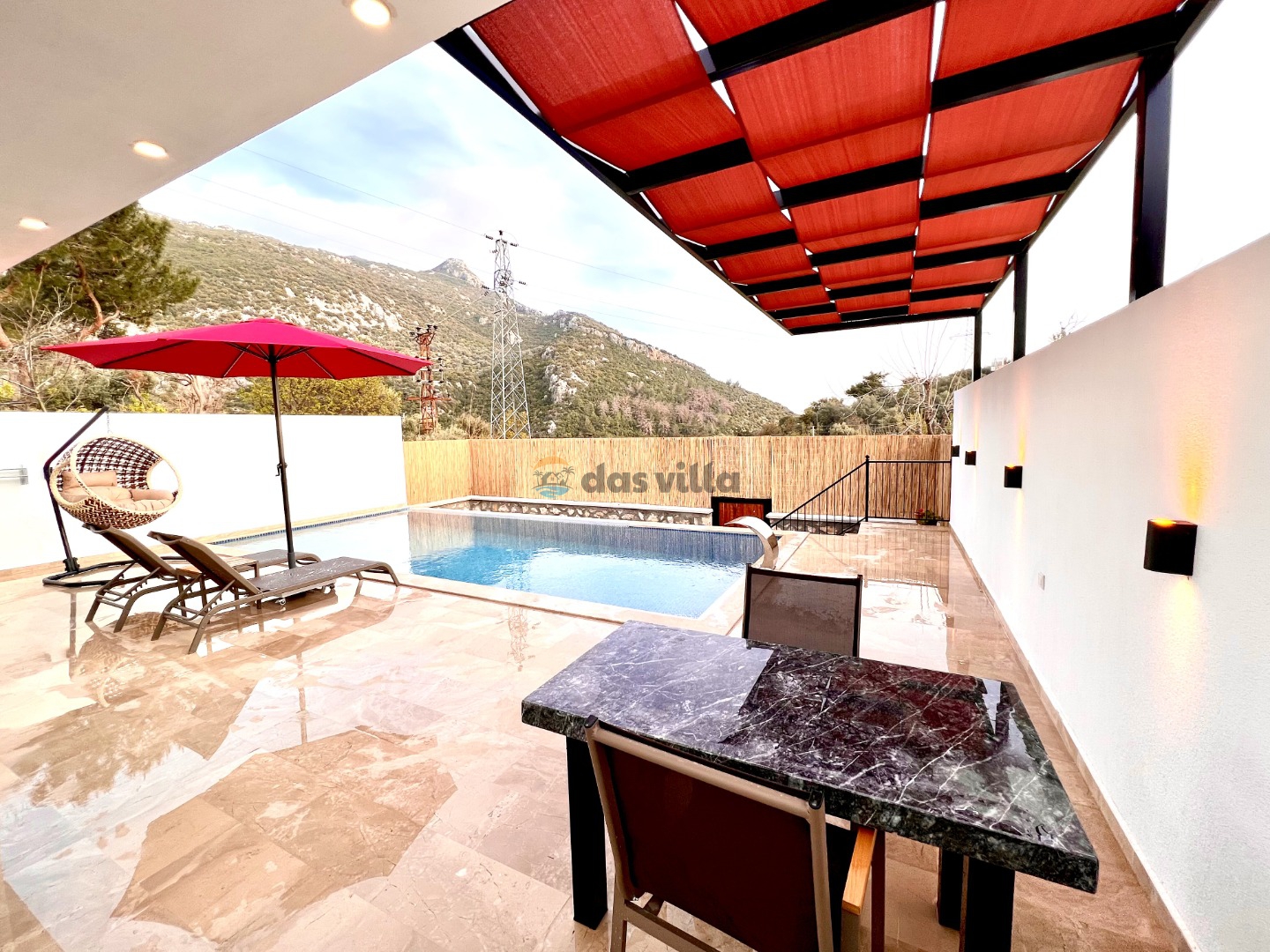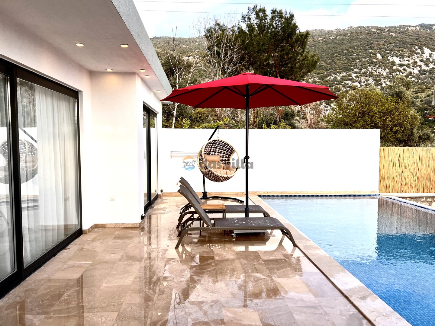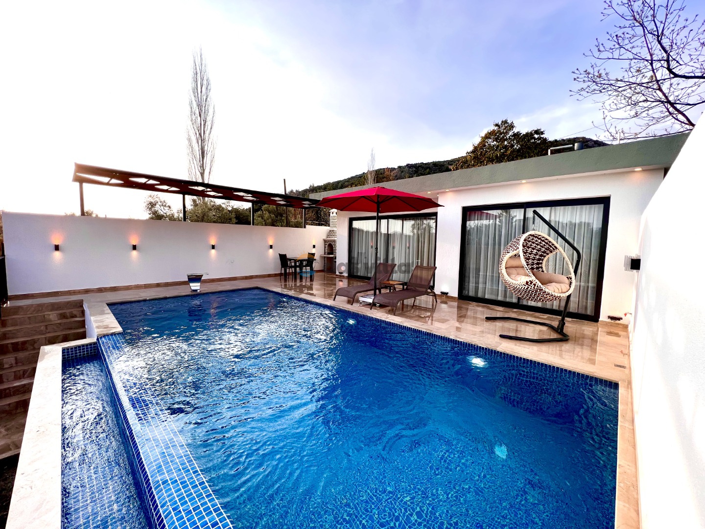Villa Gala Mini is a 1 bedroom 2 person capacity conservative rental villa in Kalkan Islamlar area. Our villa, which is surrounded by nature, can be an ideal choice for nuclear families and honeymoon couples. Our villa, which is far from the noise and crowds of the city, offers you a peaceful holiday. Our villa, which is designed with full equipment and fully furnished, has a sheltered pool terrace, which makes it the choice of our conservative families, and there is table tennis in our villa as an activity. You will have the opportunity to get rid of the tiredness of the whole year in our villa with its private pool and jacuzzi.