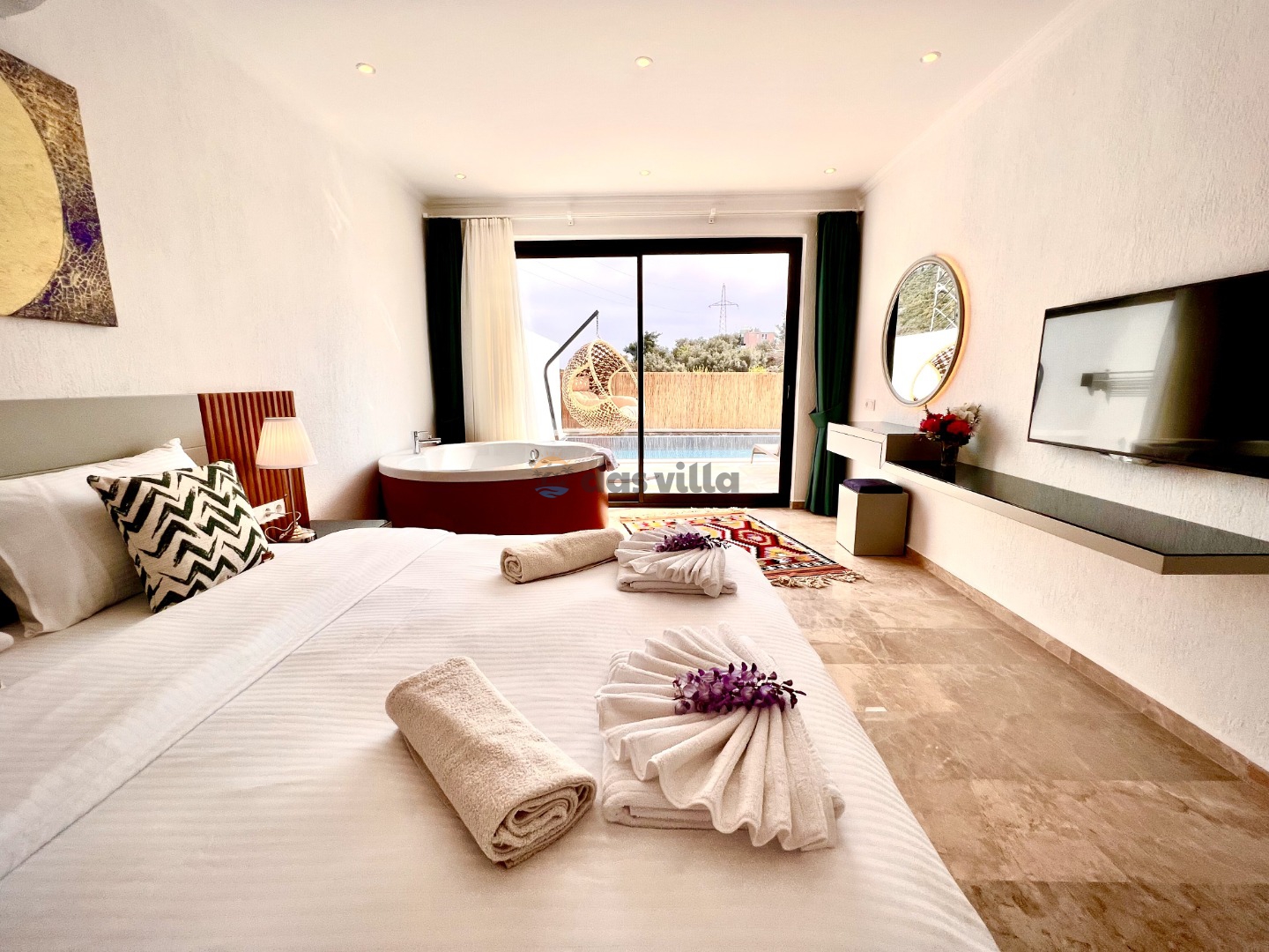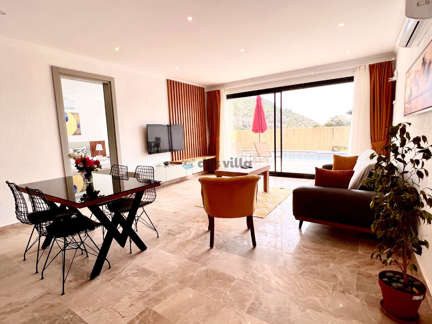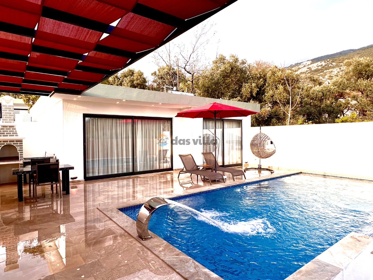Villa Gala Mini is a 1 bedroom 2 person capacity conservative rental villa in Kalkan Islamlar area. Our villa, which is surrounded by nature, can be an ideal choice for nuclear families and honeymoon couples. Our villa, which is far from the noise and crowds of the city, offers you a peaceful holiday. Our villa, which is designed with full equipment and fully furnished, has a sheltered pool terrace, which makes it the choice of our conservative families, and there is table tennis in our villa as an activity. You will have the opportunity to get rid of the tiredness of the whole year in our villa with its private pool and jacuzzi.