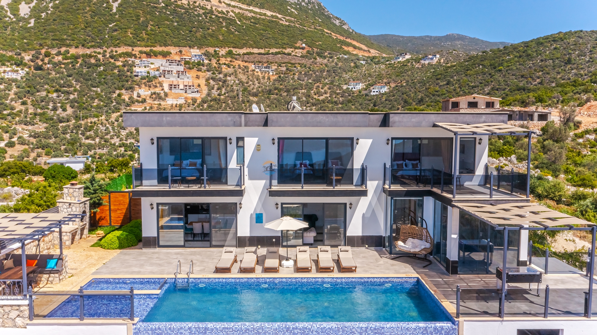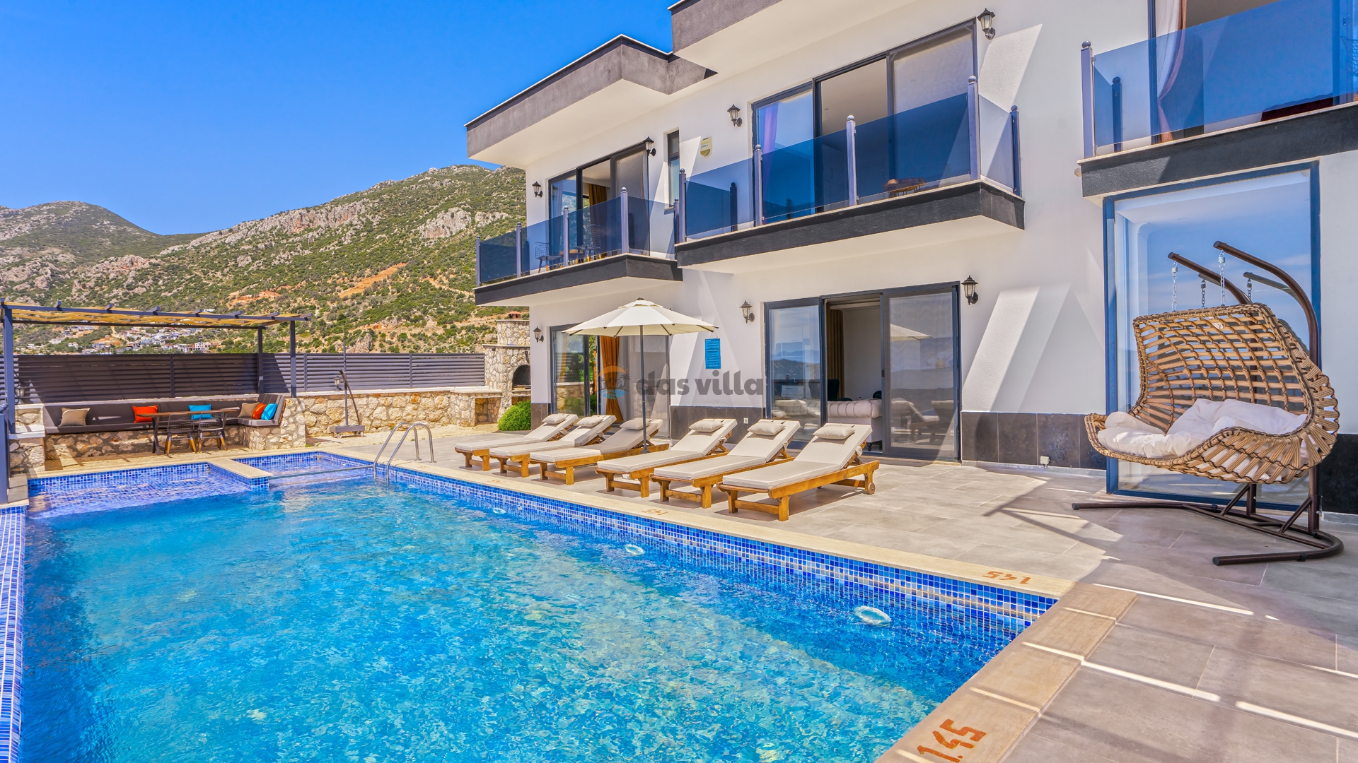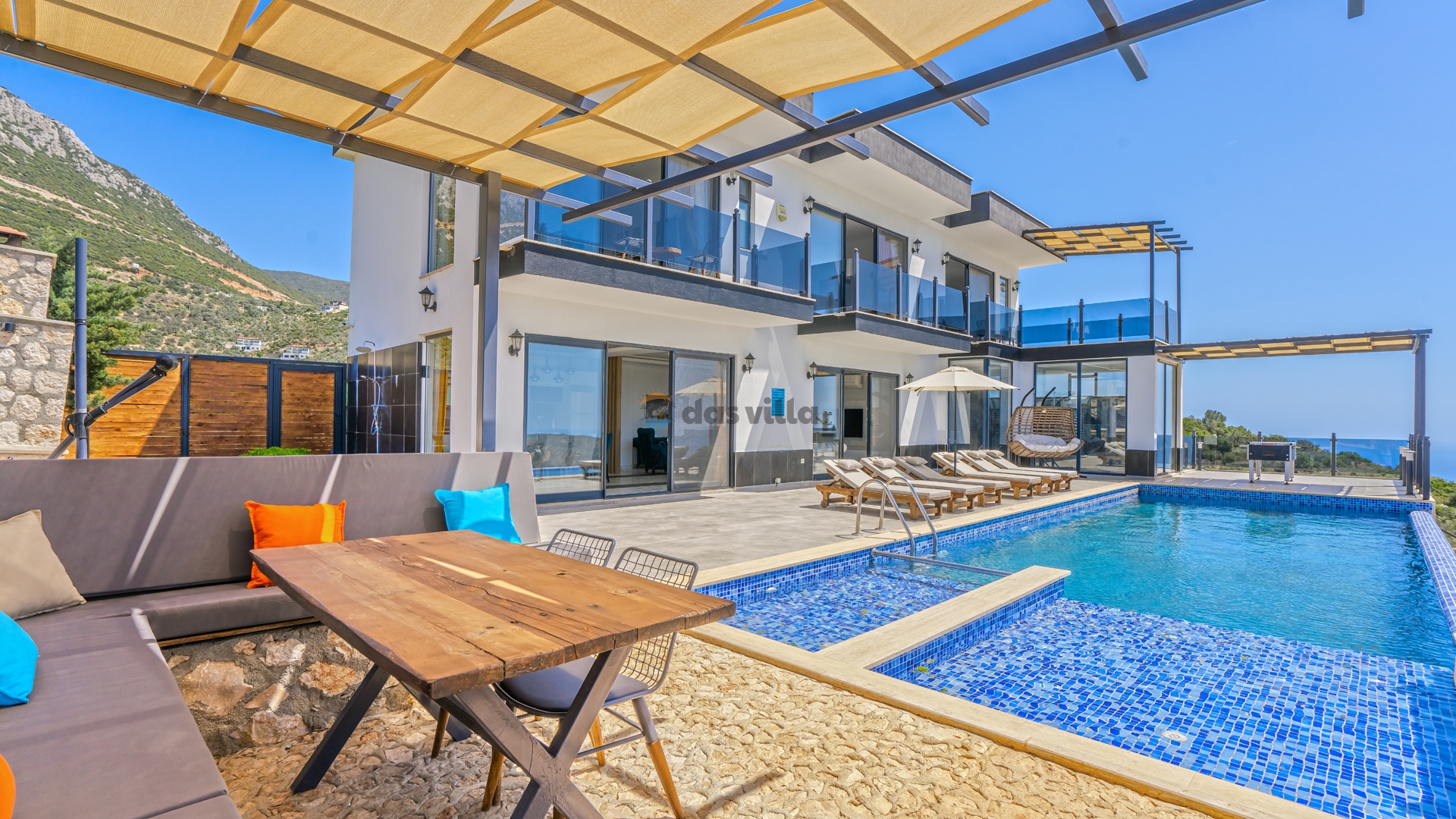 Villa Güneş 1; It is a 3-bedroom villa with a capacity of 6 people located in the Kalkan Kördere region. Our luxury rental villa, which is positioned overlooking the magnificent Kalkan sea view, offers a pleasant holiday opportunity. Our villa, which is quite suitable for large families and groups of friends, is among our most preferred options due to its short distance to the center. Our luxury rental villa with a garden has a large grass garden where you can spend time with your children.