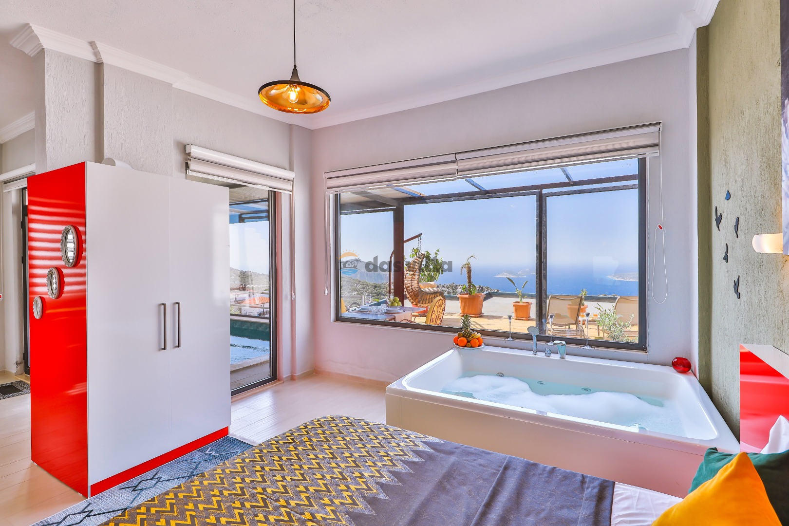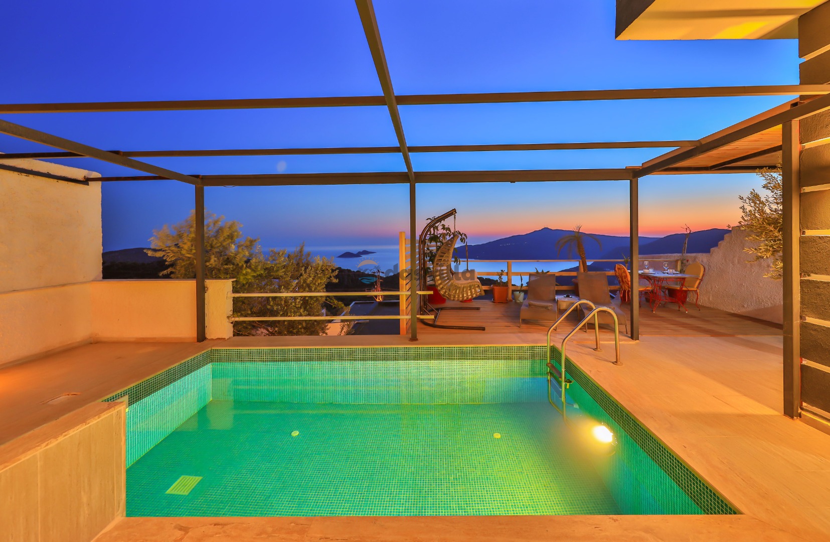 Villa Gusto 3 is located in the Kördere region of Kalkan. It is a private villa with 1 bedroom and a capacity of 2 people. Our villa has a magnificent sea view, and thanks to its meticulous luxury decoration and modern design, you will have enjoyable days and you, our valued customers, will never want your holiday to end. The pool and garden of our villa are sheltered and allow you to enjoy the pool comfortably. In addition, thanks to the jacuzzi and indoor heated pool in our villa, you will have the opportunity to relax your soul and body while having a pleasant holiday.