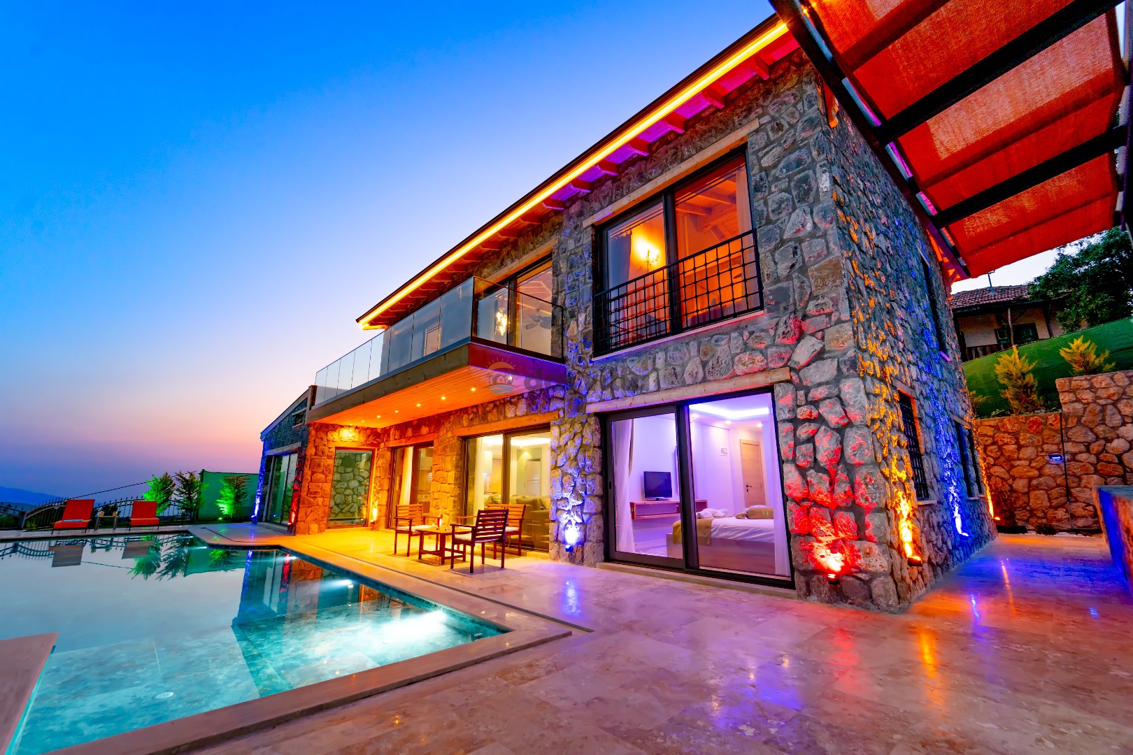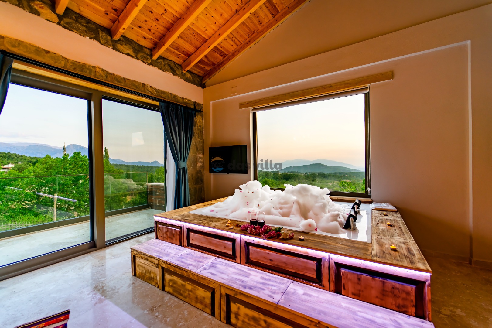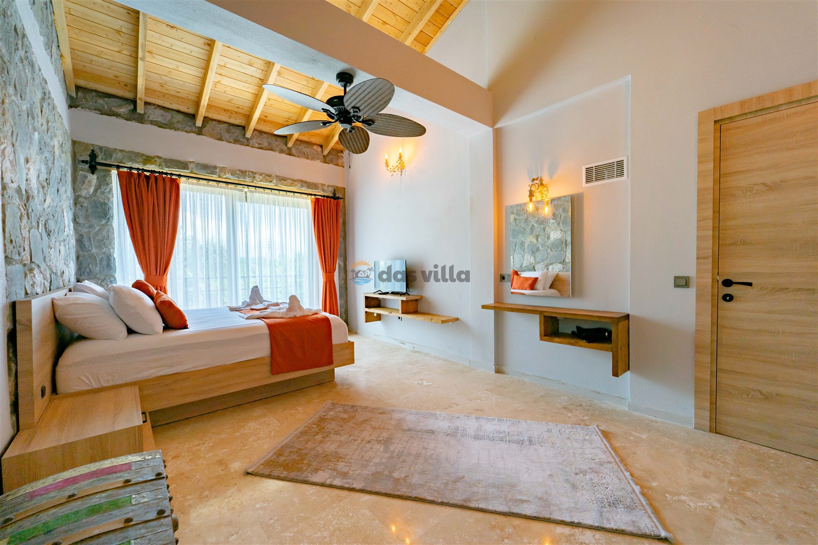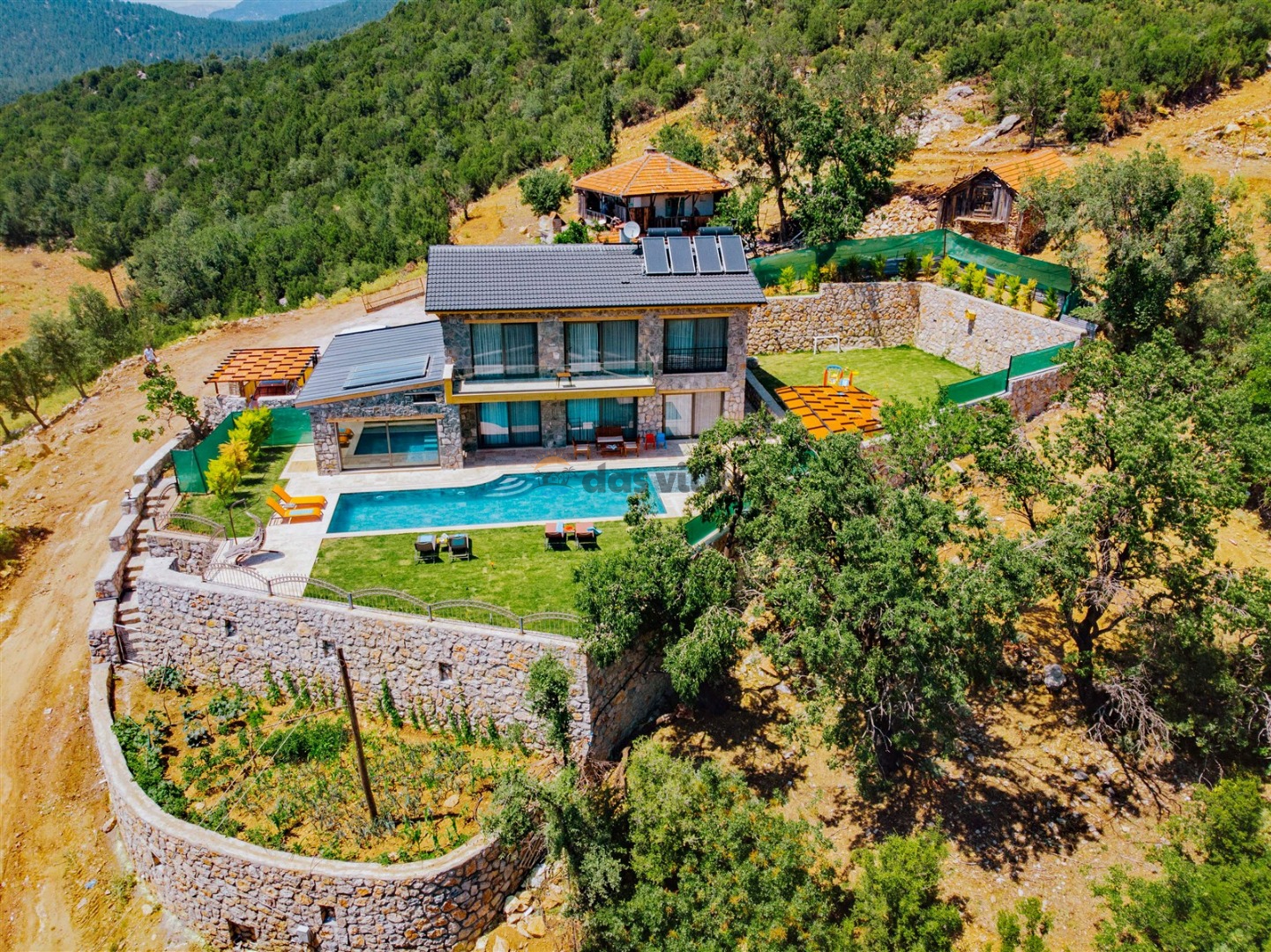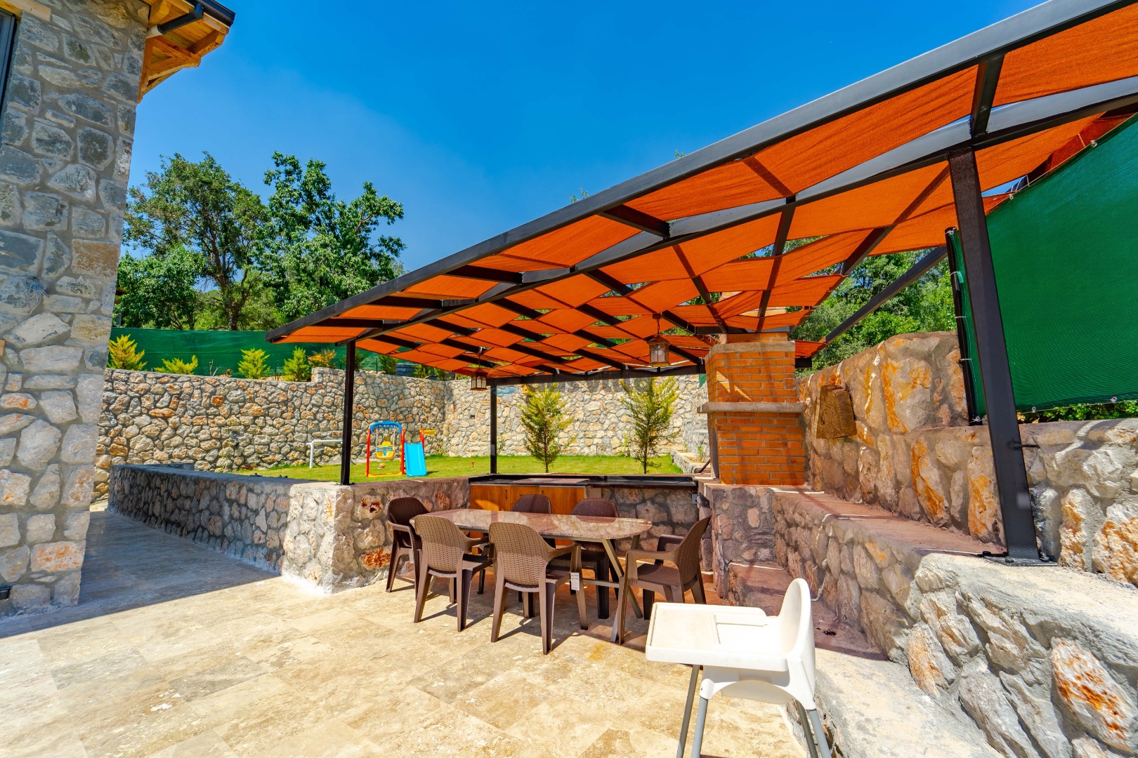 Villa Harika Seydikemer is one of our 4-bedroom villas with a capacity of 6 people, which is ideal for large families and groups of friends in Fethiye Seydikemer Bayır area. It has a private swimming pool, children's playground, barbecue and swing in its large garden, and an indoor pool, sauna, Turkish bath and jacuzzi. Due to the heating in its indoor pool, Villa Harika is also an ideal option for a winter holiday. Note: The indoor pool heating fee in our villa is an extra 700 TL per day. Guests who want pool heating must notify 2 days before the check-in date.