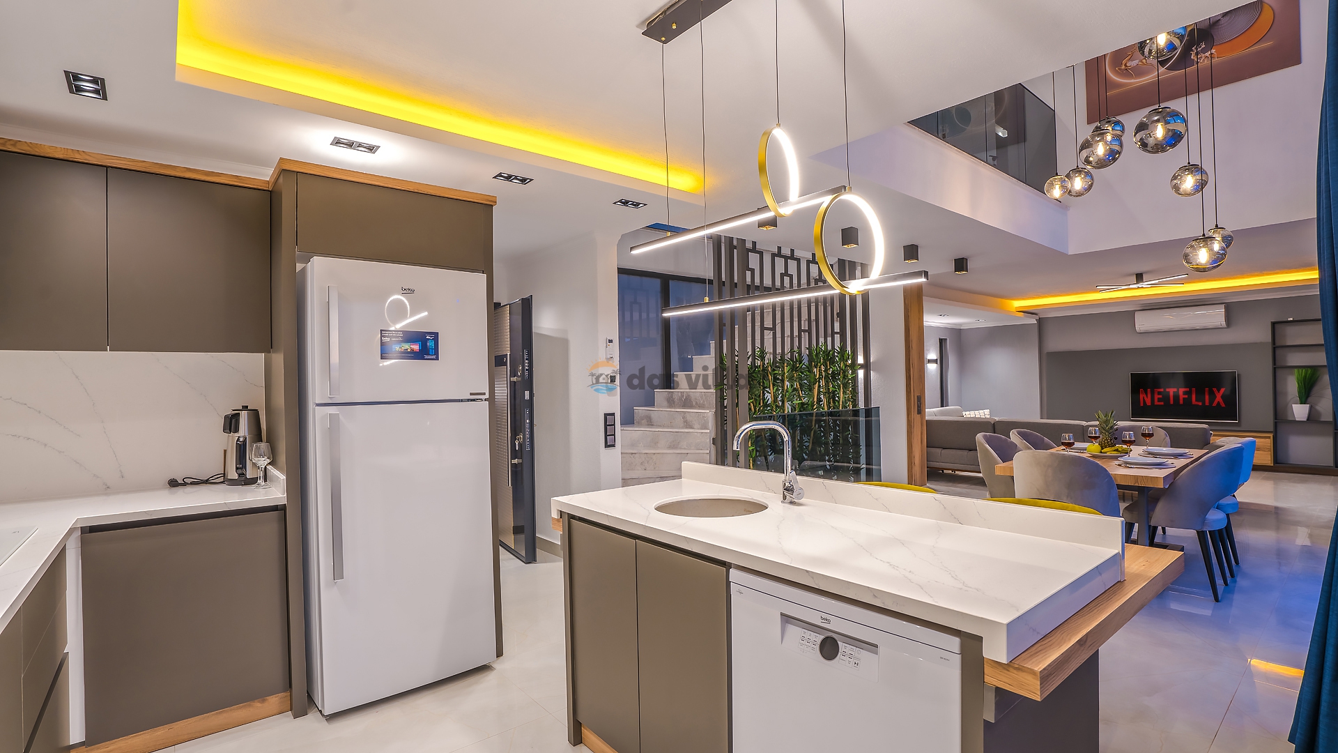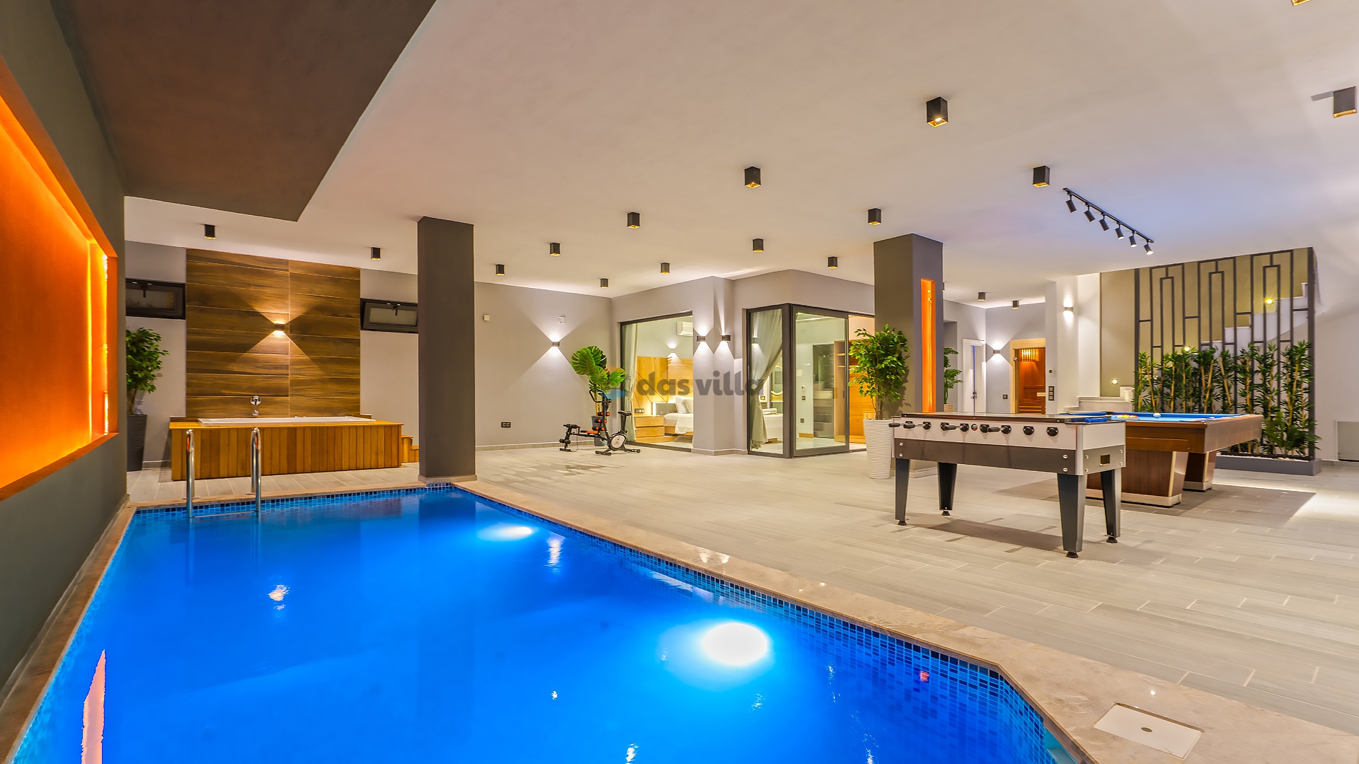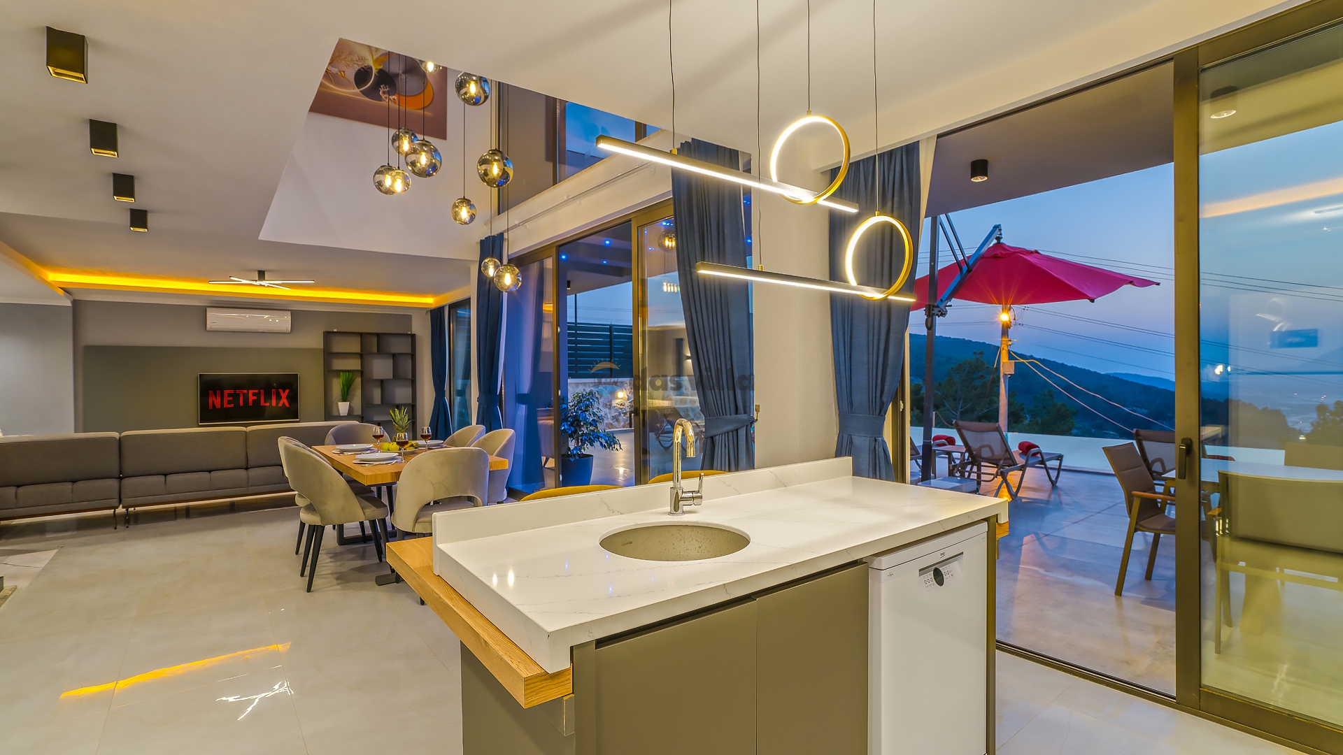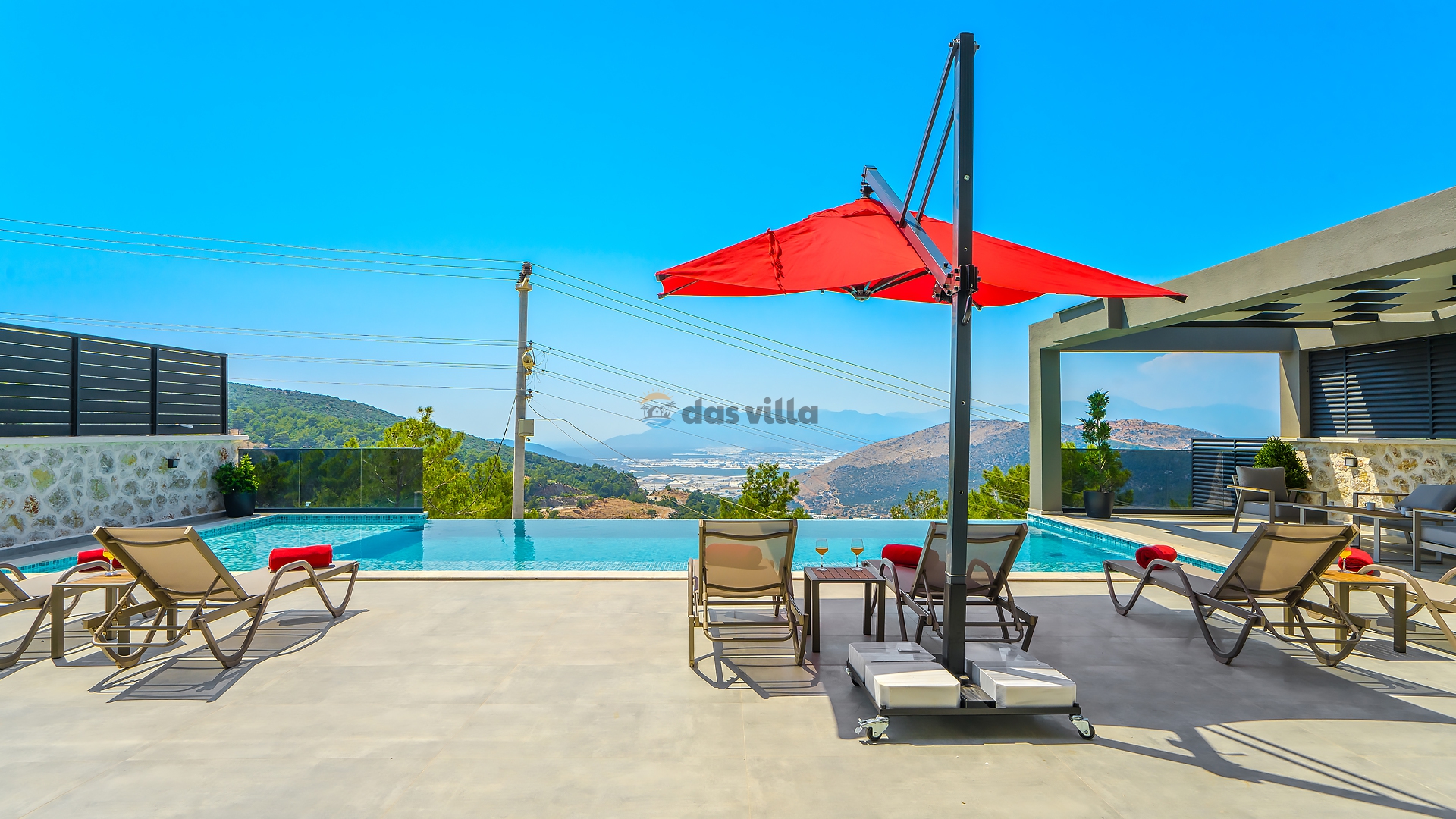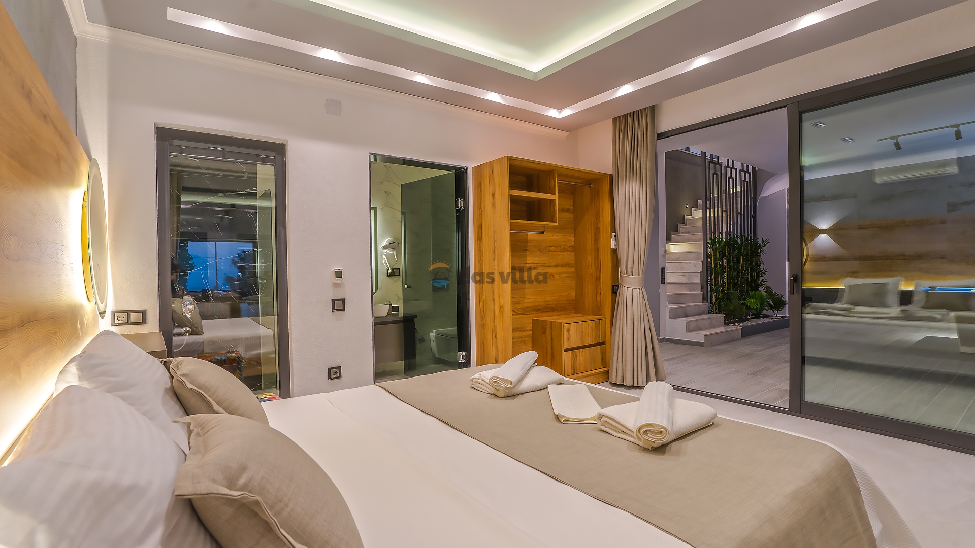 Villa Hedef is located in the Akbel area of Kalkan and has 3 bedrooms with a capacity of 6 people. Our luxuriously designed villa has an indoor pool, sauna, gym, billiards, table football, cinema room, Turkish bath. You can stay with your nuclear family and groups of friends in our villa with a magnificent view of nature, and you can relieve the tiredness of the year while sipping your tea and coffee. Our villa, where you can collect unforgettable holiday memories with your loved ones, awaits you, our valued guests.