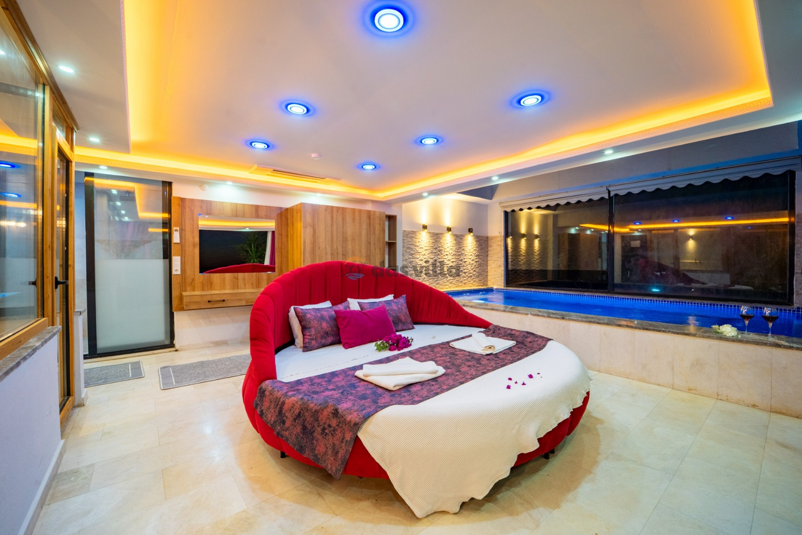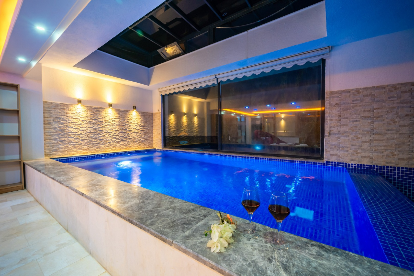 Note: If the indoor heated pool with dimensions of Width: 2.90 Length: 5.10 Depth: 1.10 is requested, an extra 1,000 TL per day must be paid.