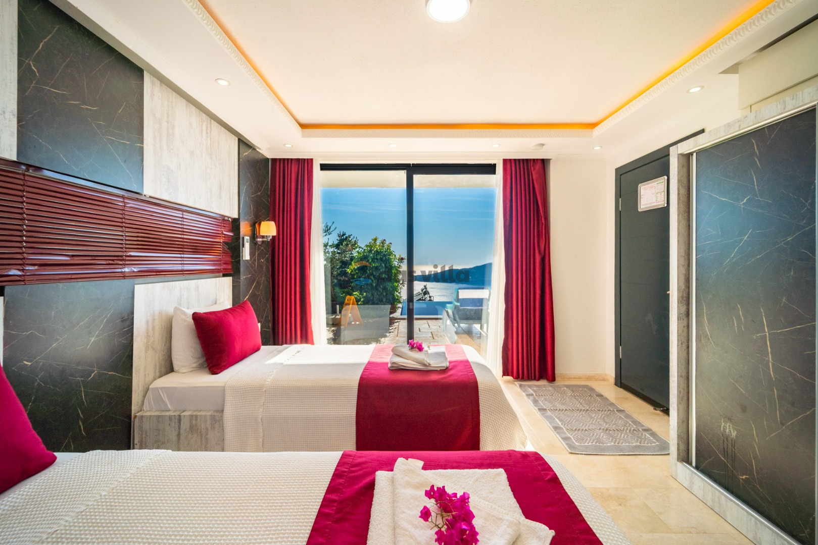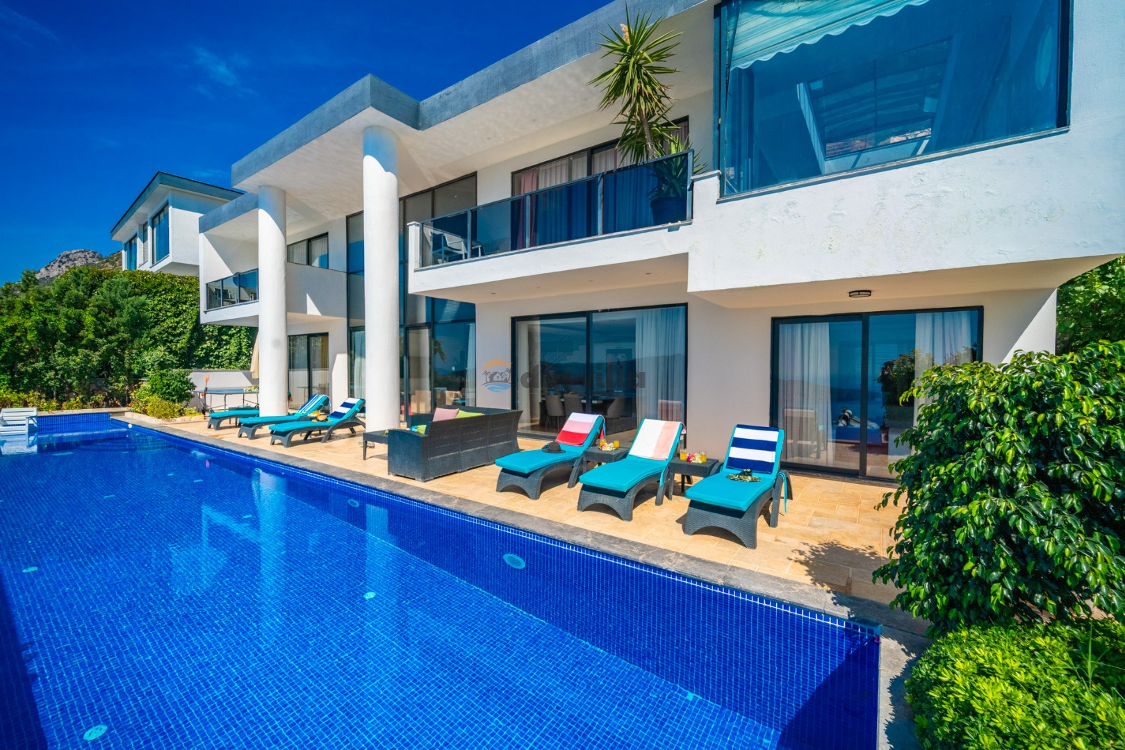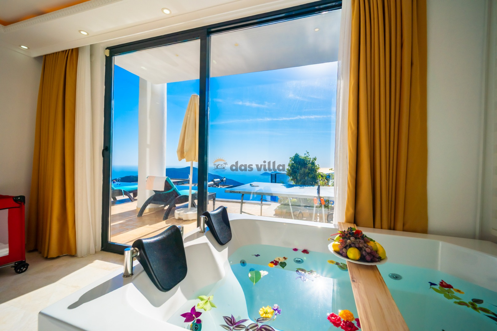 Villa Hyperion is a 4-bedroom holiday villa with a capacity of 8 people, located close to the sea in Kalkan Kördere. With a magnificent sea view from every room, you can relieve all the tiredness of the day in our luxuriously designed villa with Turkish bath, sauna and indoor heated pool with jacuzzi. Our villa with a sheltered pool garden floor is an ideal choice for families and groups of friends who care about their privacy. There is a playground for children and table football and table tennis for adults so that you can have a pleasant time in the villa. Villa Hyperion is waiting to welcome you, our valued guests, for an unforgettable holiday.