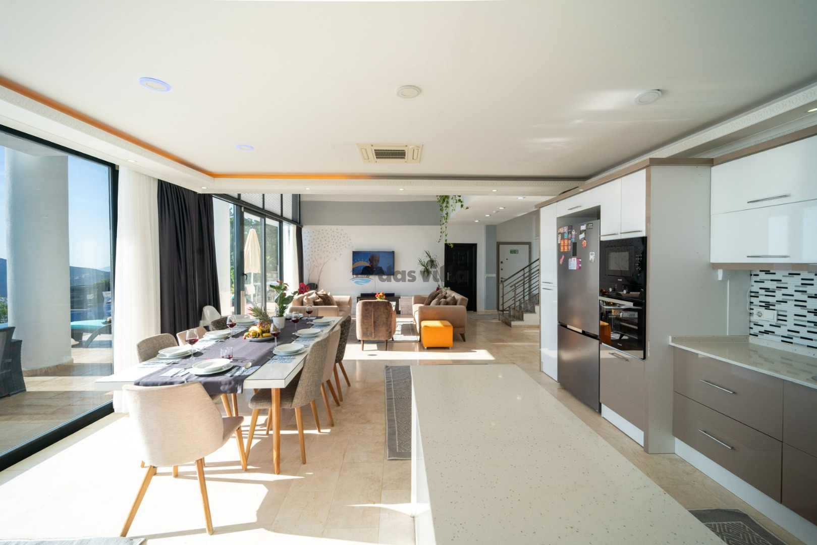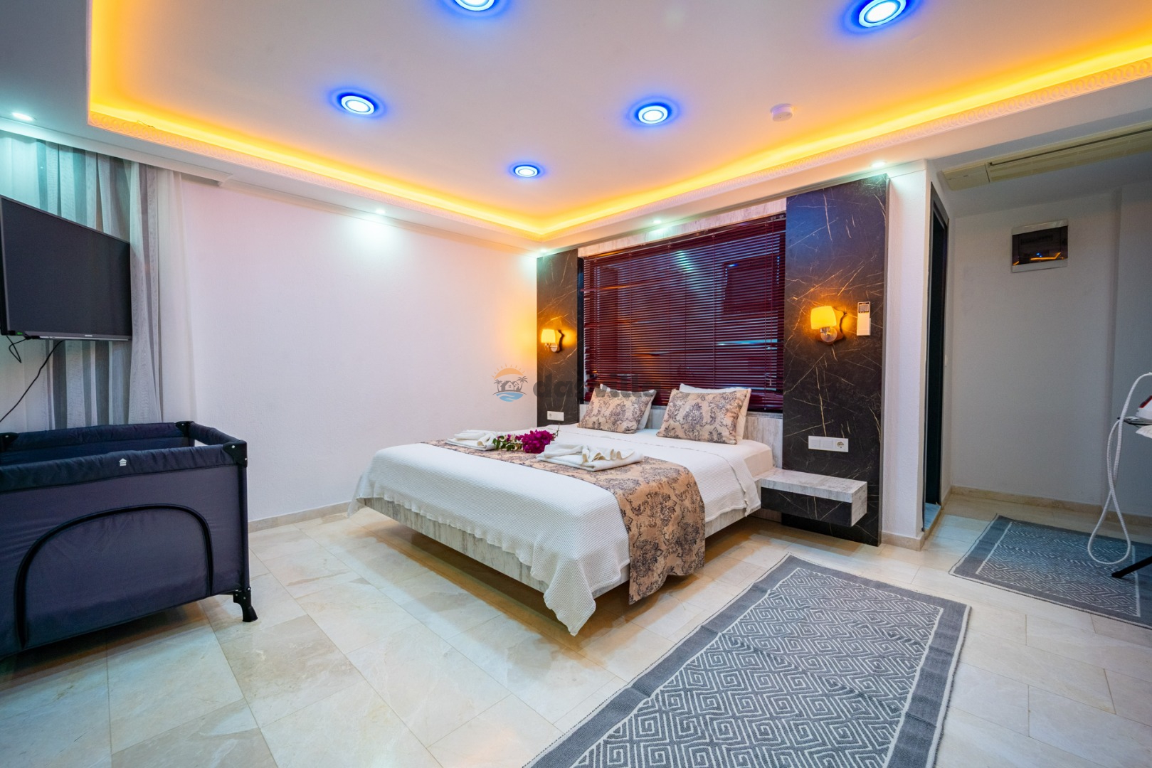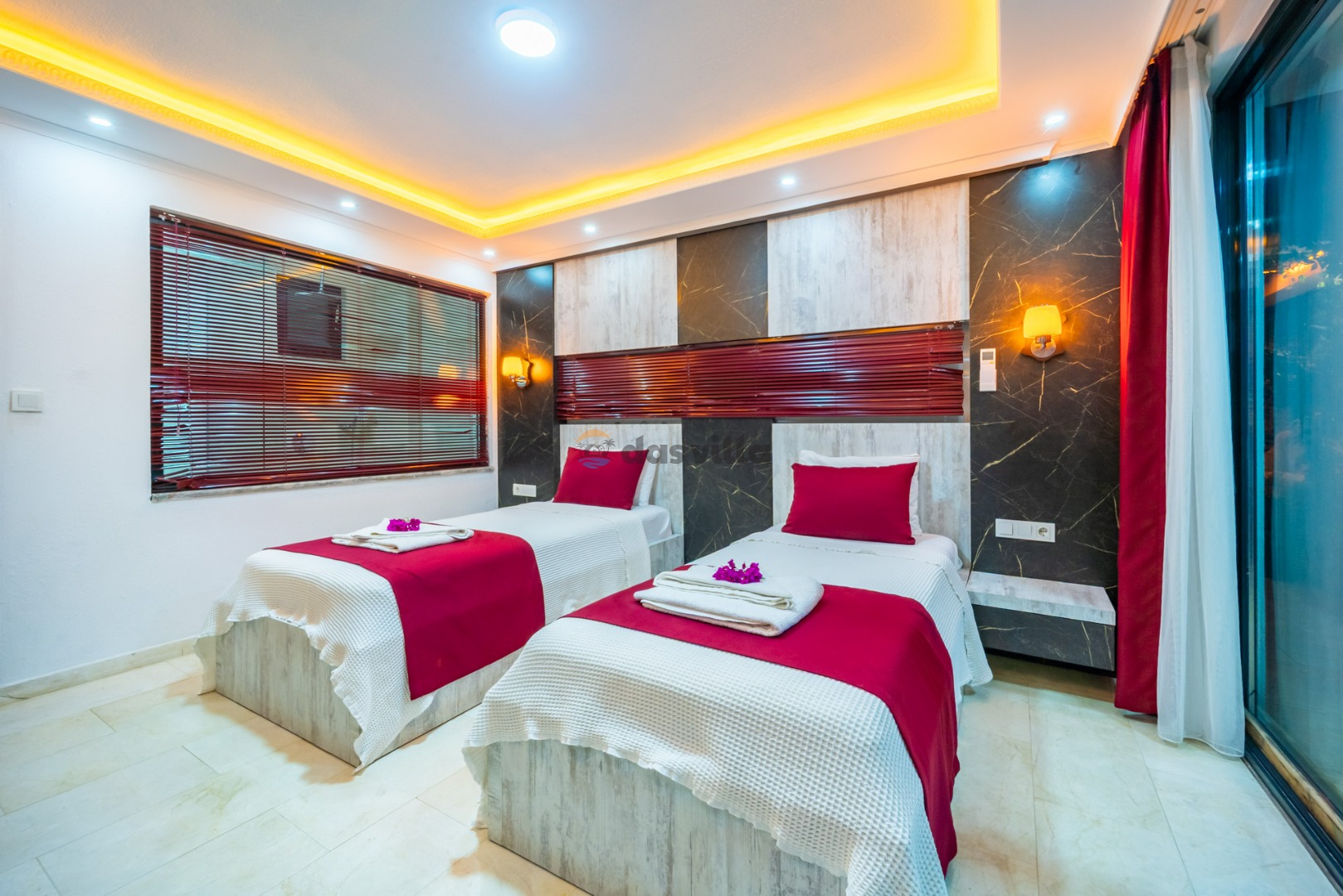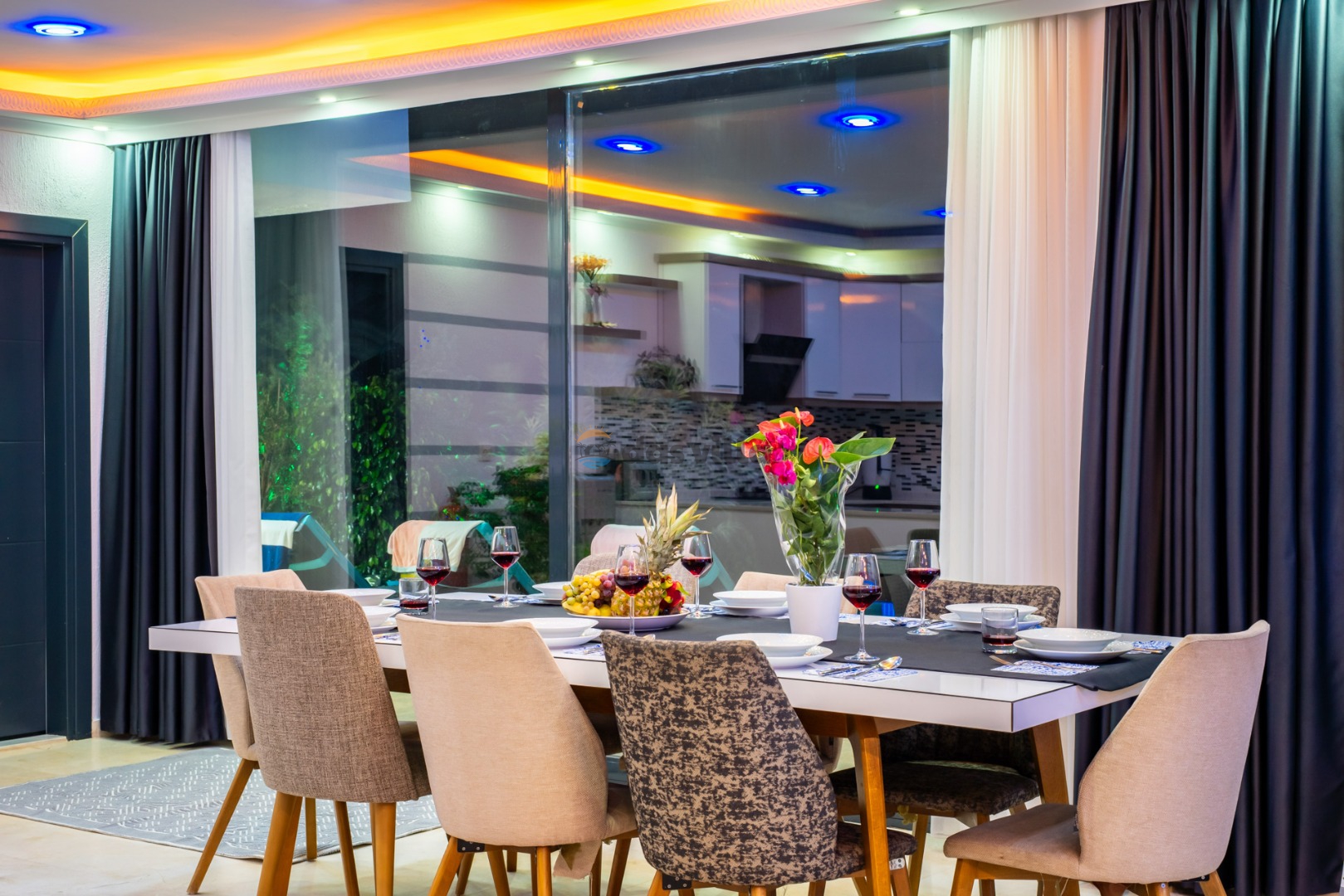 Villa Hyperion is a 4-bedroom holiday villa with a capacity of 8 people, located close to the sea in Kalkan Kördere. With a magnificent sea view from every room, you can relieve all the tiredness of the day in our luxuriously designed villa with Turkish bath, sauna and indoor heated pool with jacuzzi. Our villa with a sheltered pool garden floor is an ideal choice for families and groups of friends who care about their privacy. There is a playground for children and table football and table tennis for adults so that you can have a pleasant time in the villa. Villa Hyperion is waiting to welcome you, our valued guests, for an unforgettable holiday.