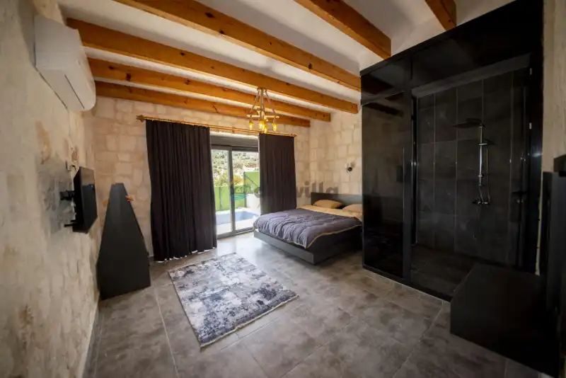 Villa İlay is located in the Demre region. It is a modern villa with 3 bedrooms and a capacity of 7 people. Our villa, which is surrounded by nature, has a panoramic view of nature and the sea from a distance. Thanks to our villa's modern kitchen, complete equipment and comfortable items, you will feel at home and have the opportunity to have a comfortable holiday. The sheltered design of our villa's private swimming pool is especially beneficial for the satisfaction of our conservative families. We are waiting for you, our valued guests, in our modern and carefully designed villa, which is quite suitable for your family or groups of friends.