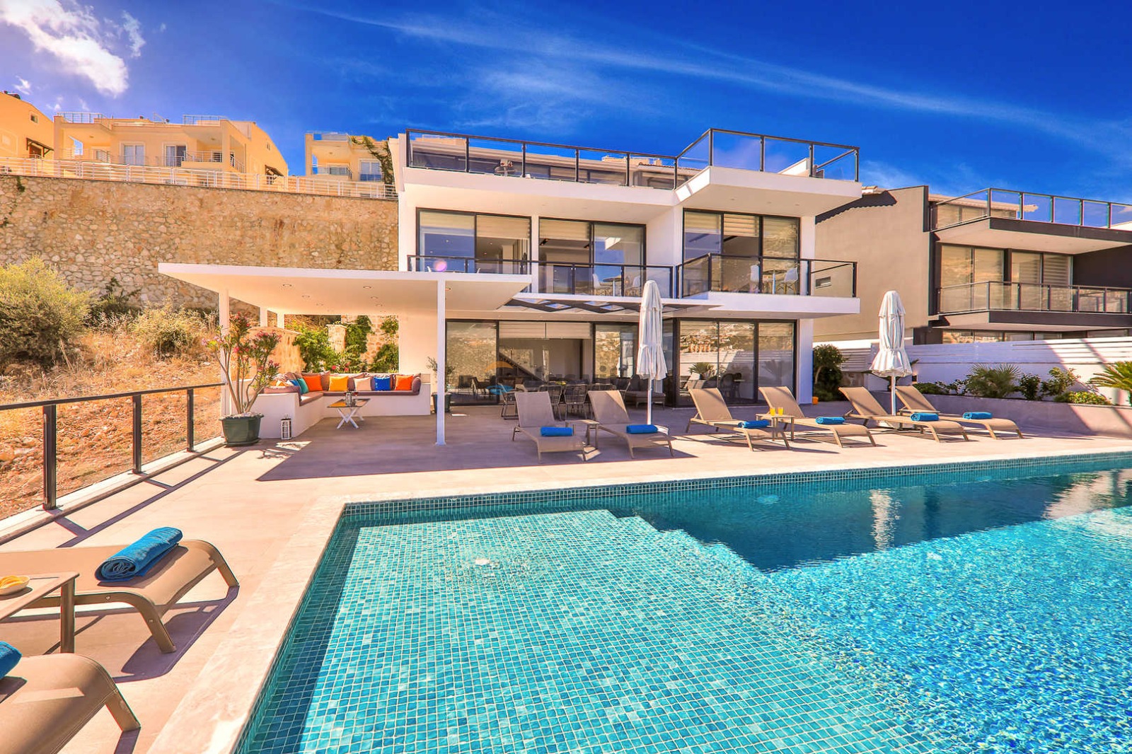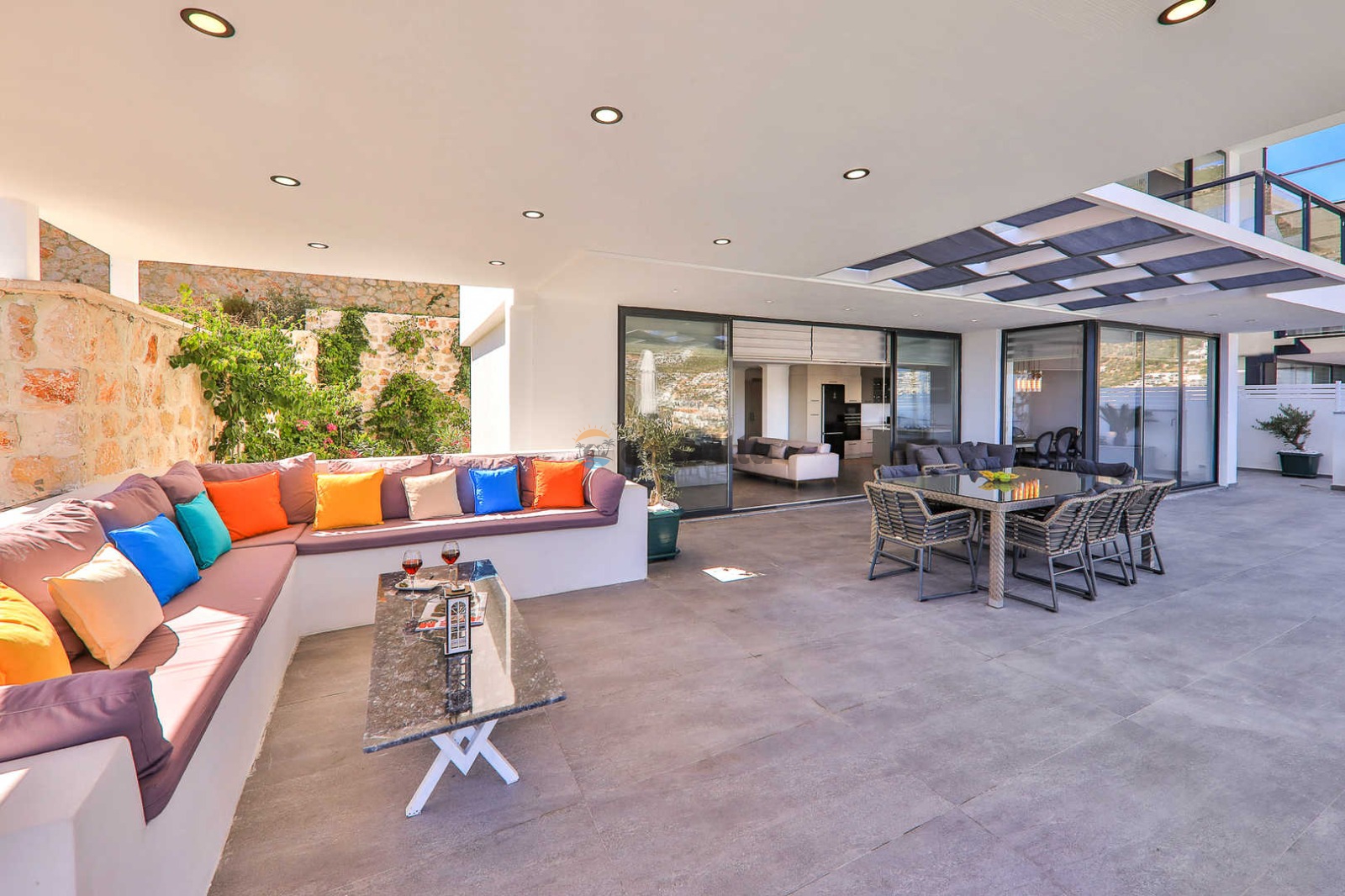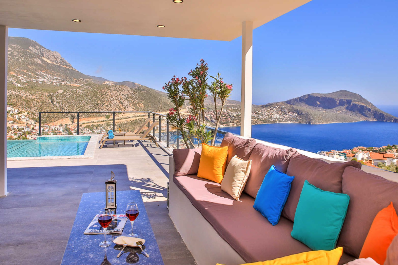 Villa Imperial is a luxury villa with a capacity of 10 people located in Kalkan Ortaalan region. Our holiday villa, which is eye-catching with its magnificent view and design, makes your holiday easier with its central distance and useful areas. A holiday opportunity where you will collect unforgettable memories awaits you with the large capacity and spacious design of our villa. In this magnificent villa with a view, there is a gym where you can do your sports with a view, an indoor and an outdoor pool where you can relieve the tiredness of the day.