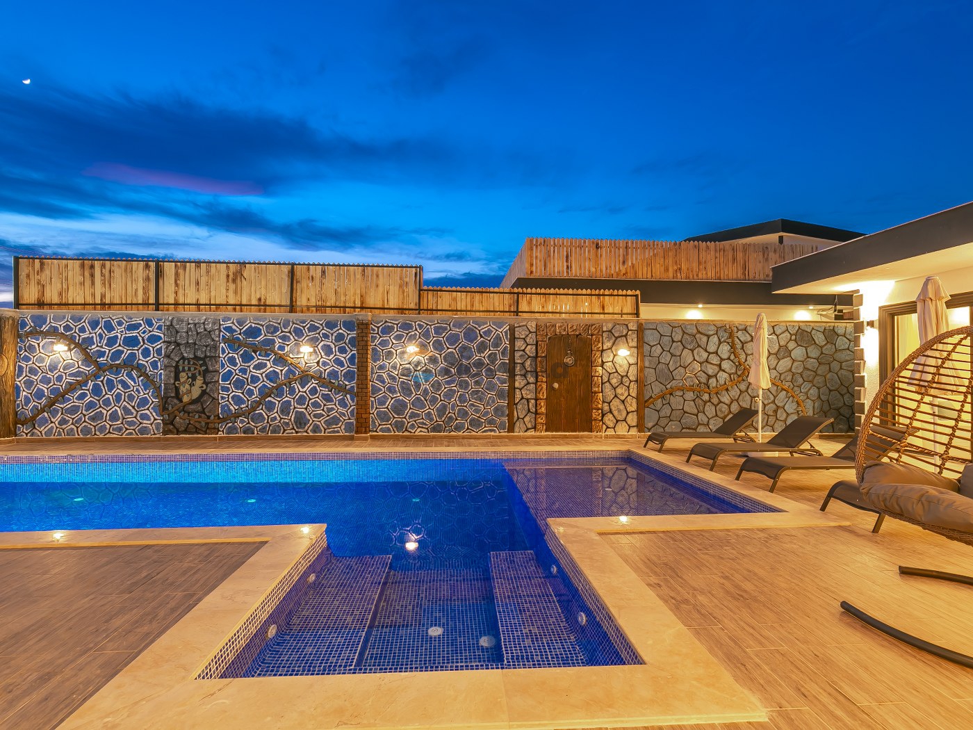 Villa İnci İncir is a 2-bedroom villa with a capacity of 4 people located in the Kalkan Çavdır region. Our luxury holiday villa Villa İnci İncir, which is surrounded by nature, is a very suitable option for families and groups of friends. Our luxury villa, which also has a jacuzzi in the bedroom where you can relieve the tiredness of the day, opens its doors to its guests to offer a pleasant holiday opportunity.