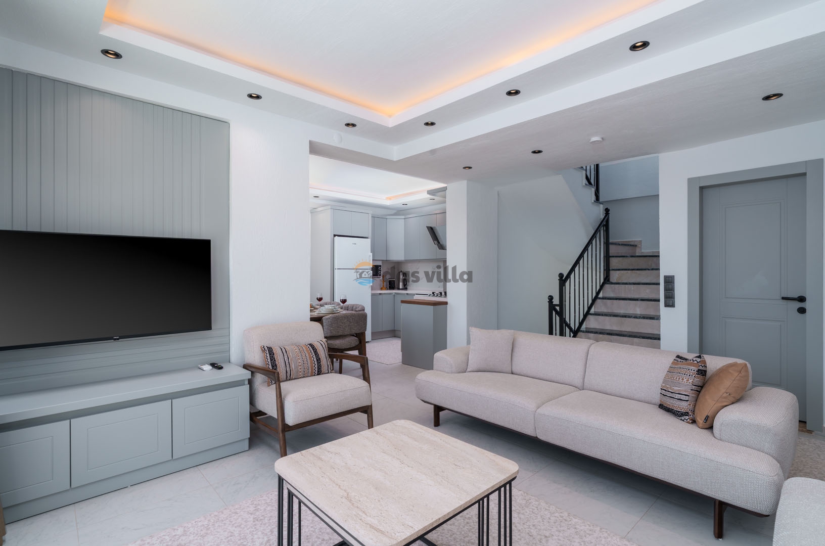 10.171 ₺Villa Laren Duo is a 3-bedroom villa with a capacity of 6 people located in the Kızıltaş area of Kalkan. Our luxury holiday rental villa Villa Laren Duo, surrounded by nature and with a magnificent sea view, is a very suitable option for large families and large groups of friends. There is also a jacuzzi in the bedroom where you can relieve the tiredness of the day. Our luxury rental villa, which is very close to the city center, opens its doors to its guests to offer a pleasant holiday opportunity.
