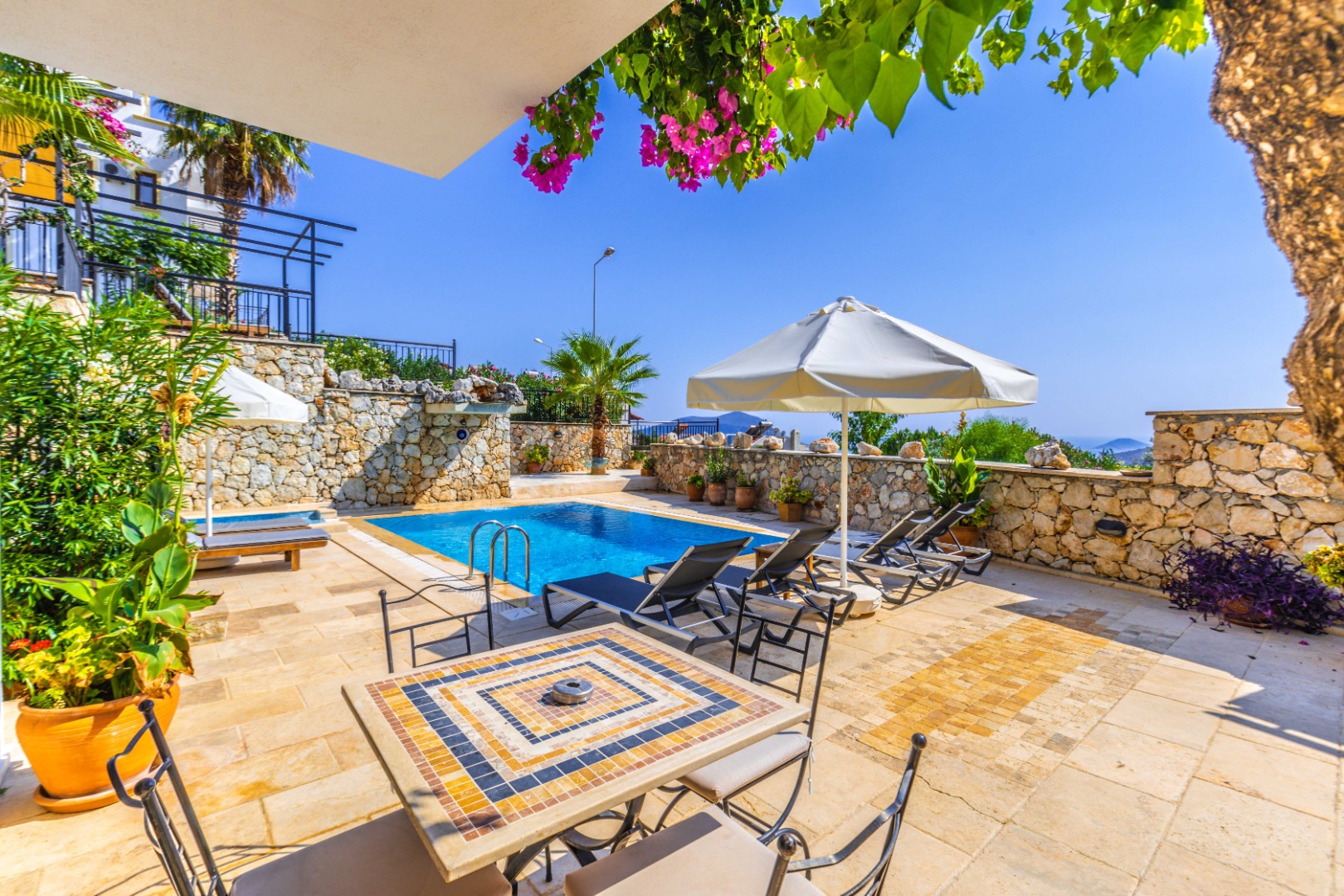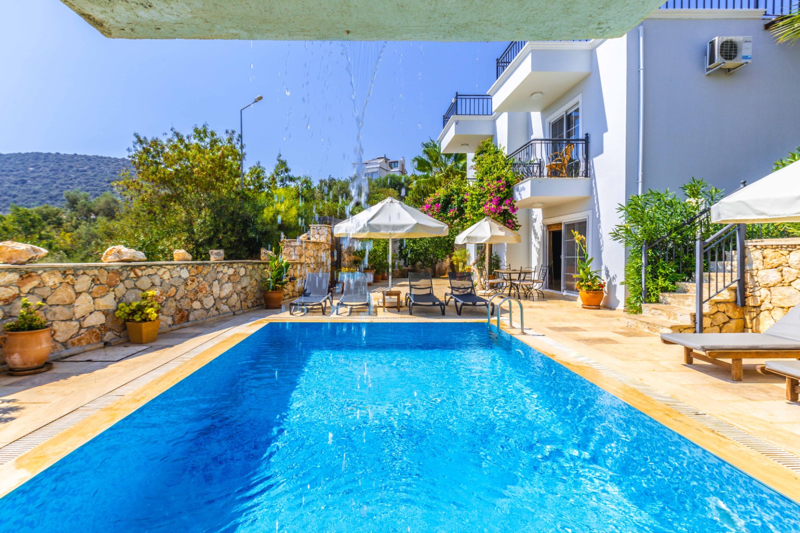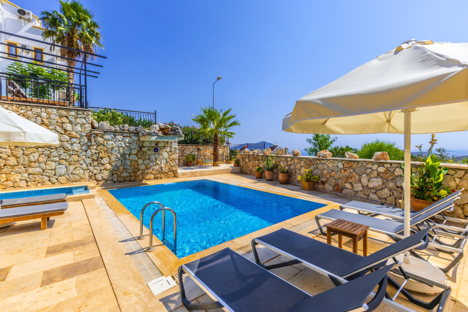 7.600 ₺Villa Louise is a magnificent sea view rental holiday villa with 4 bedrooms and a capacity of 8 people located in the Kızıltaş region of Kalkan. The villa is in the category of villas with sea view and villas close to the sea. It offers a comfortable and privileged holiday opportunity with its unique nature view. This villa, which appeals to large families or groups of friends, has full kitchen equipment and is decorated with modern and comfortable items and all the details are considered. The garden area and pool terrace are spacious. You can crown this pleasure while having a barbecue while enjoying the unique sunset.