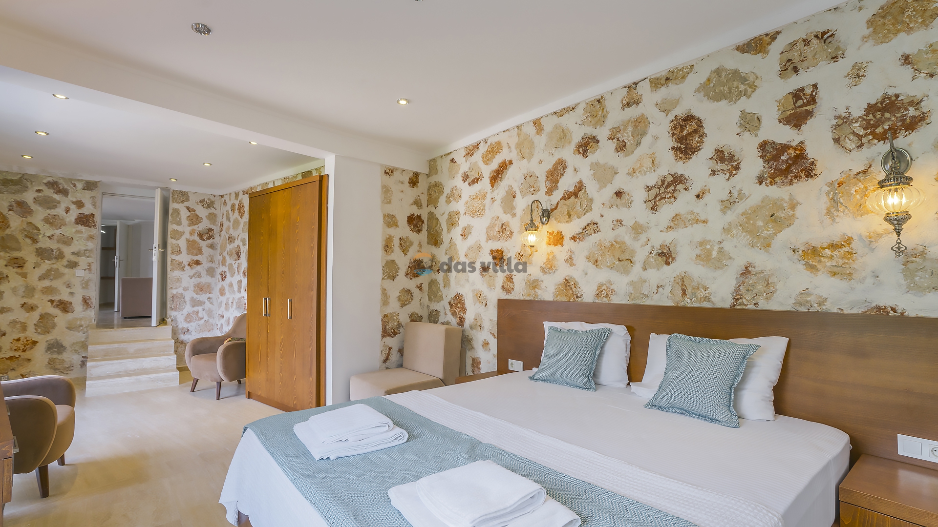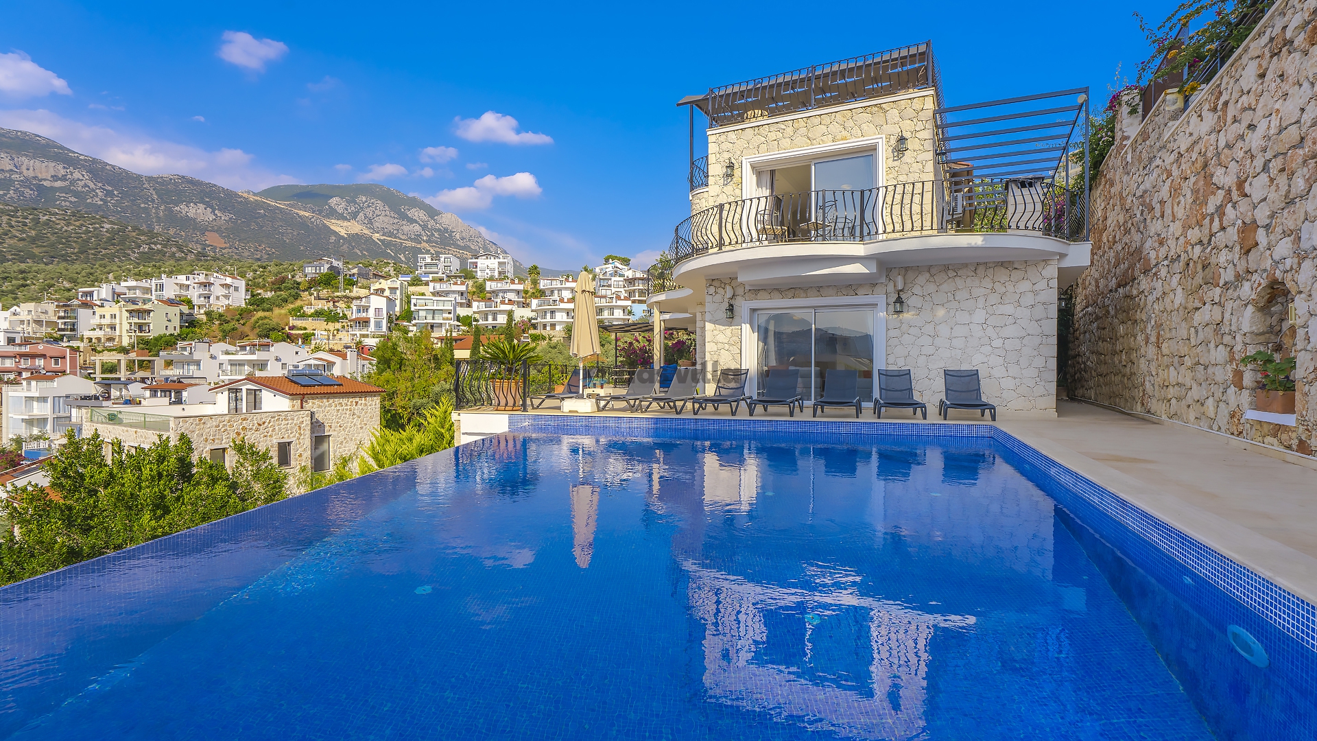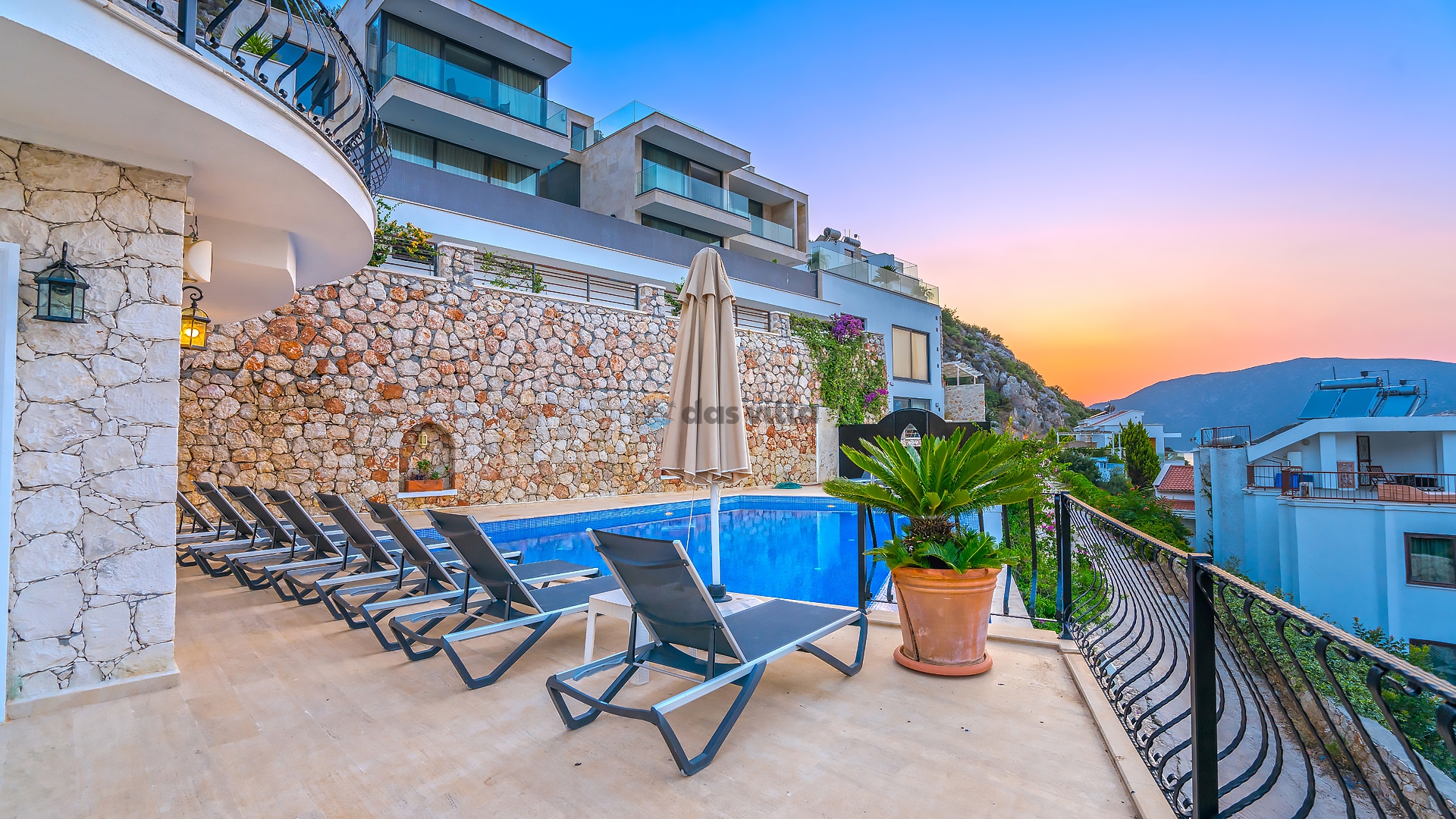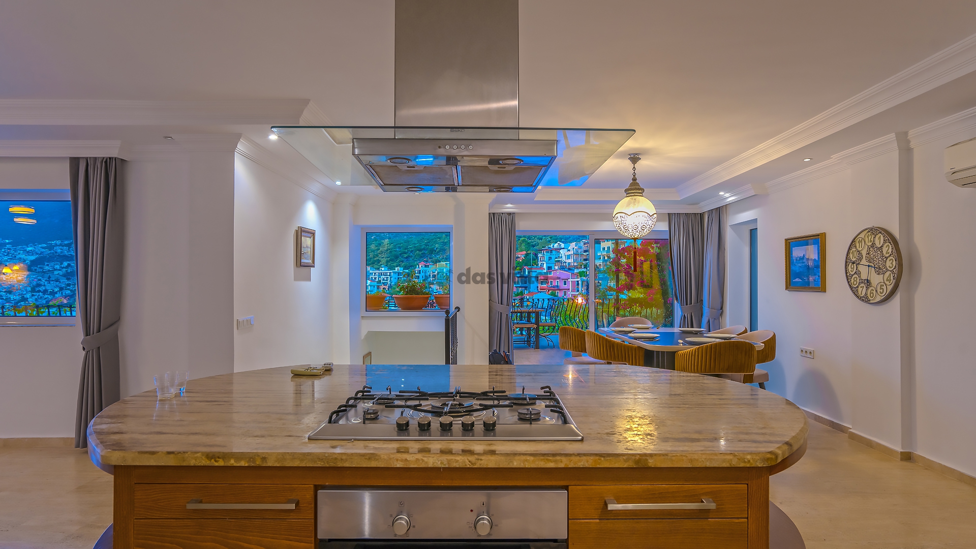 Villa Mavna Özlem is a luxurious and modern villa located in the Kışla region of Kalkan. It has 5 bedrooms and a capacity of 10 people. Our villa has a magnificent sea and nature view, and thanks to its meticulous luxury decoration and modern design, you will have enjoyable days and you, our valued customers, will never want your holiday to end. Thanks to our villa's modern kitchen, complete equipment and comfortable items, you will feel at home and have the opportunity to have a comfortable holiday.