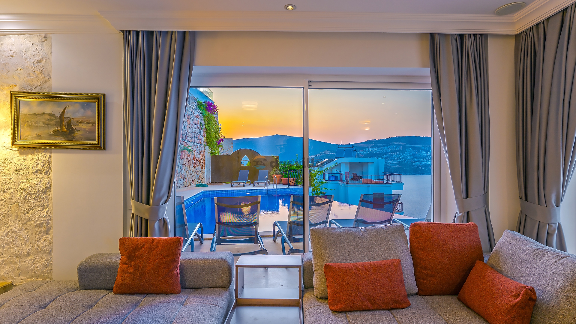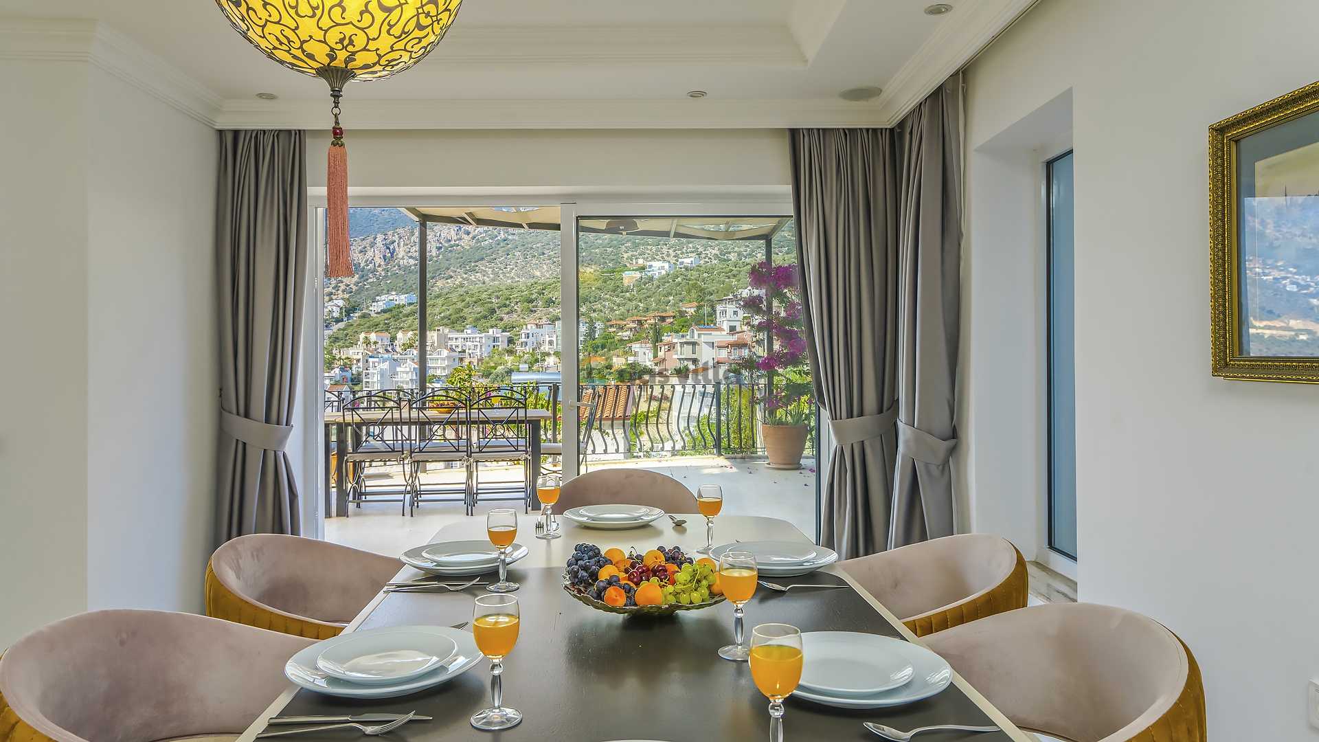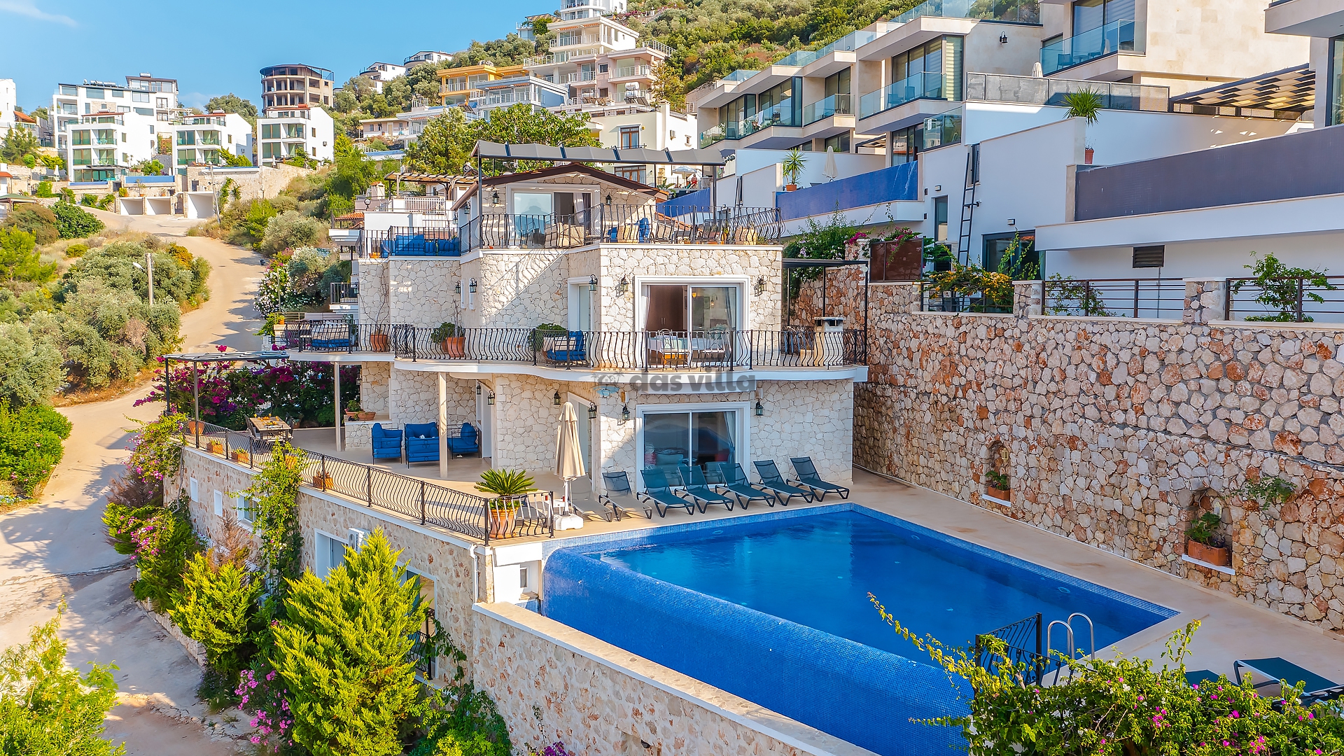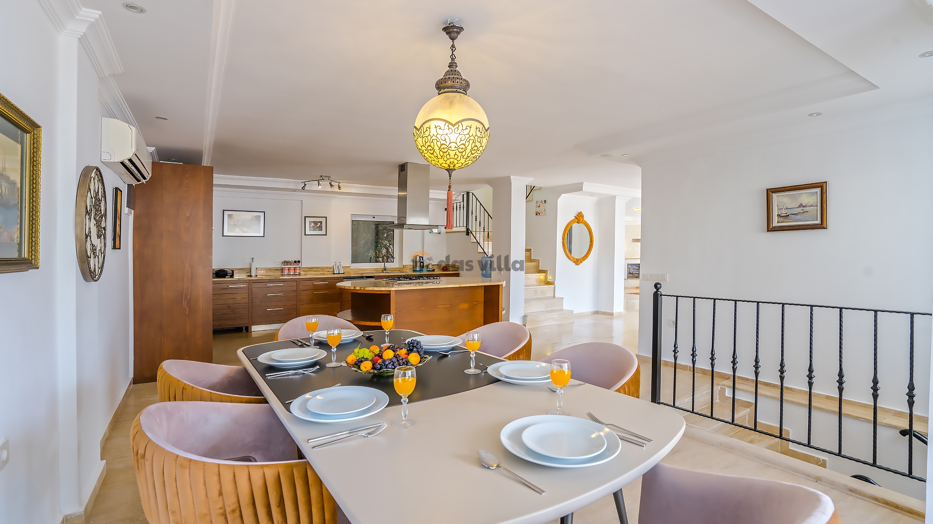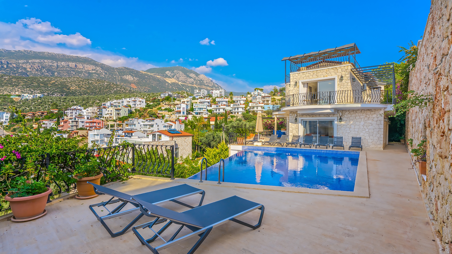Villa Mavna Özlem is a luxurious and modern villa located in the Kışla region of Kalkan. It has 5 bedrooms and a capacity of 10 people. Our villa has a magnificent sea and nature view, and thanks to its meticulous luxury decoration and modern design, you will have enjoyable days and you, our valued customers, will never want your holiday to end. Thanks to our villa's modern kitchen, complete equipment and comfortable items, you will feel at home and have the opportunity to have a comfortable holiday.