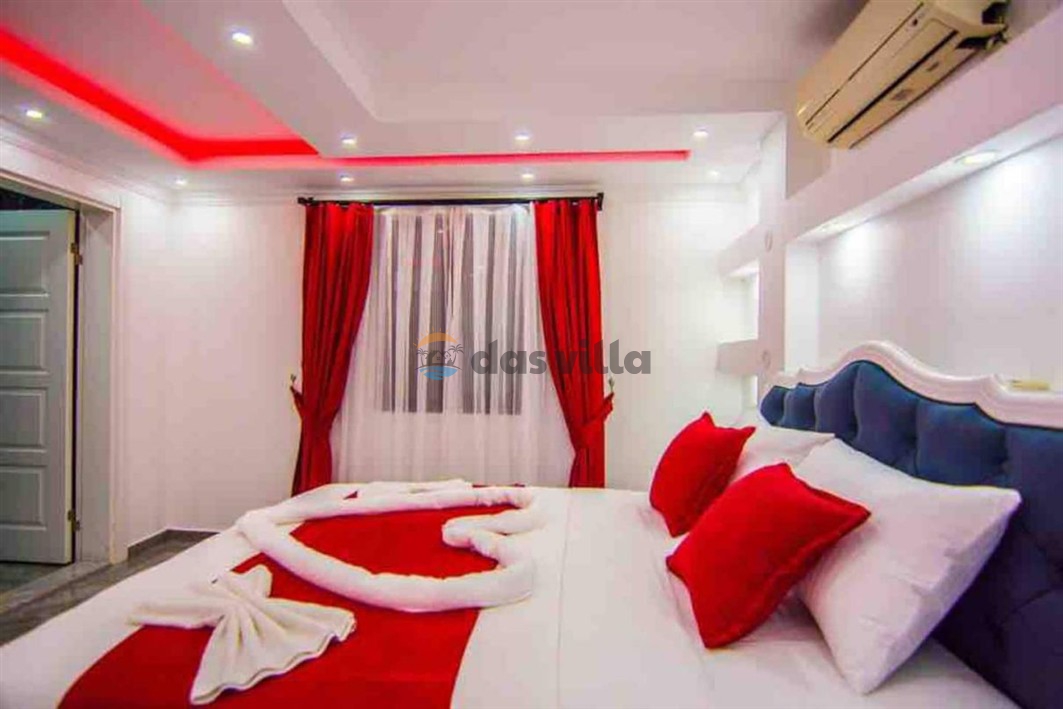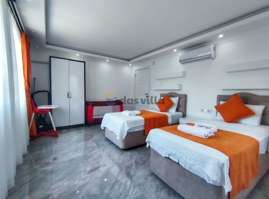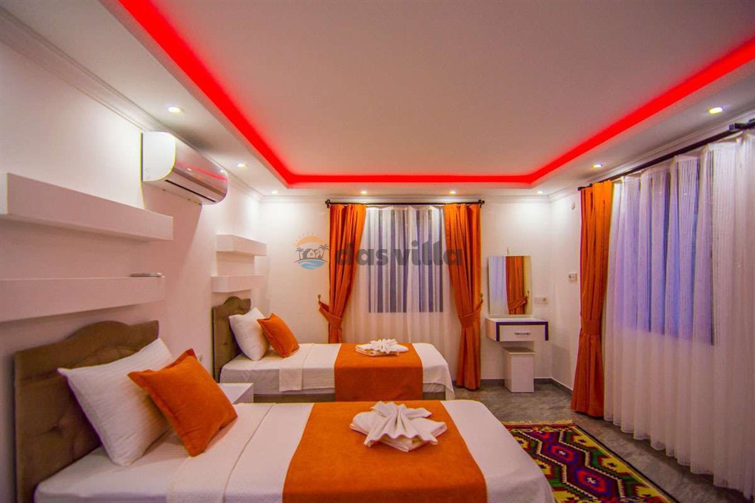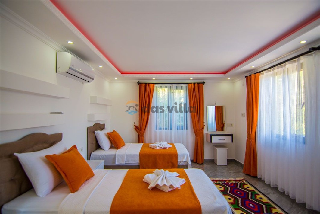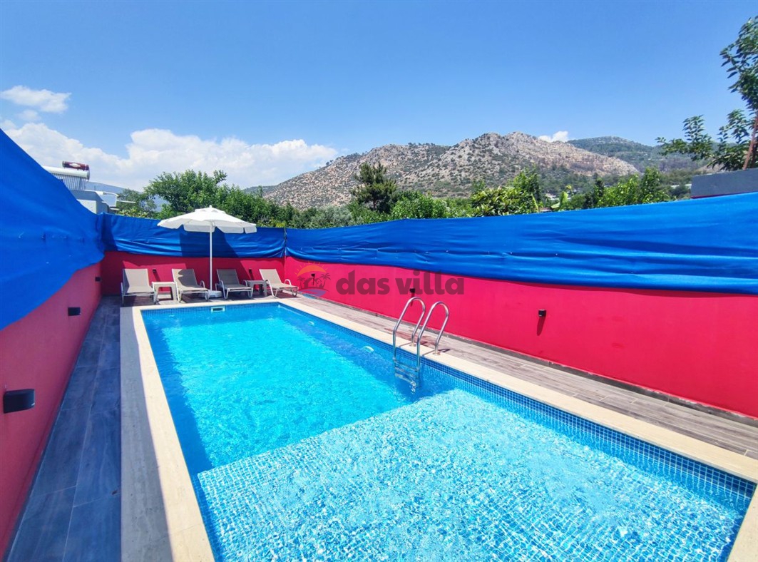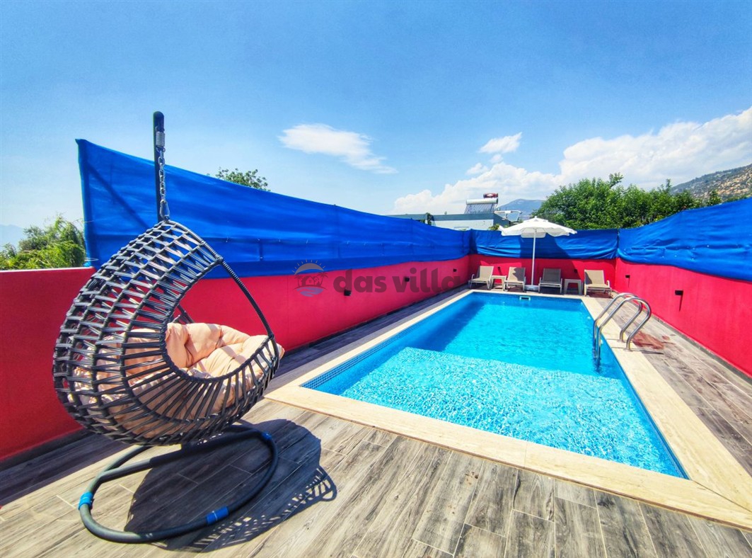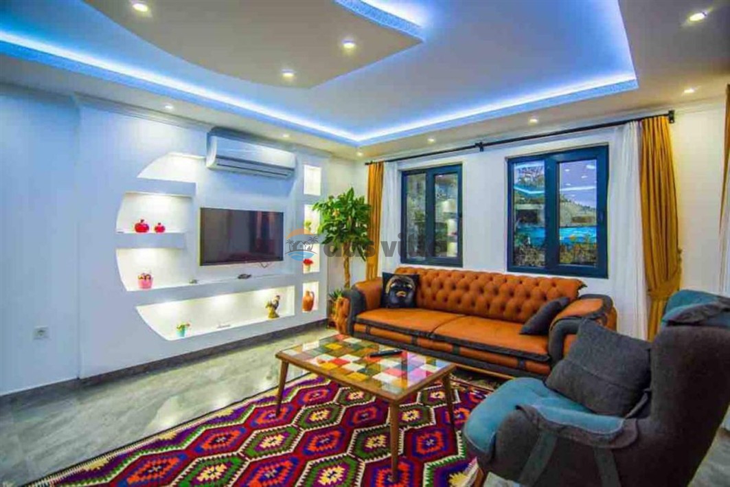 4.313 ₺Villa Meryem; It is a 2-bedroom villa with a capacity of 4 people located in the Kalkan Üzümlü region. The pool terrace of our rental villa, which is quite suitable for families and honeymoon couples, is completely sheltered and provides the opportunity to use the pool comfortably. Our rental villa, which has been designed with all your needs in mind, offers a pleasant holiday opportunity. Our villa, which has a comfortable and useful living room and kitchen, has a jacuzzi in the suite bedroom bathroom. Rental Villa Meryem opens its doors to its guests for an unforgettable holiday opportunity.