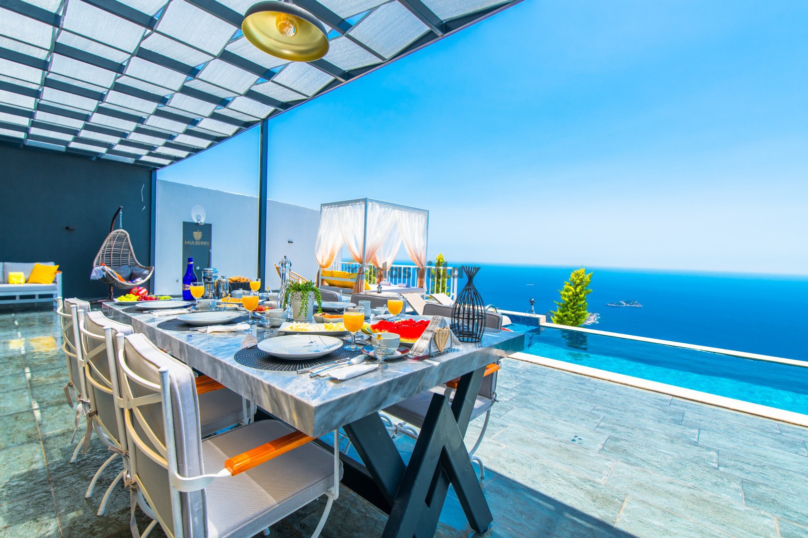 Villa Mulberry 1 is a 3-bedroom villa with a capacity of 6 people located in the Kalkan Ordu region. Our rental holiday villa Villa Mulberry 1, which has a magnificent sea view, is a very suitable option for large families and large groups of friends. Our villa also has a jacuzzi where you can relieve the tiredness of the day.