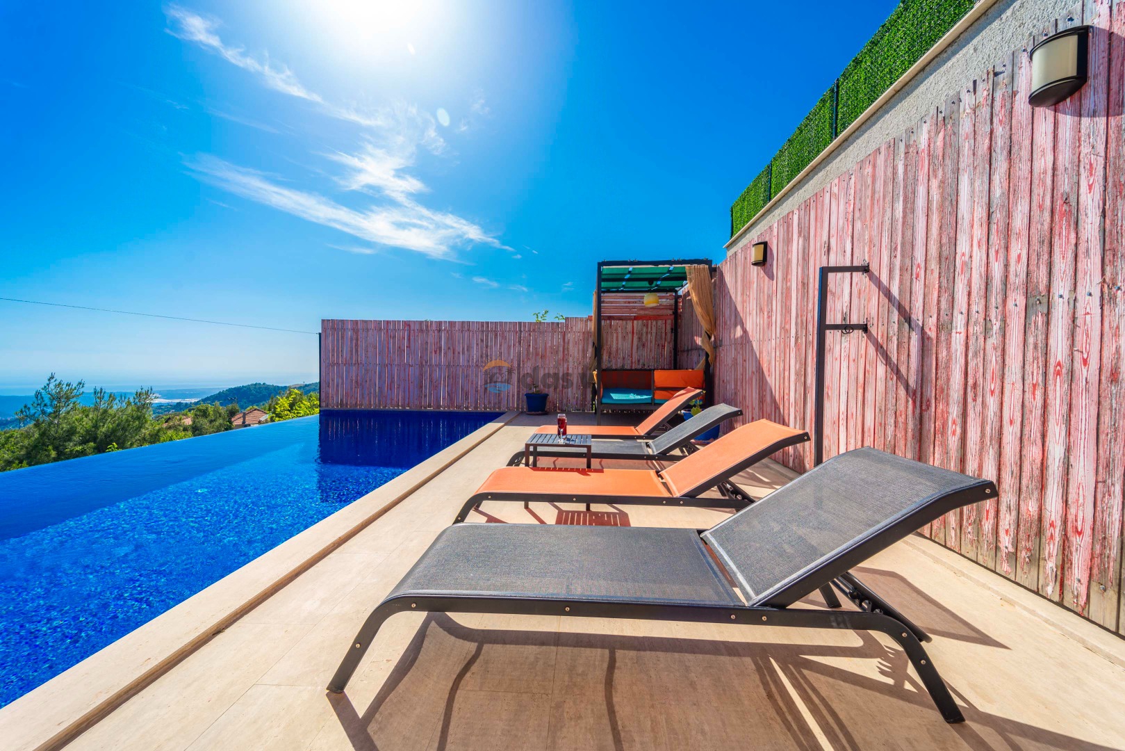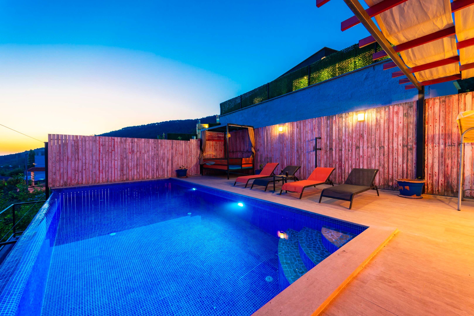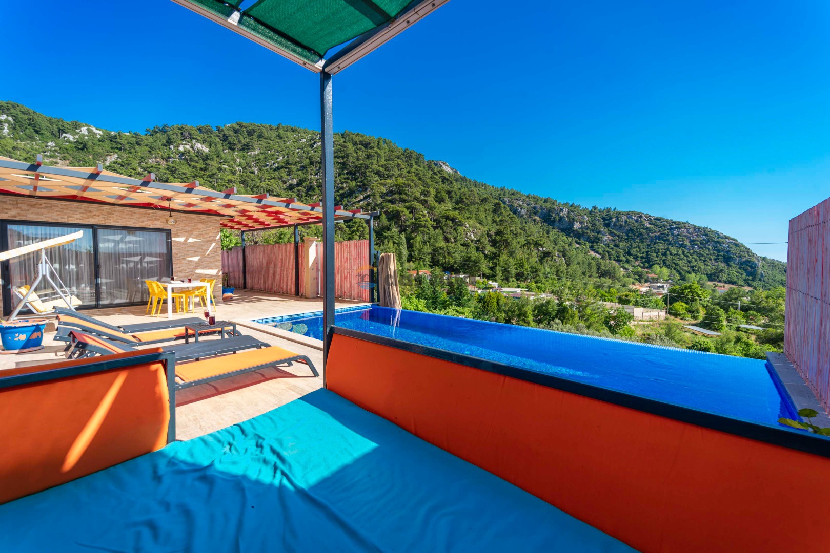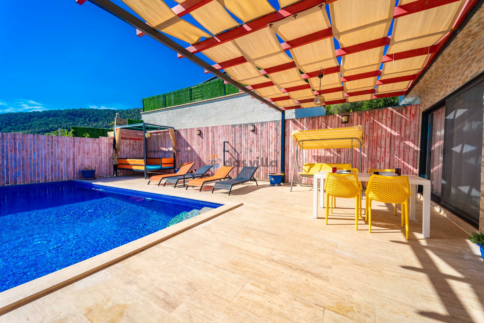 Villa Öykü, our 3-bedroom 5-person capacity villa with a private pool located in the Islamlar area of Kalkan. Our 3-bedroom 5-person capacity villa is located in nature and all options have been considered for you. While continuing a comfortable holiday in the sheltered pool area, you can choose the private jacuzzi and sauna in our villa to relieve all your tiredness. If you want to spend a quiet holiday away from the noise of the city with your loved ones, we are waiting for you at Villa Öykü.