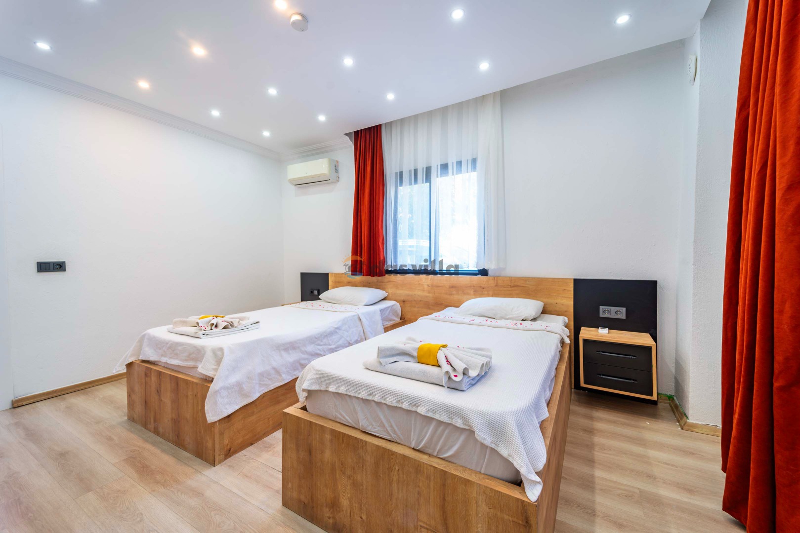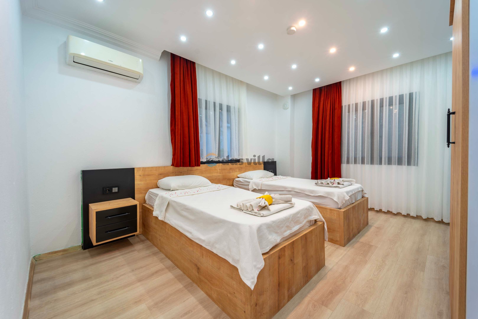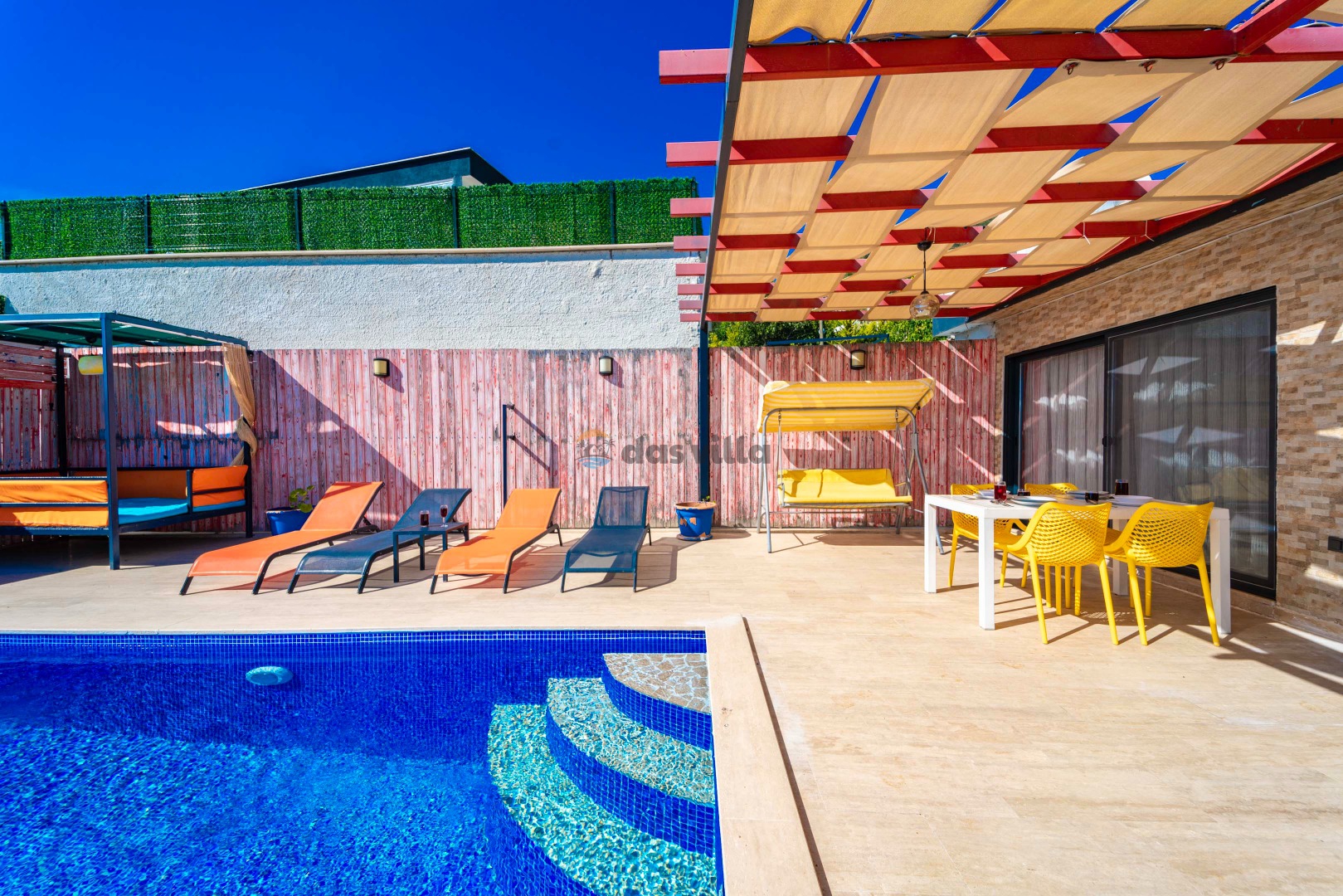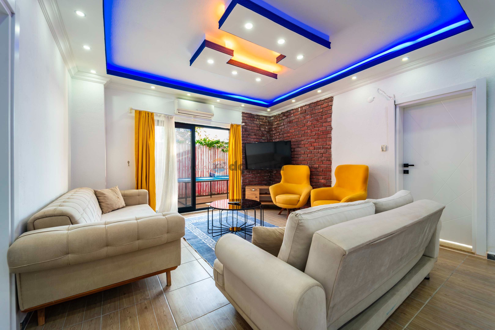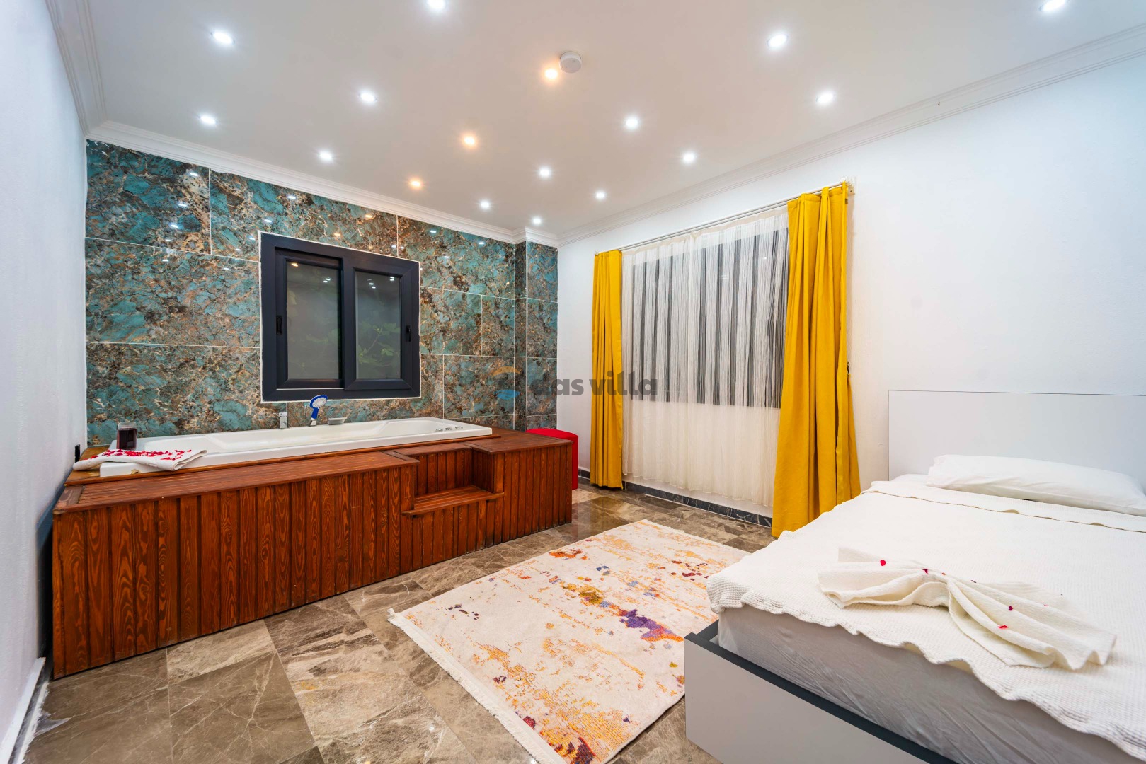 Villa Öykü, our 3-bedroom 5-person capacity villa with a private pool located in the Islamlar area of Kalkan. Our 3-bedroom 5-person capacity villa is located in nature and all options have been considered for you. While continuing a comfortable holiday in the sheltered pool area, you can choose the private jacuzzi and sauna in our villa to relieve all your tiredness. If you want to spend a quiet holiday away from the noise of the city with your loved ones, we are waiting for you at Villa Öykü.