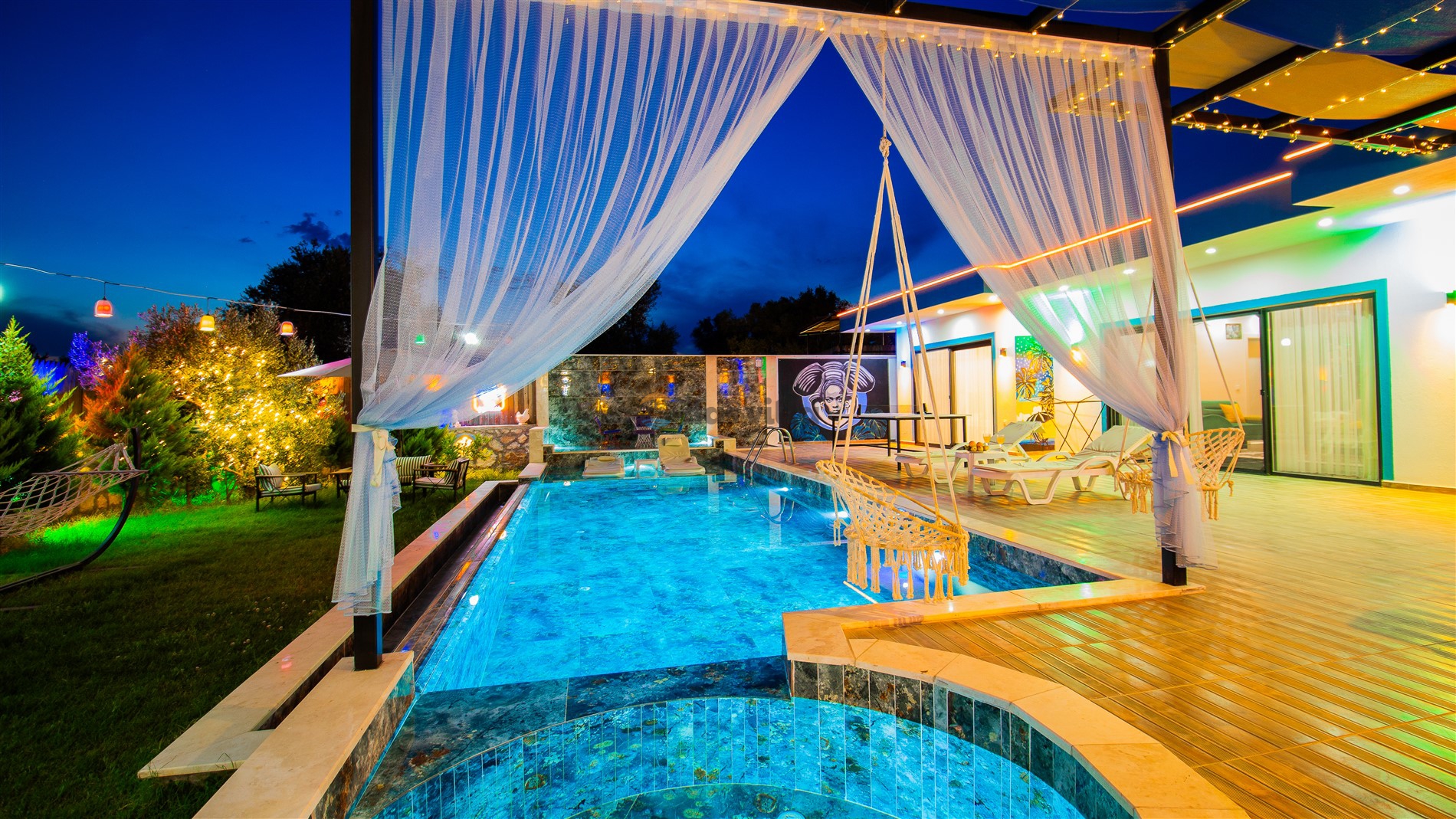 Villa Piker House is a 2-bedroom villa with a capacity of 4 people located in the Kalkan Çayköy area. Our luxury holiday villa Villa Piker House, located in nature, is a very suitable option for families and honeymoon couples. There is also a jacuzzi in the bedroom where you can relieve the tiredness of the day.