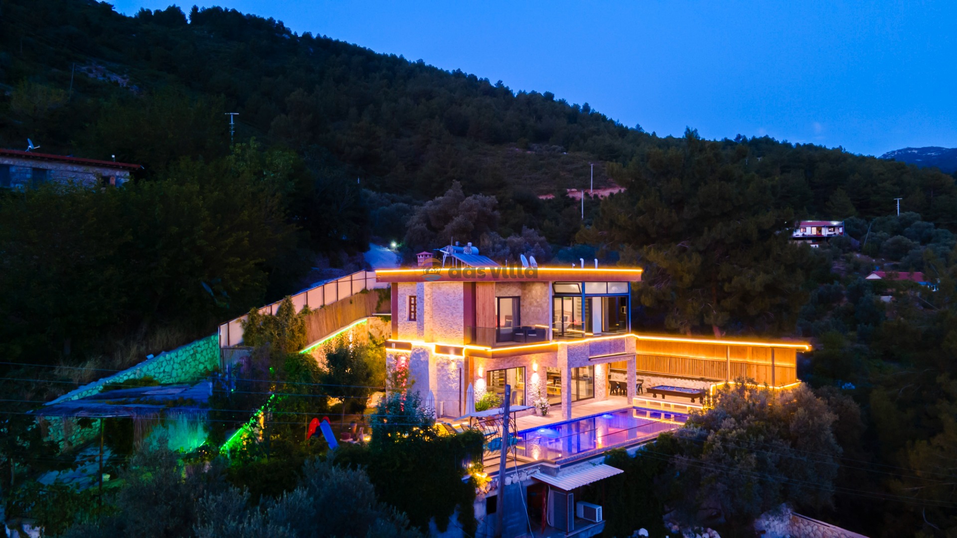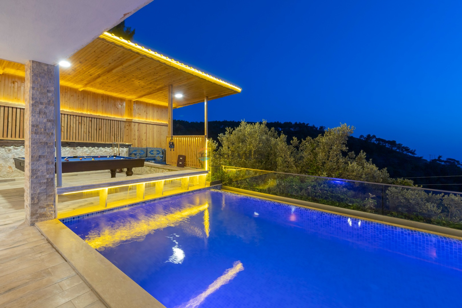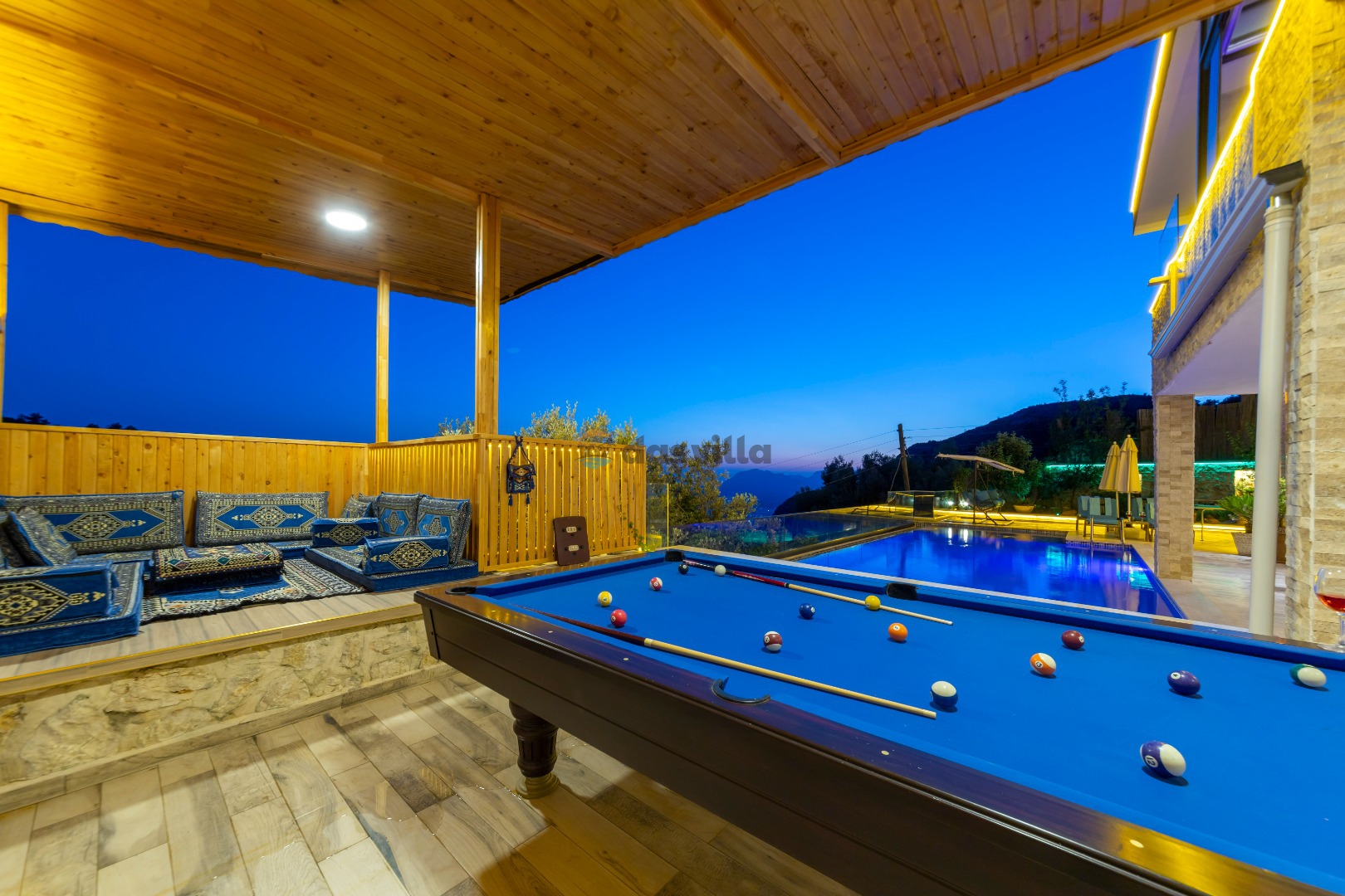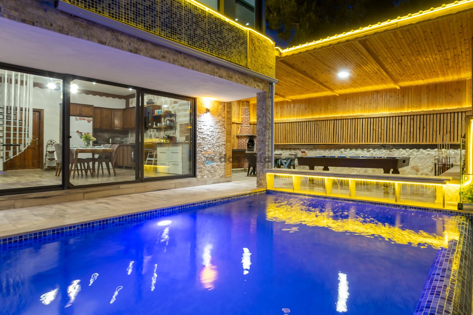 7.672 ₺Villa Şelale is a 2-bedroom 5-person jacuzzi villa located in Kalkan-Lapaz. Our villa with a magnificent nature view is conservative and cannot be seen from the outside. Our modern villa has an indoor heated pool and jacuzzi. You will never get bored during your holiday and you will want your holiday to never end. Our villa with a large garden area has table tennis, table football, children's playground, swing. Thanks to our private pool and jacuzzi, a peaceful and enjoyable holiday that will relieve the fatigue of the whole year will be waiting for you. We are waiting for you, our valued guests, in our modern villa with full equipment. Note; For our guests who want pool heating, the pool heating fee is an extra 400 TL per day.