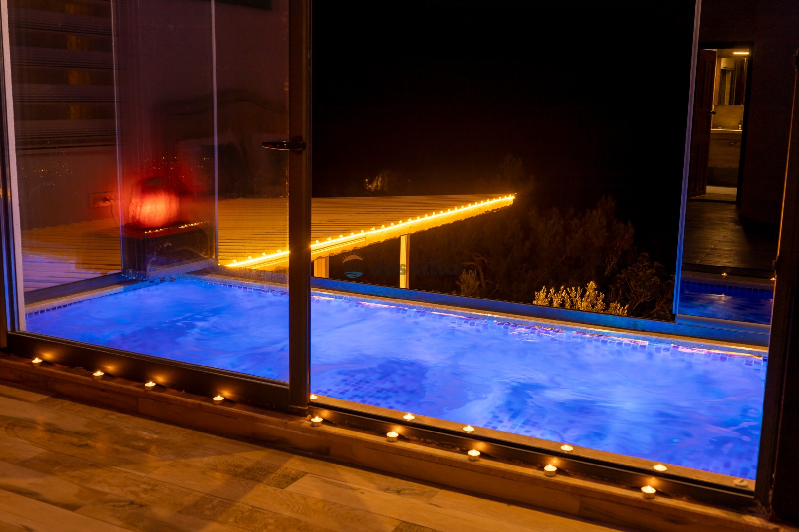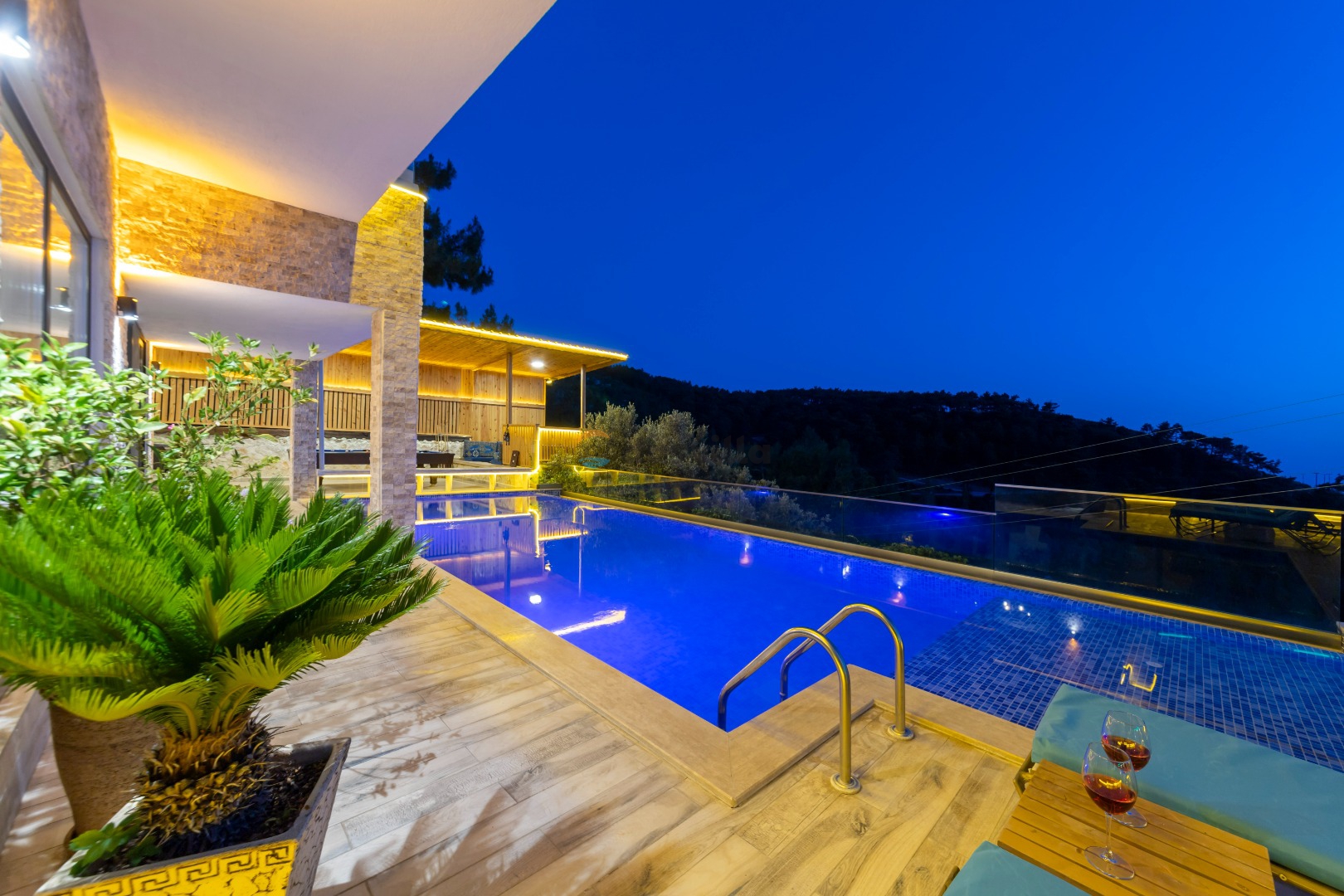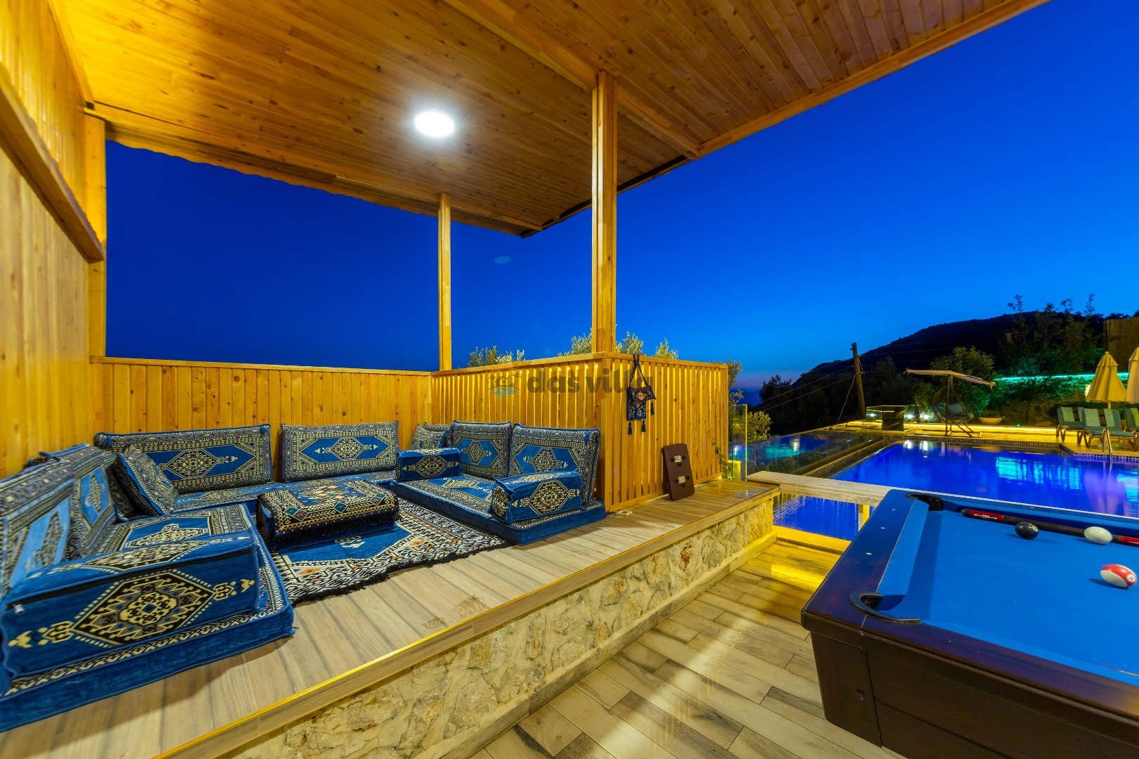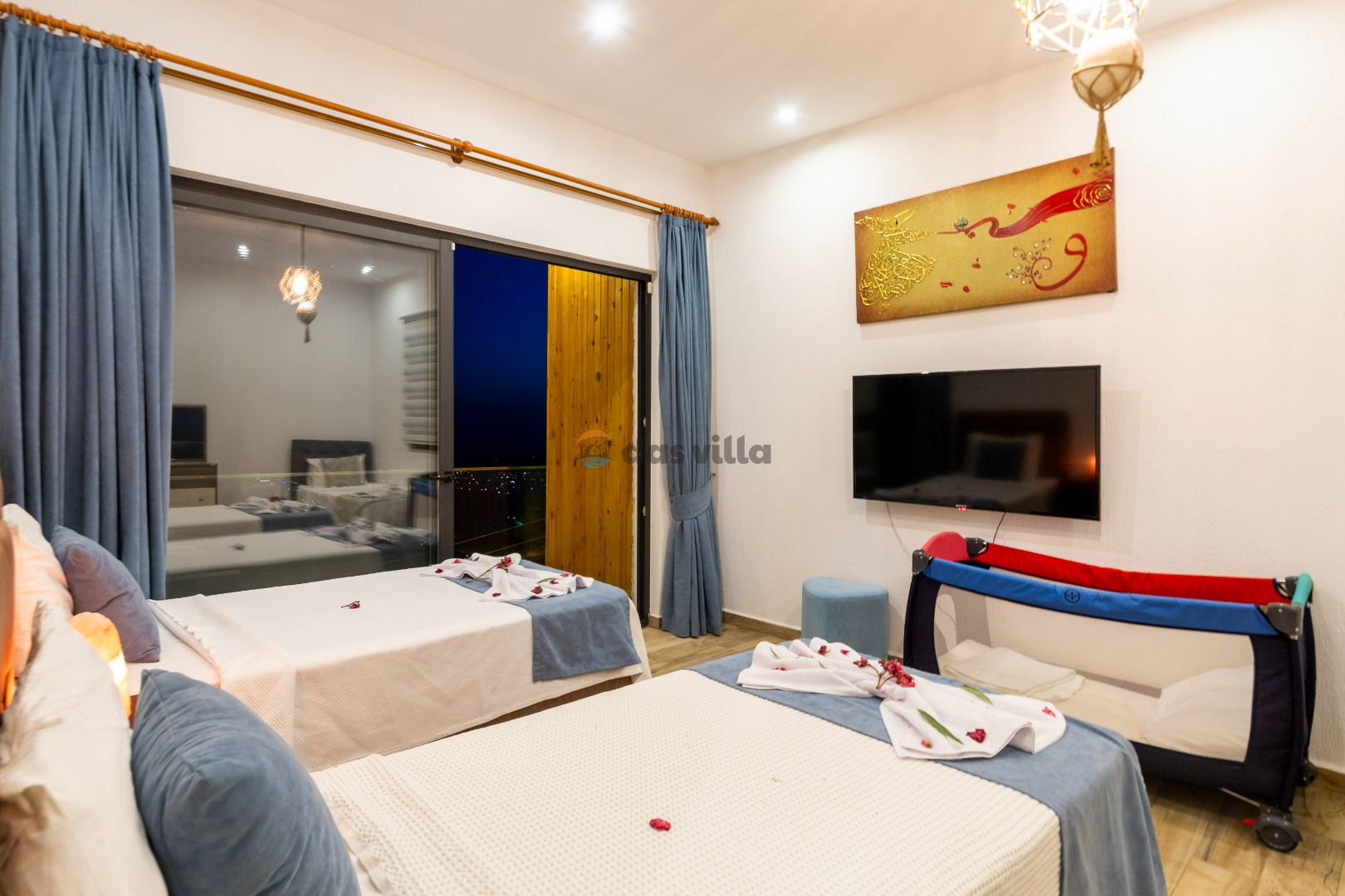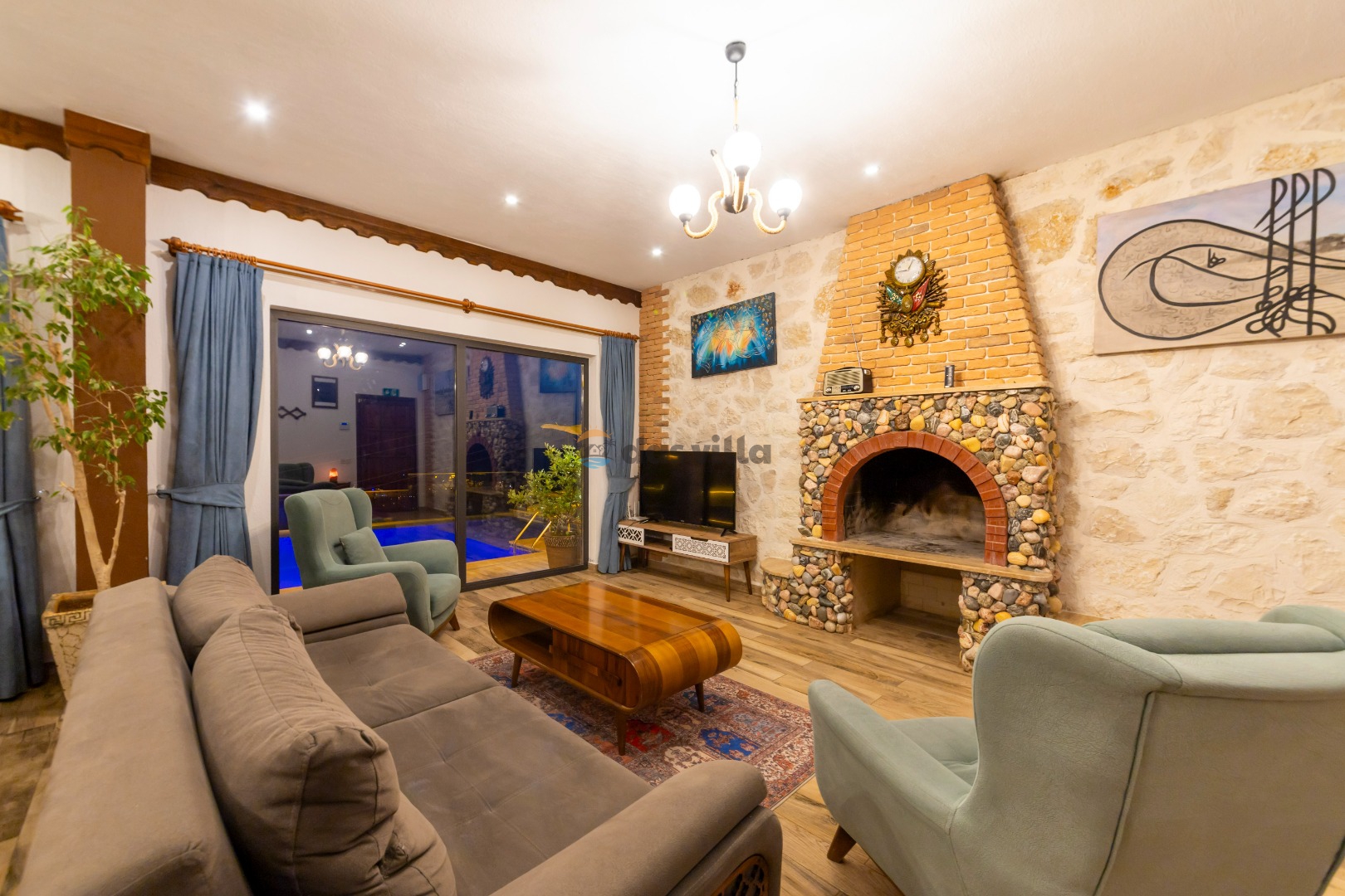 7.672 ₺Villa Şelale is a 2-bedroom 5-person jacuzzi villa located in Kalkan-Lapaz. Our villa with a magnificent nature view is conservative and cannot be seen from the outside. Our modern villa has an indoor heated pool and jacuzzi. You will never get bored during your holiday and you will want your holiday to never end. Our villa with a large garden area has table tennis, table football, children's playground, swing. Thanks to our private pool and jacuzzi, a peaceful and enjoyable holiday that will relieve the fatigue of the whole year will be waiting for you. We are waiting for you, our valued guests, in our modern villa with full equipment. Note; For our guests who want pool heating, the pool heating fee is an extra 400 TL per day.