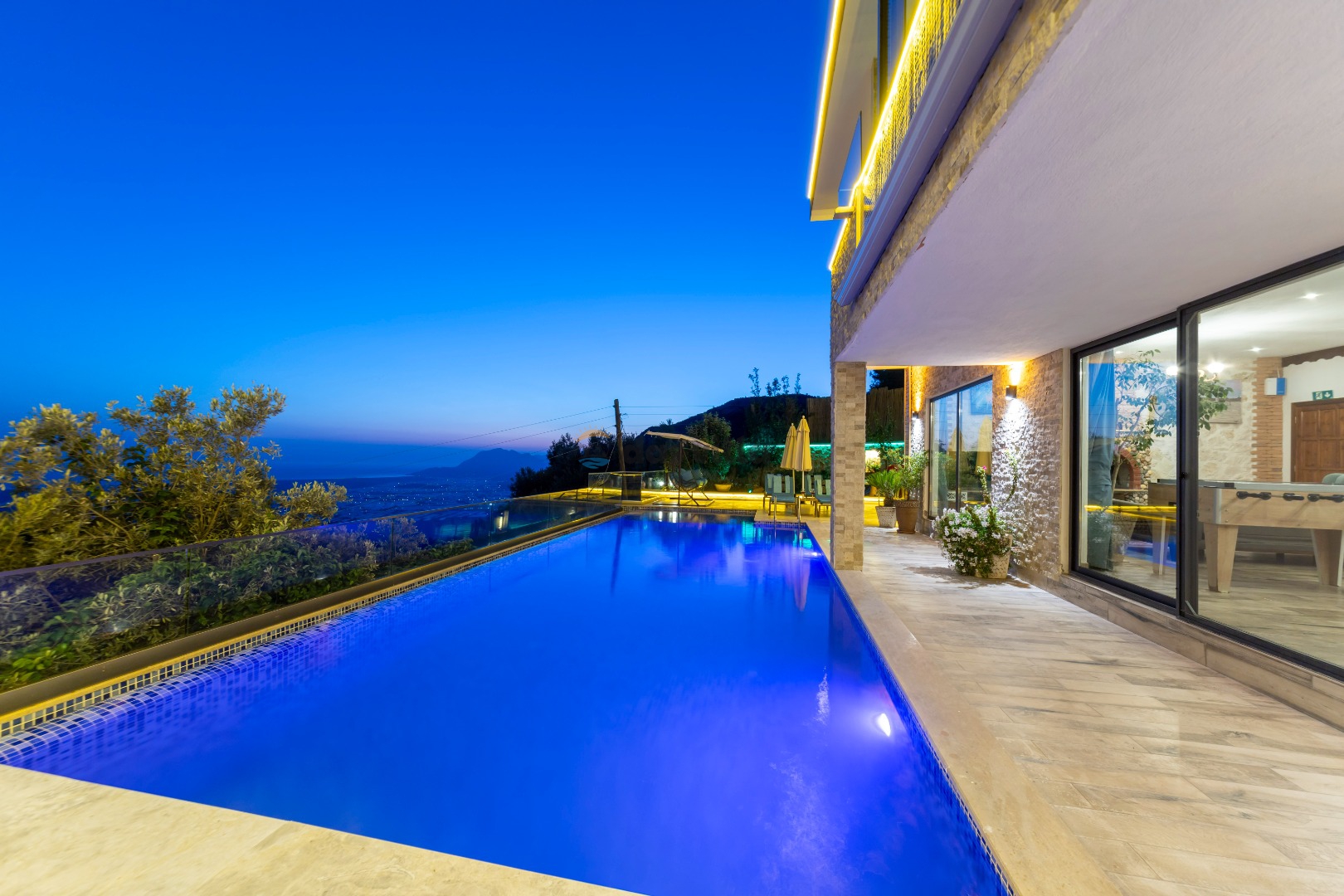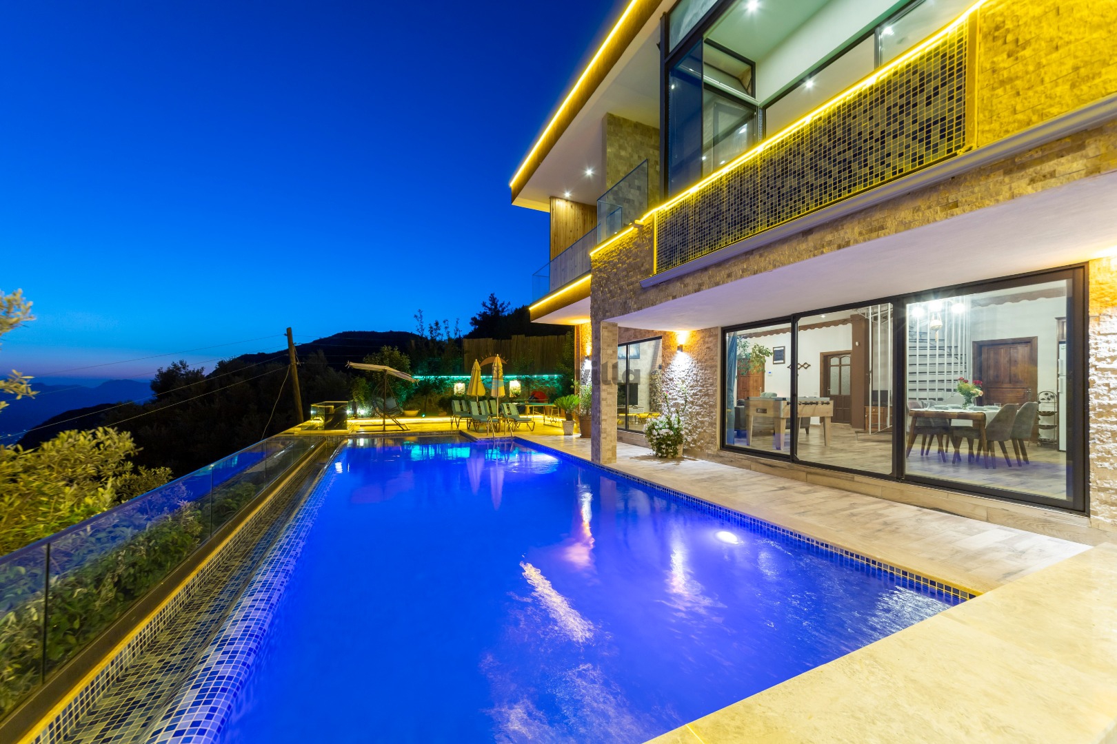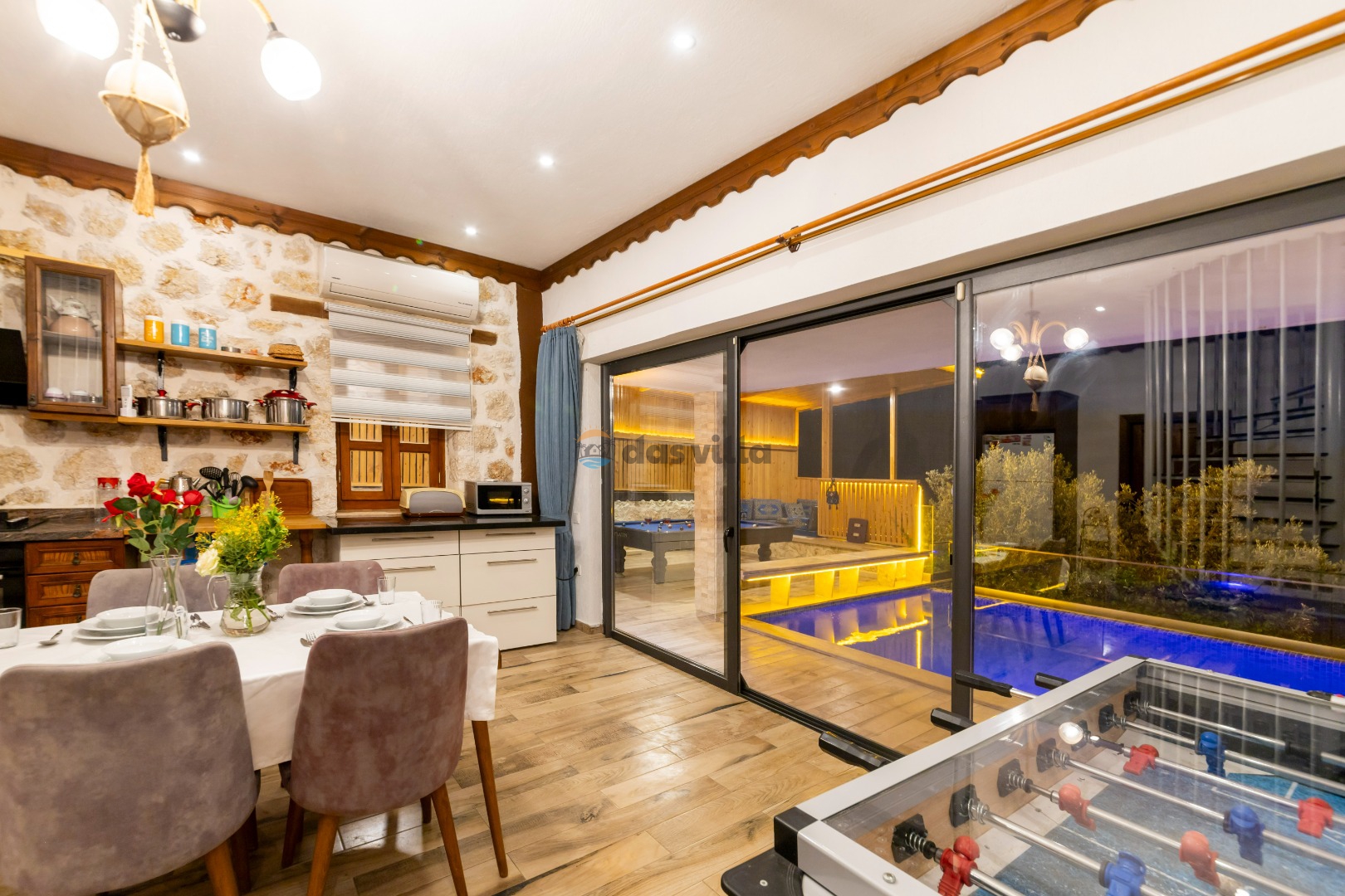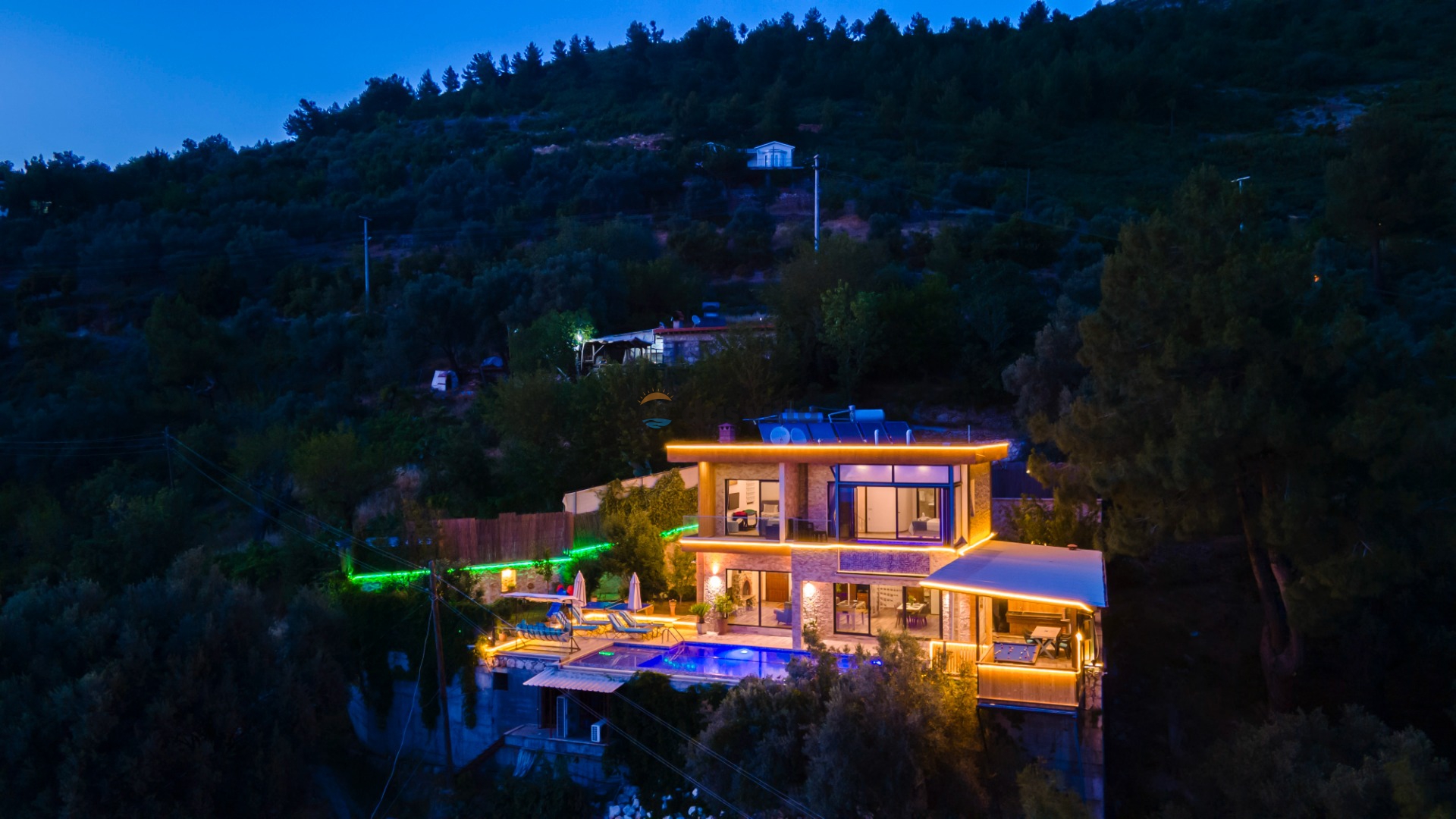 7.672 ₺Villa Şelale is a 2-bedroom 5-person jacuzzi villa located in Kalkan-Lapaz. Our villa with a magnificent nature view is conservative and cannot be seen from the outside. Our modern villa has an indoor heated pool and jacuzzi. You will never get bored during your holiday and you will want your holiday to never end. Our villa with a large garden area has table tennis, table football, children's playground, swing. Thanks to our private pool and jacuzzi, a peaceful and enjoyable holiday that will relieve the fatigue of the whole year will be waiting for you. We are waiting for you, our valued guests, in our modern villa with full equipment. Note; For our guests who want pool heating, the pool heating fee is an extra 400 TL per day.