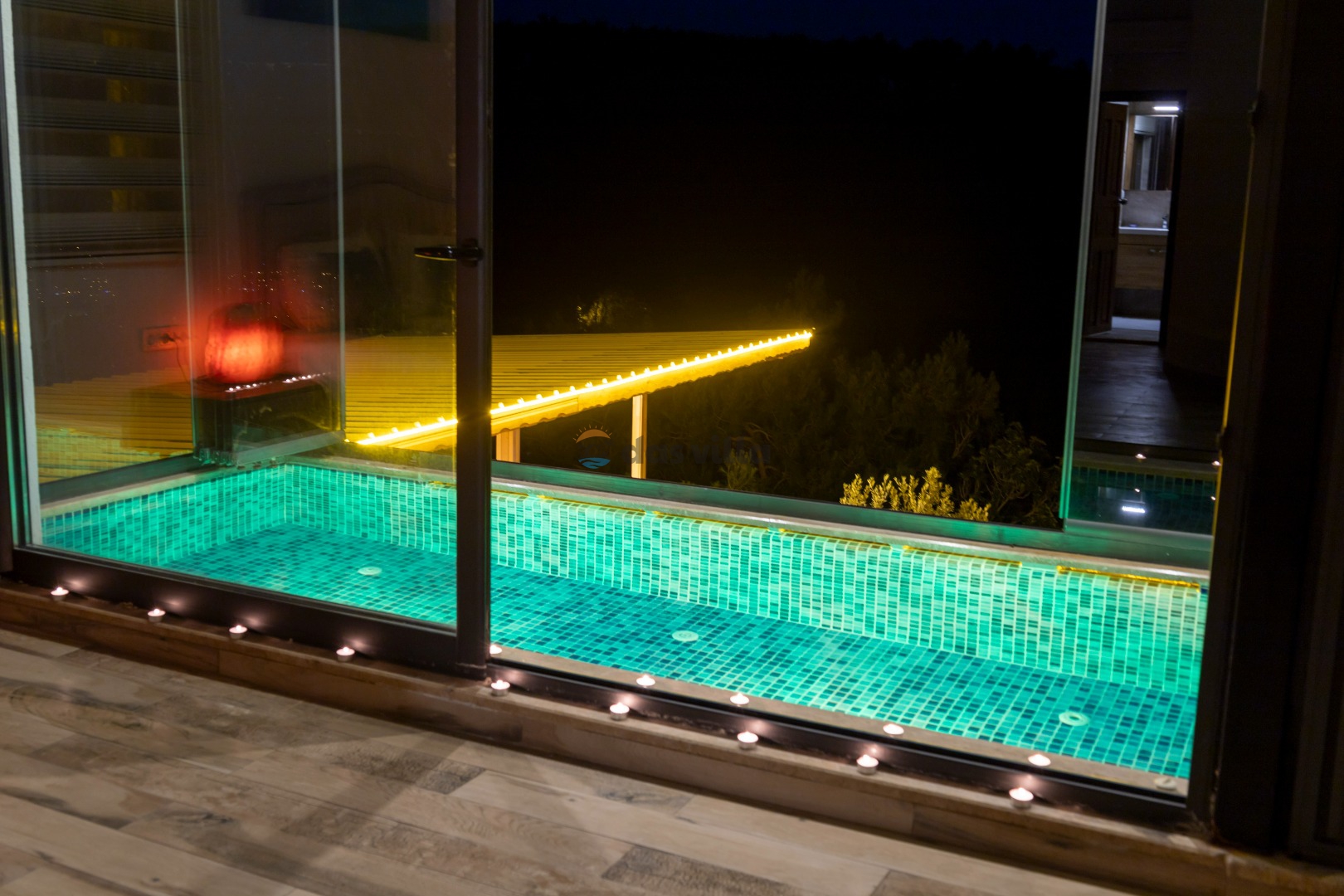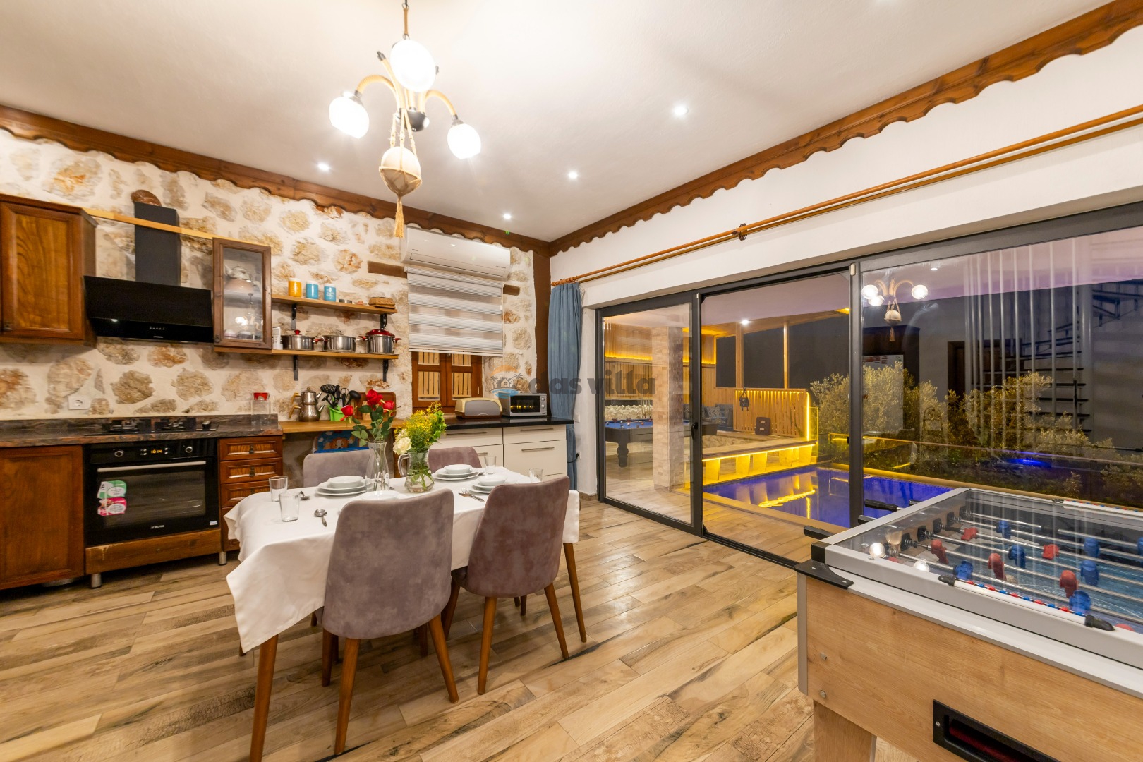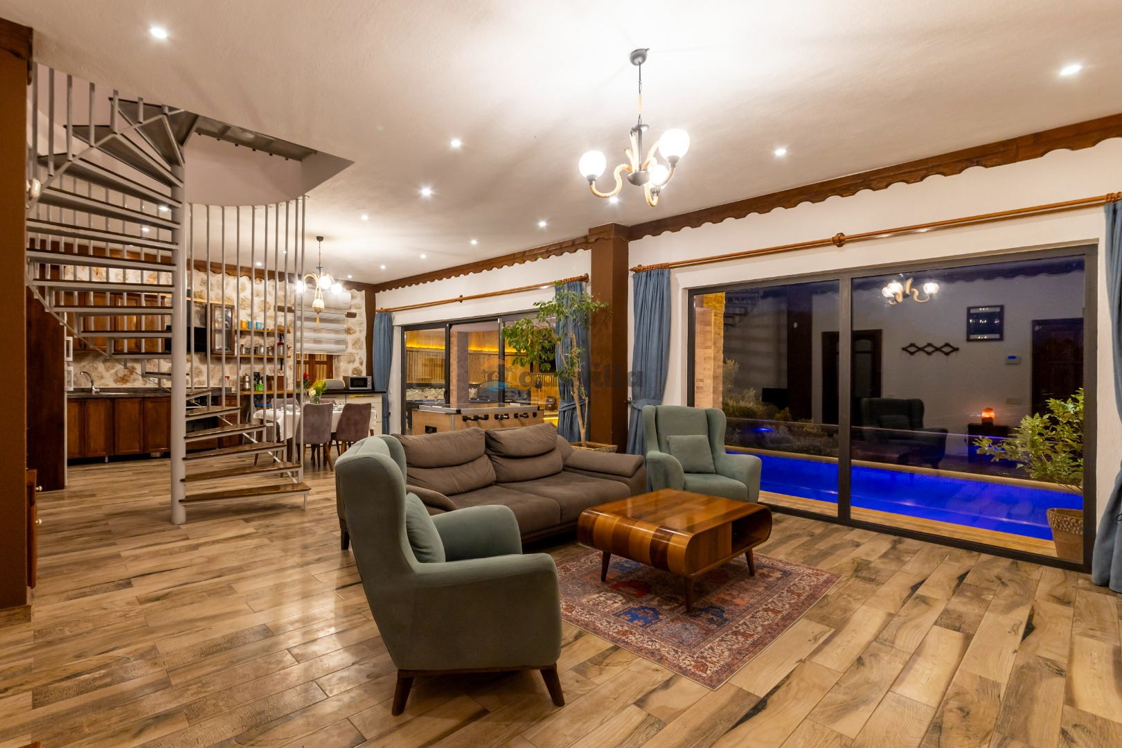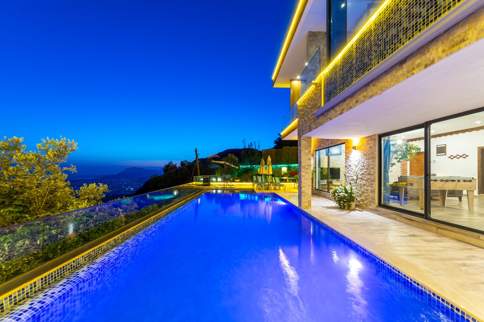 7.672 ₺Villa Şelale is a 2-bedroom 5-person jacuzzi villa located in Kalkan-Lapaz. Our villa with a magnificent nature view is conservative and cannot be seen from the outside. Our modern villa has an indoor heated pool and jacuzzi. You will never get bored during your holiday and you will want your holiday to never end. Our villa with a large garden area has table tennis, table football, children's playground, swing. Thanks to our private pool and jacuzzi, a peaceful and enjoyable holiday that will relieve the fatigue of the whole year will be waiting for you. We are waiting for you, our valued guests, in our modern villa with full equipment. Note; For our guests who want pool heating, the pool heating fee is an extra 400 TL per day.