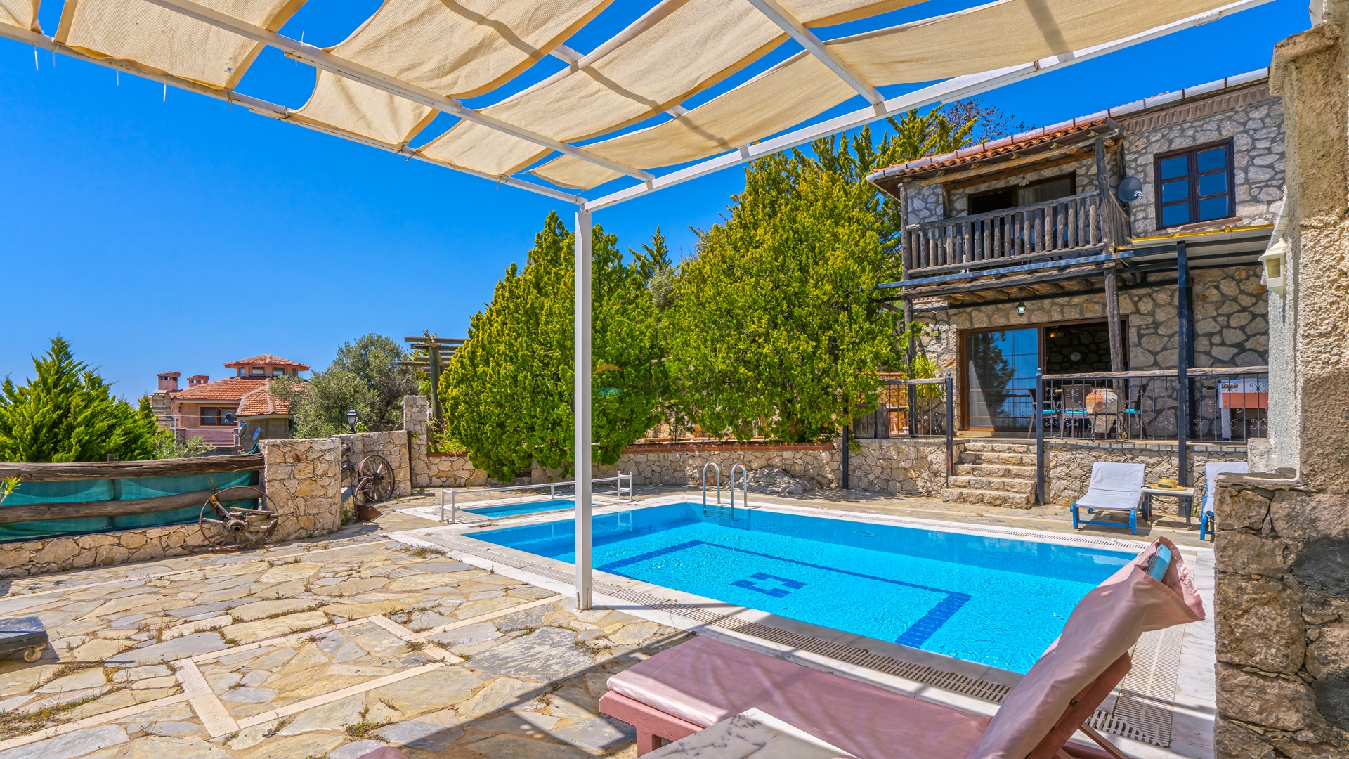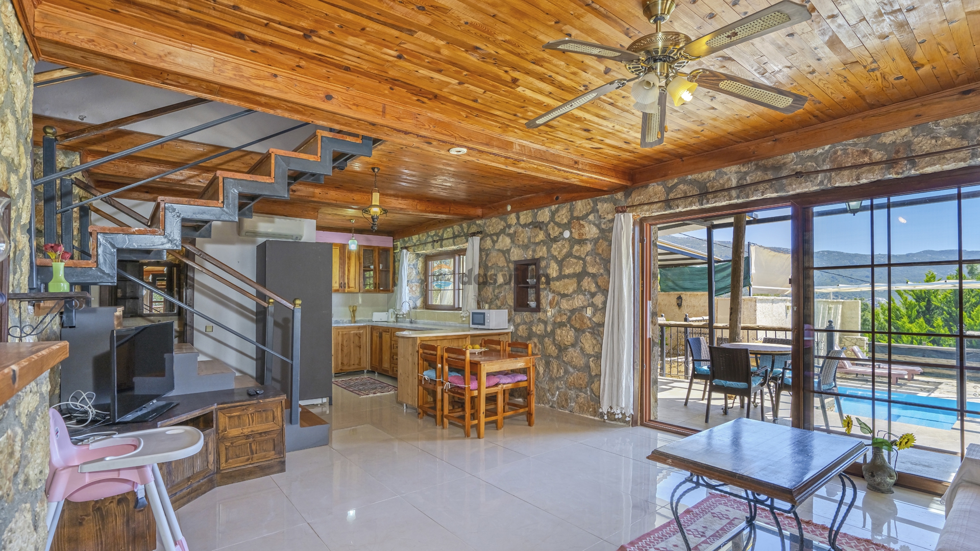 Villa Star Light 5; It is a 2-bedroom villa with a capacity of 4 people located in the Kalkan Üzümlü region. Our rental holiday villa, which is very suitable for families and honeymoon couples, offers a pleasant holiday opportunity. Our villa with panoramic sea view offers an unforgettable holiday opportunity with your family and loved ones. Our villa, which offers an unforgettable holiday opportunity with a magnificent view of the islands, has a calm and peaceful ambiance surrounded by nature.