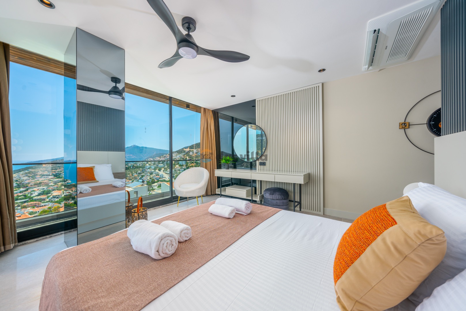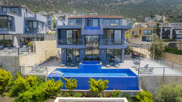 Villa Supernova is a luxury and modern villa with a capacity of 10 people with 5 bedrooms in Kalkan Kızıltaş Region, with a magnificent sea view. Our villa has a Turkish bath, sauna, central air conditioning, sports station, 2 yoga plates mats, 2 plates balls, dumble station, boxing sandbag, a multifunctional table that can be used as a dining table, table tennis and billiards table, table football, and 1 indoor pool. Our villa is quite suitable and operational during the winter months. Both of our pools have a salt system. There are sports and activities, Turkish bath, sauna, and bar on the floor where the indoor pool is located. Thanks to our villa's modern kitchen, complete equipment and comfortable items, you will feel at home and have the opportunity to have a comfortable holiday. You will also be able to relax and have fun hours thanks to the jacuzzi and private swimming pool in our villa. The sheltered design of our villa's private swimming pool is especially beneficial for the satisfaction of our conservative families.
